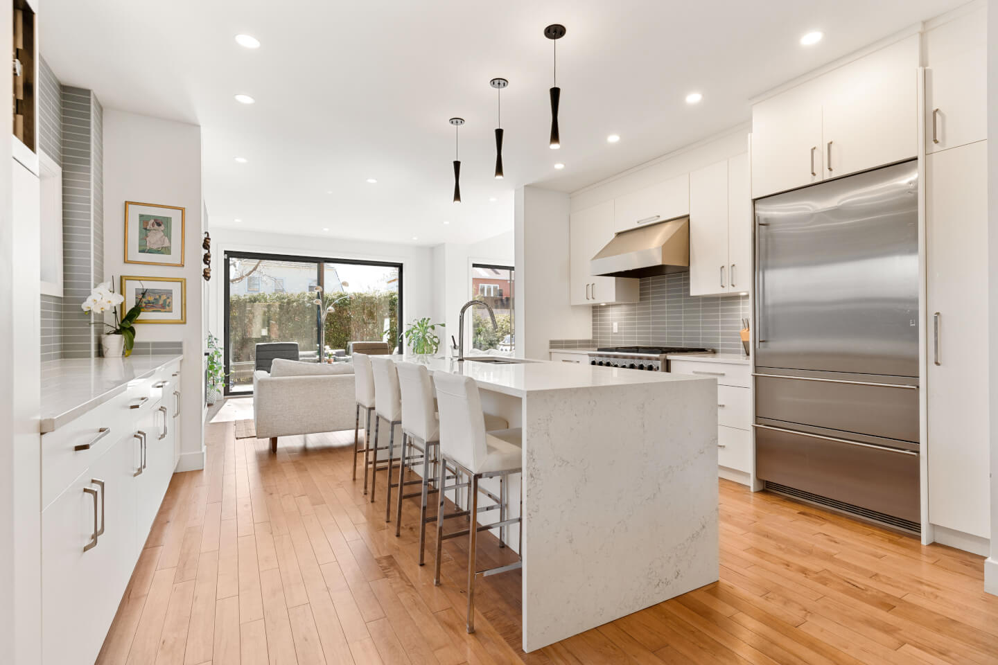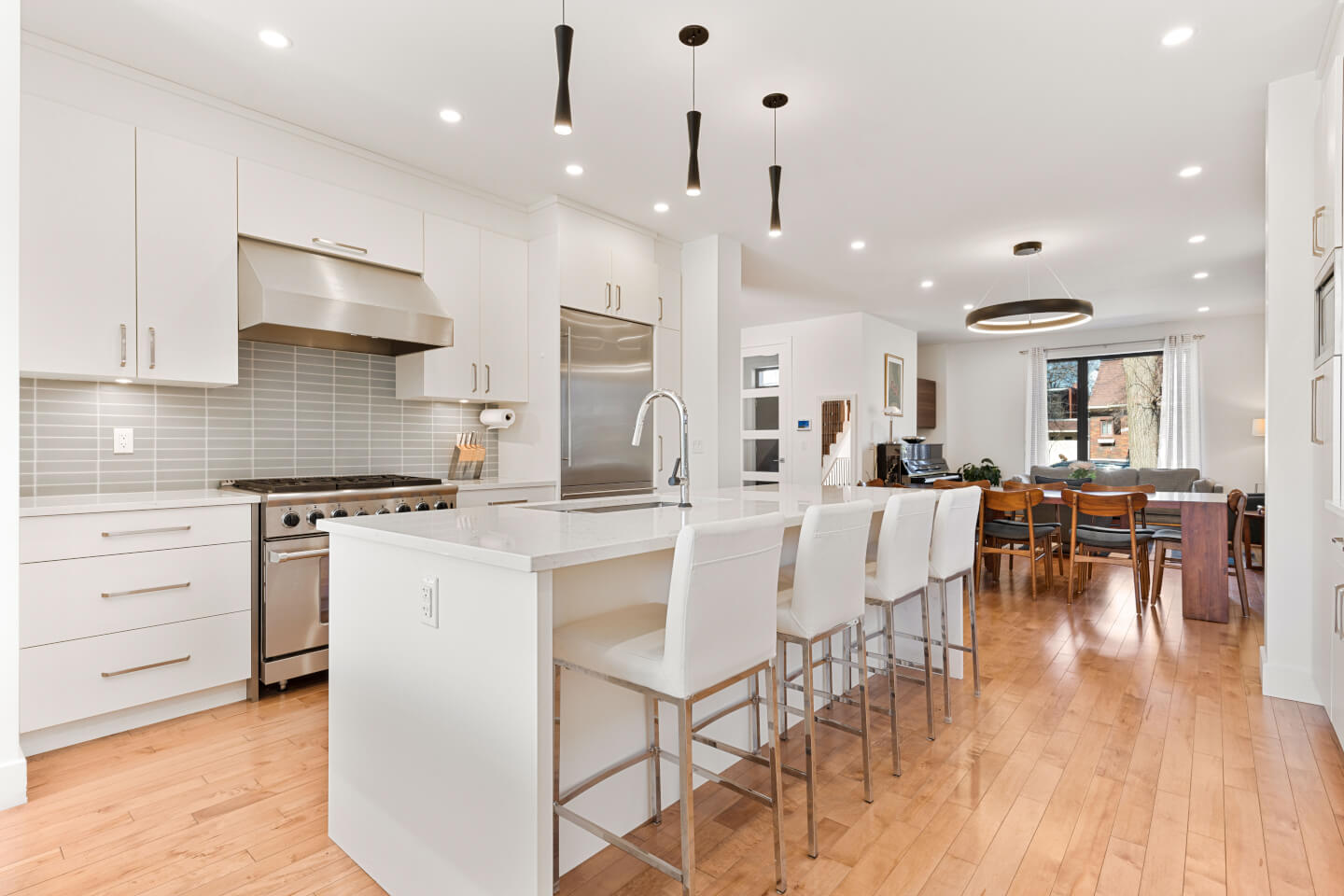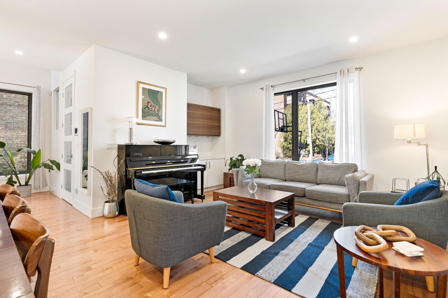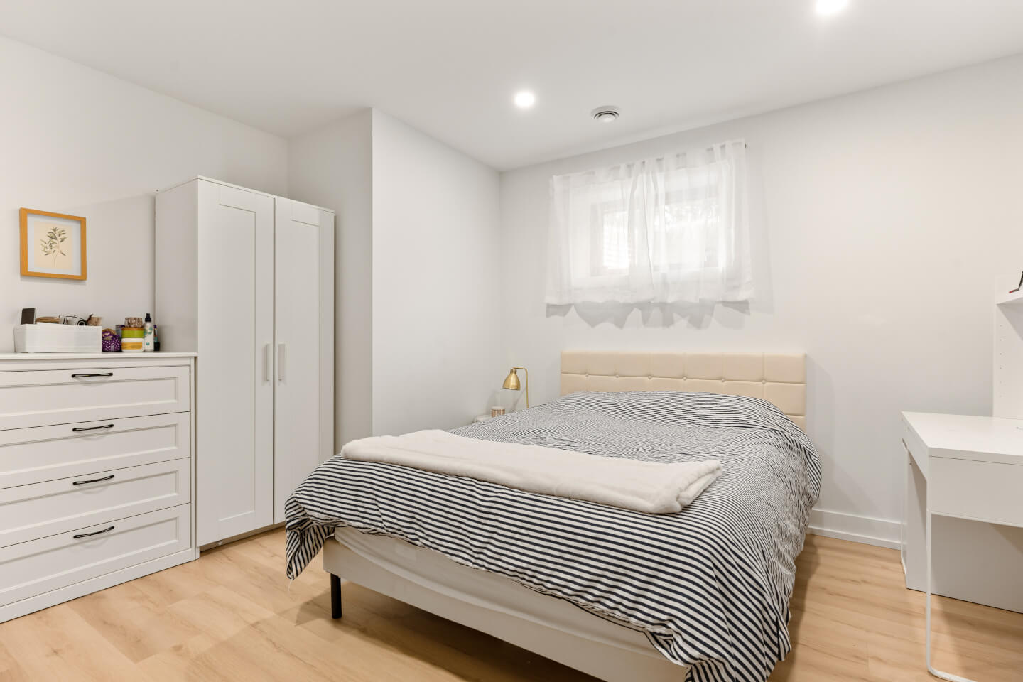 A true gem! A stunning, spacious semi-detached new build, just steps from Monkland! Boasting exceptional construction quality and incredible brightness, this home captivates from the moment you step inside. The open-concept main floor features a bright living and dining area seamlessly connected by a sleek, modern kitchen—an ideal space for entertaining! Two oversized patio doors in the den lead to a west-facing garden, perfect for enjoying the afternoon sun. Upstairs, a generous landing opens to five bedrooms, including a luxurious primary suite with a walk-in closet and ensuite bathroom, plus a second full bathroom and a laundry room. The finished basement offers a cozy family room, an additional bedroom, and an office/playroom, all on a heated flooring for ultimate comfort. Integrated garage. A must-see!