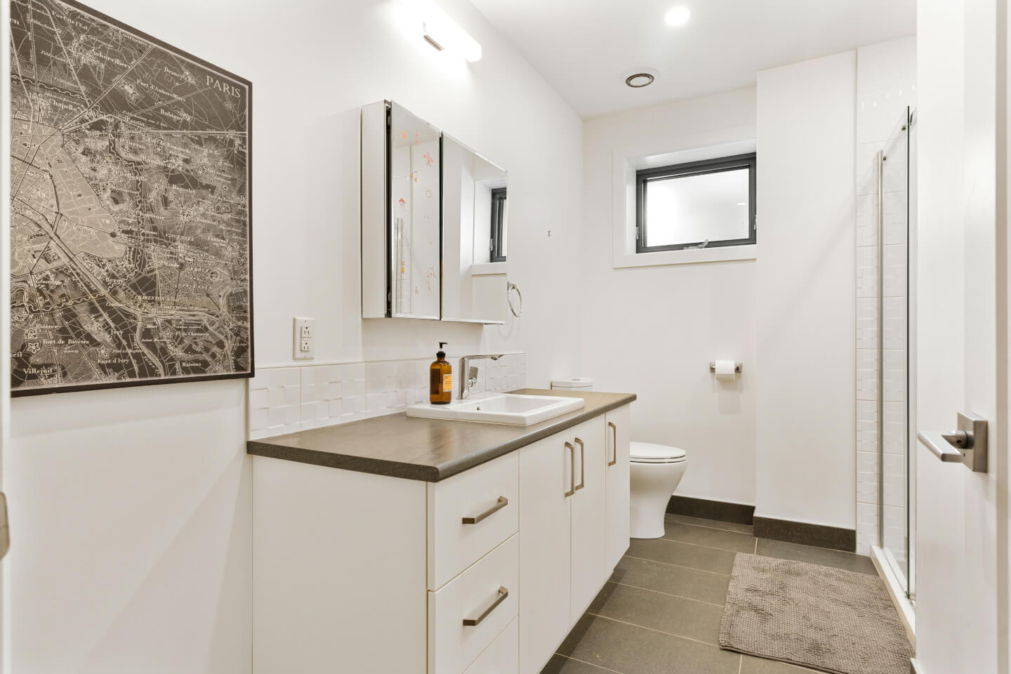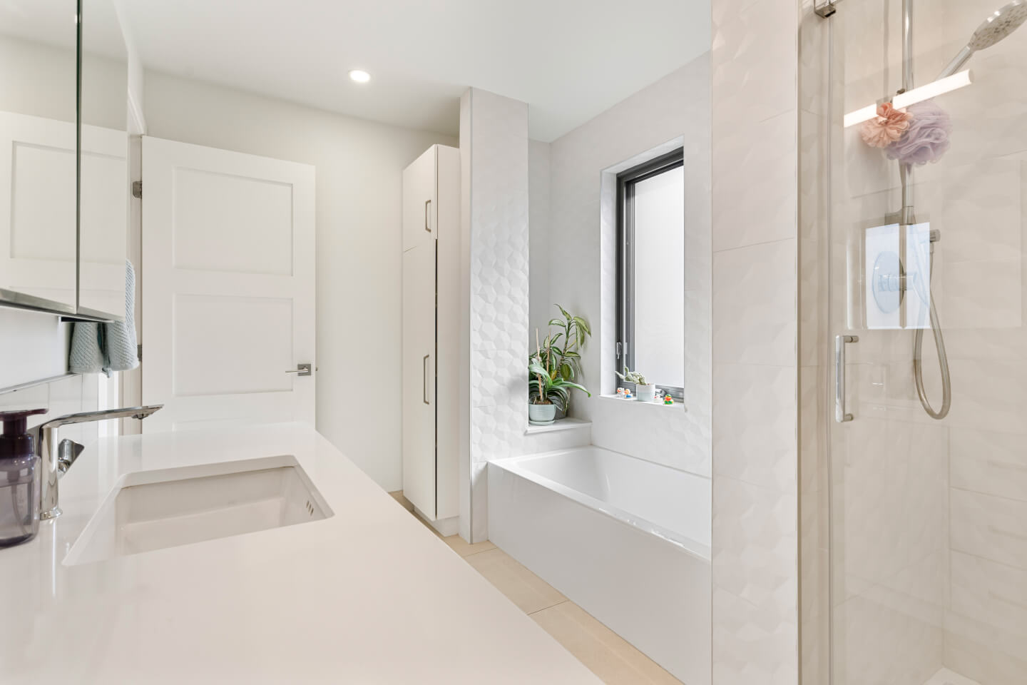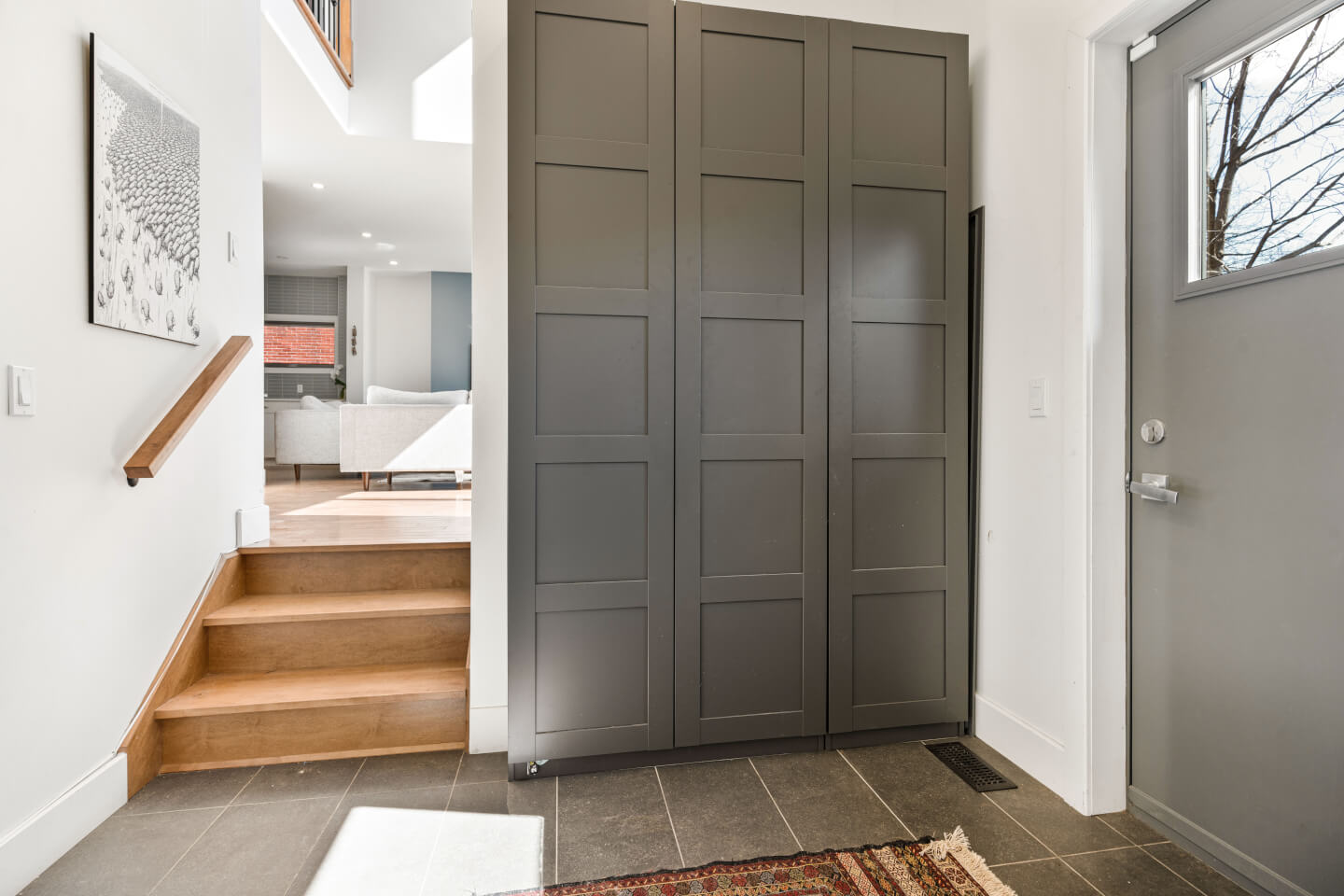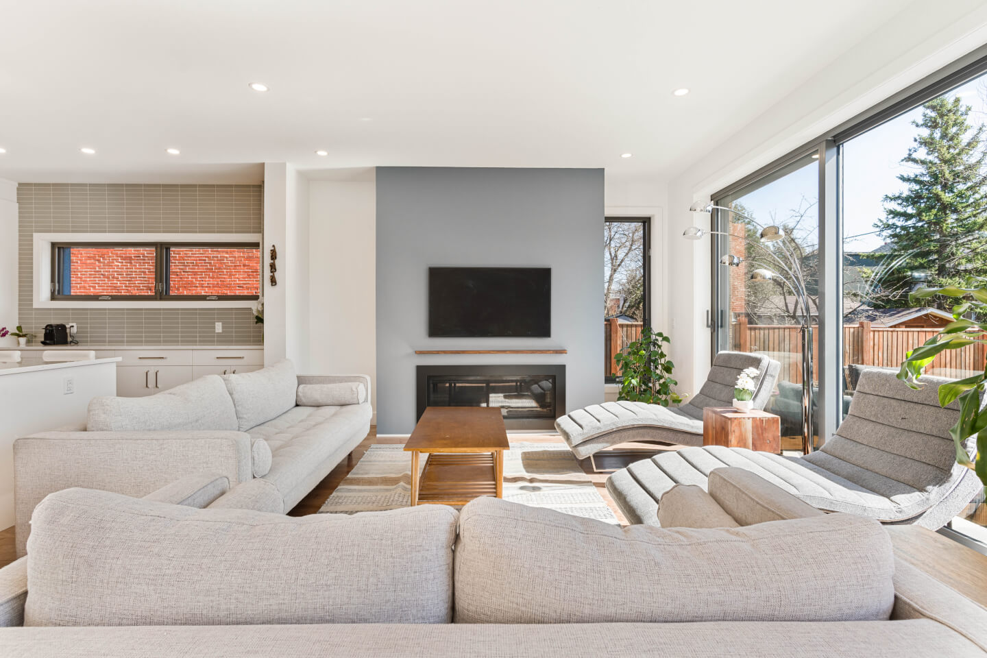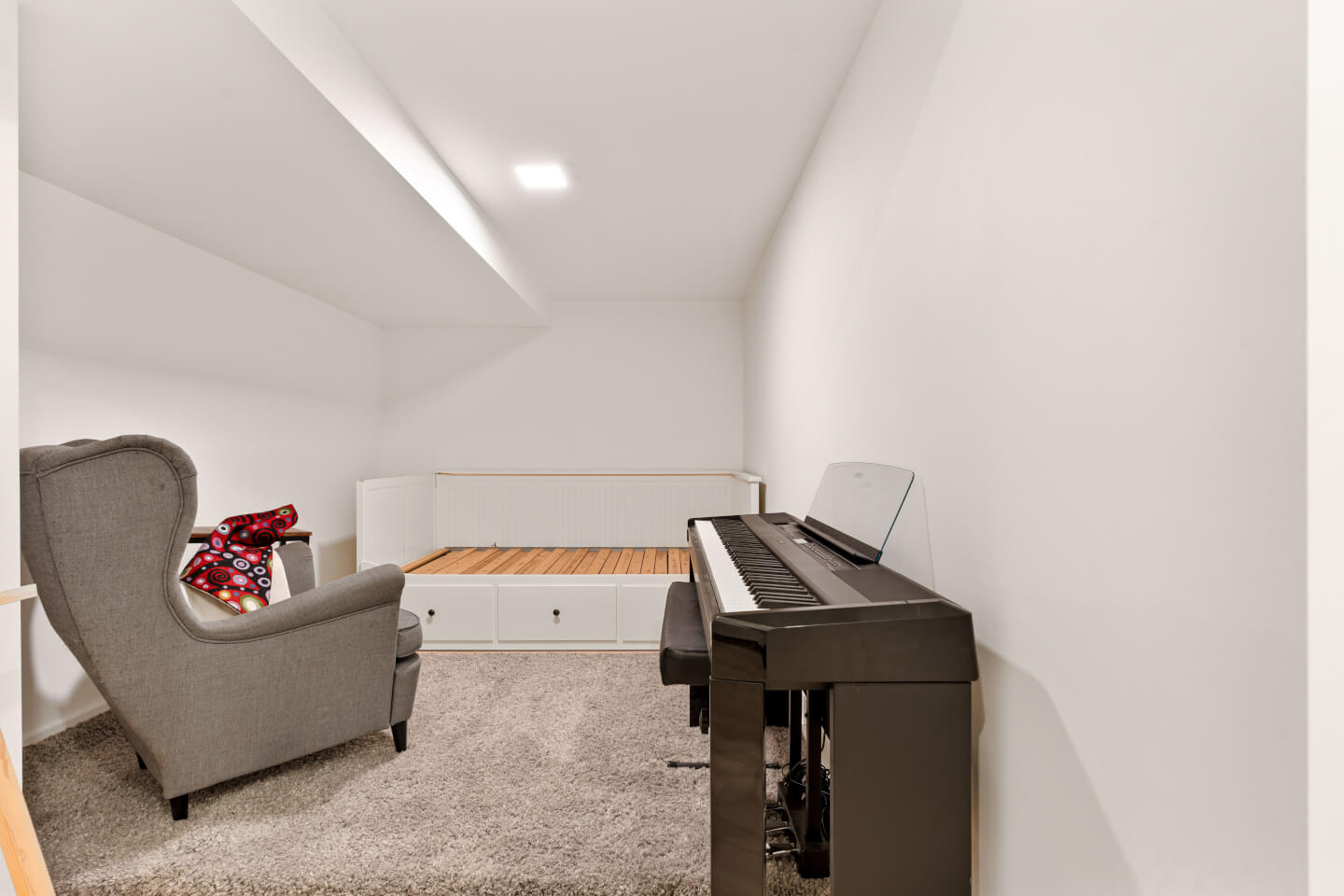 Heated floors throughout (except bathroom) Family room with gas fireplace Bedroom with electric fireplace Bathroom Storage Office or playroom