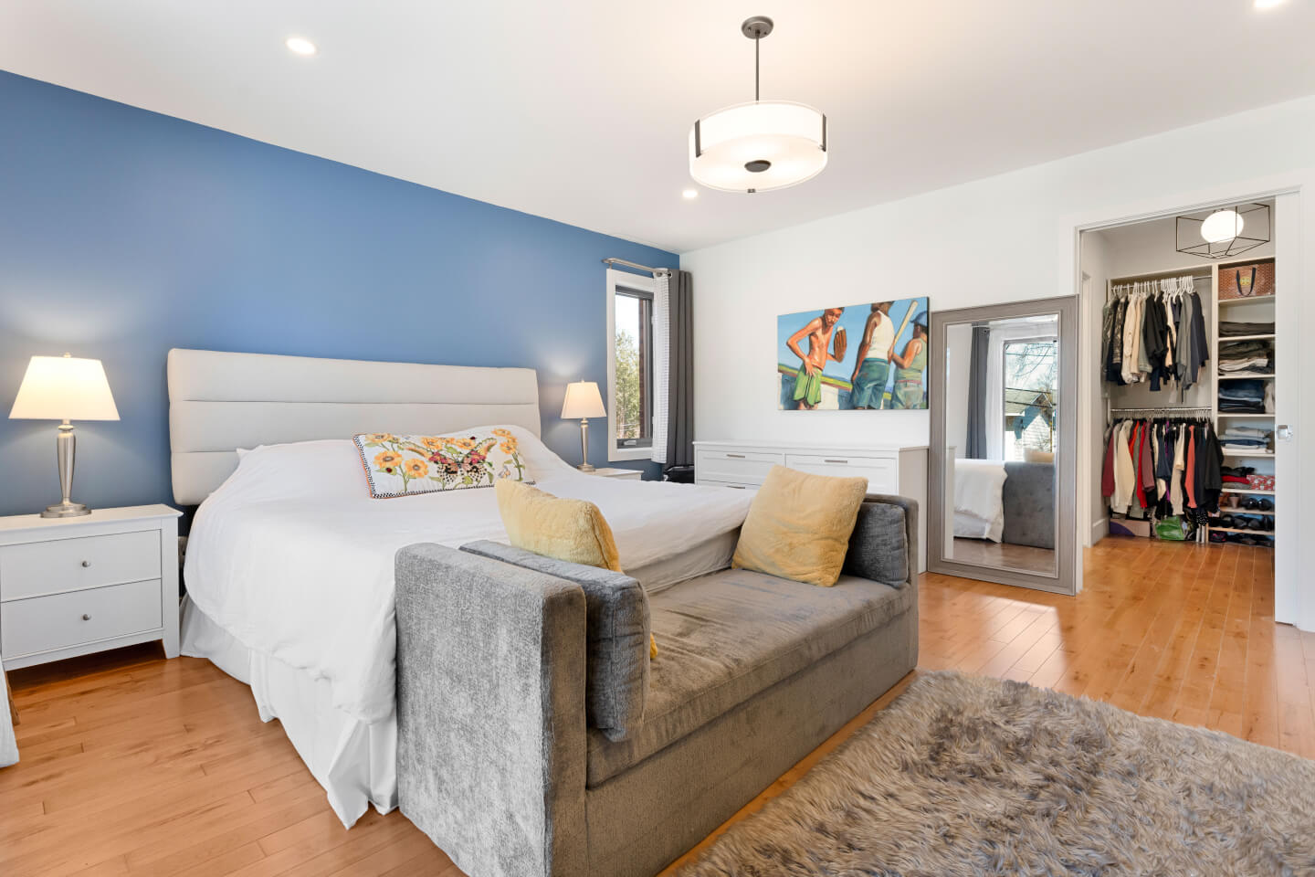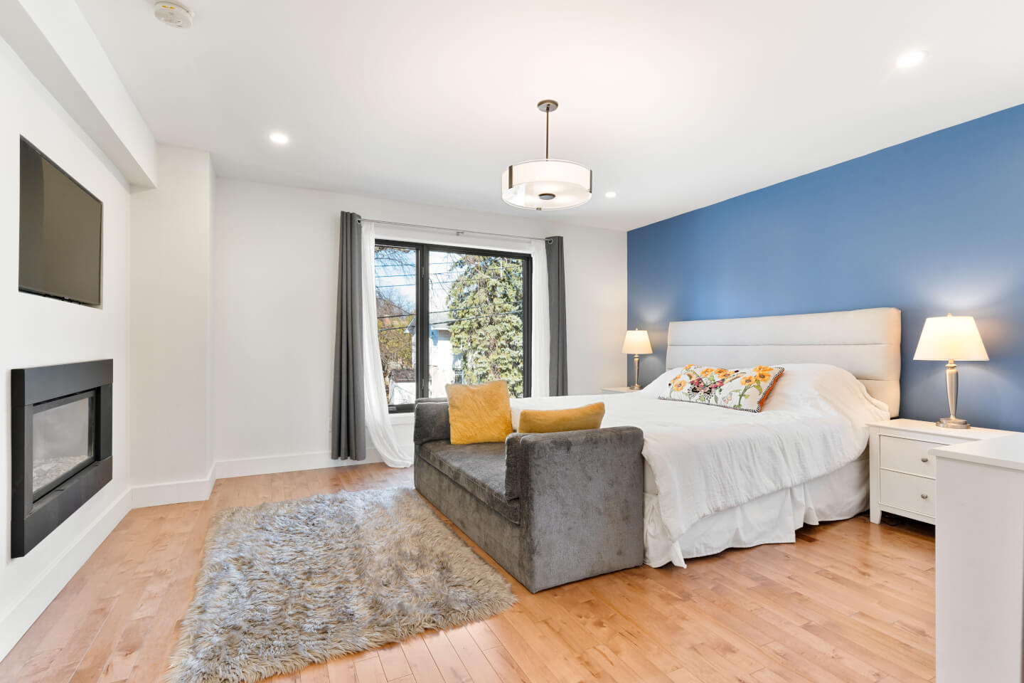 5 bedrooms or 4 + office; 1 in basement Primary bedroom with gas fireplace, large walk-in closet, and ensuite bathroom