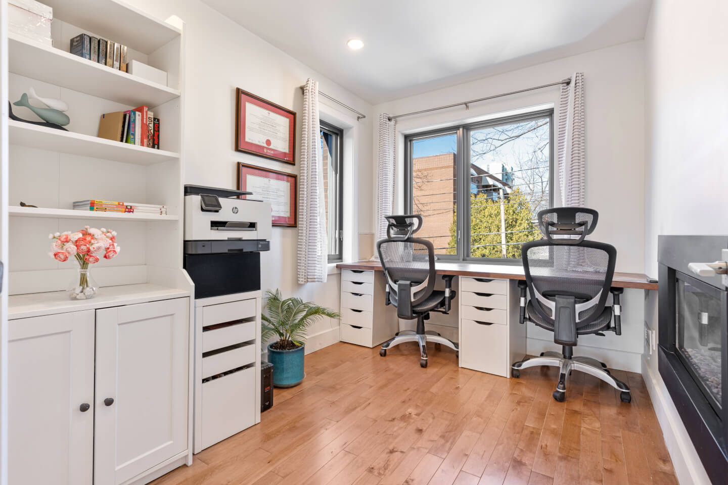 5 bedrooms or 4 + office with two-sided fireplace open onto primary bedroom
