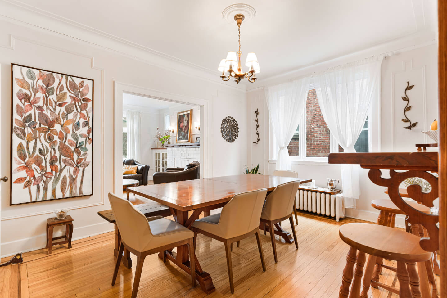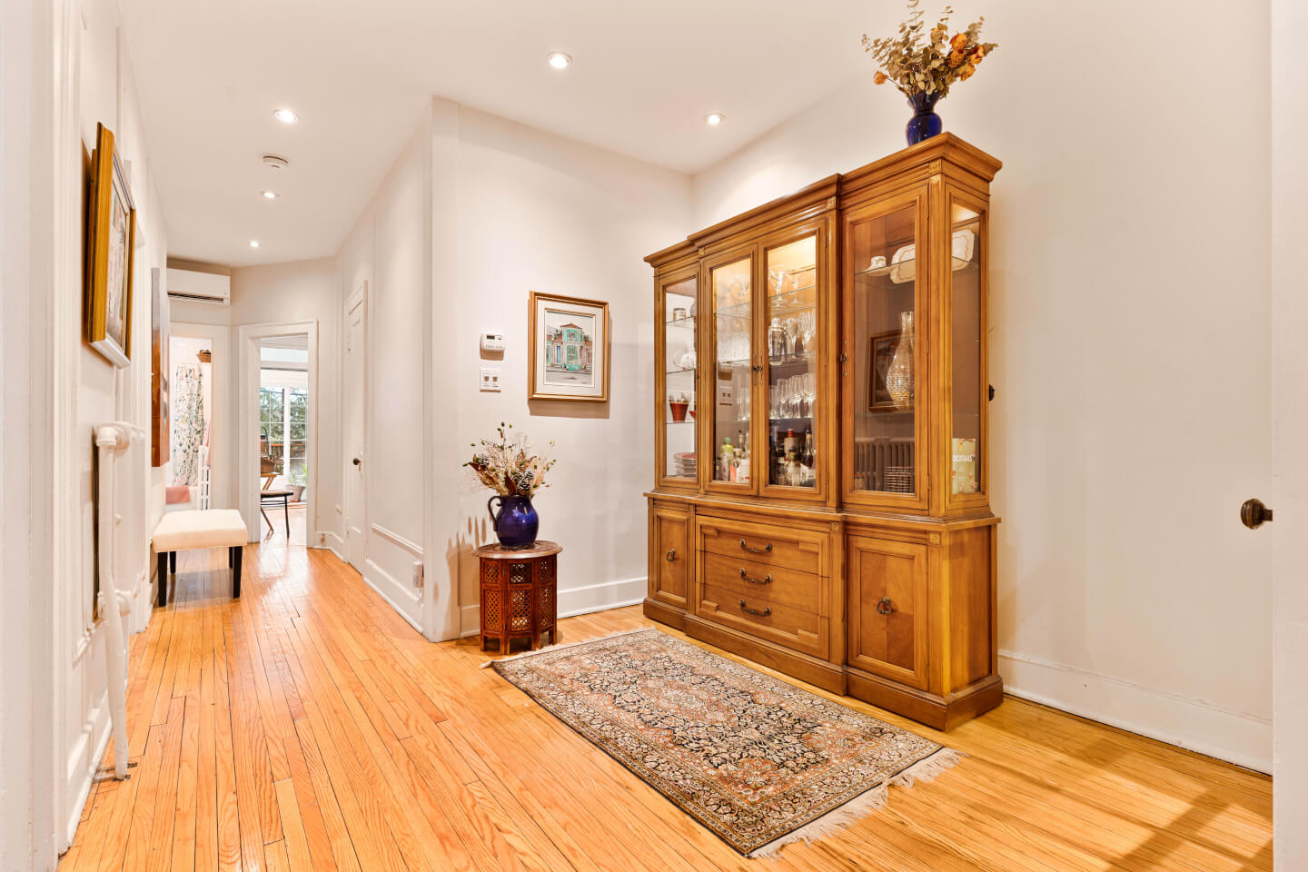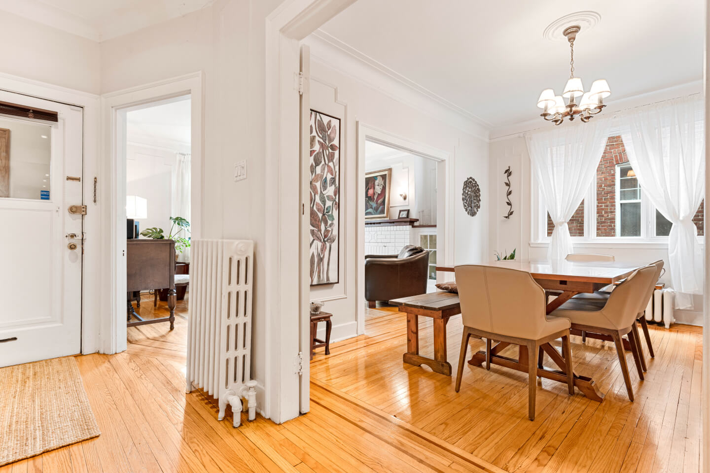 Magnificent undivided lower duplex in the heart of Monkland Village! Bathed in natural light, this home features high ceilings, oak and hardwood floors, seamlessly blending charm and modernity. The kitchen, complete with a wooden countertop, opens onto the spacious dining area and elegant living room. The unit offers 3 bedrooms and ample storage. You'll also love the 3-season solarium with a patio door leading to a south-facing terrace, boasting spectacular views. The bright basement includes a family room, a bedroom or workshop/gym, and a bachelor unit with a kitchen, bedroom, living area, and separate entrance. A must-see!