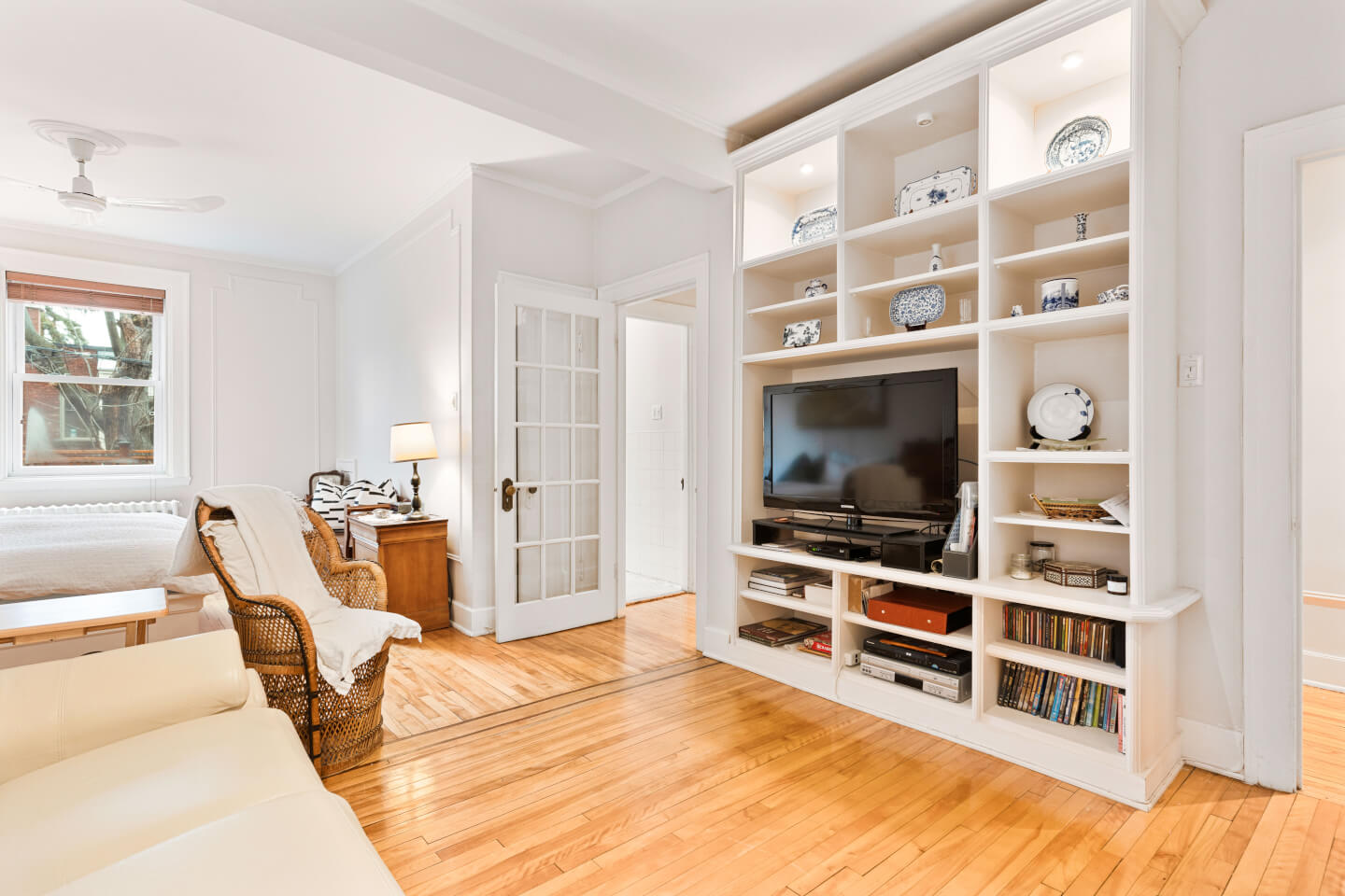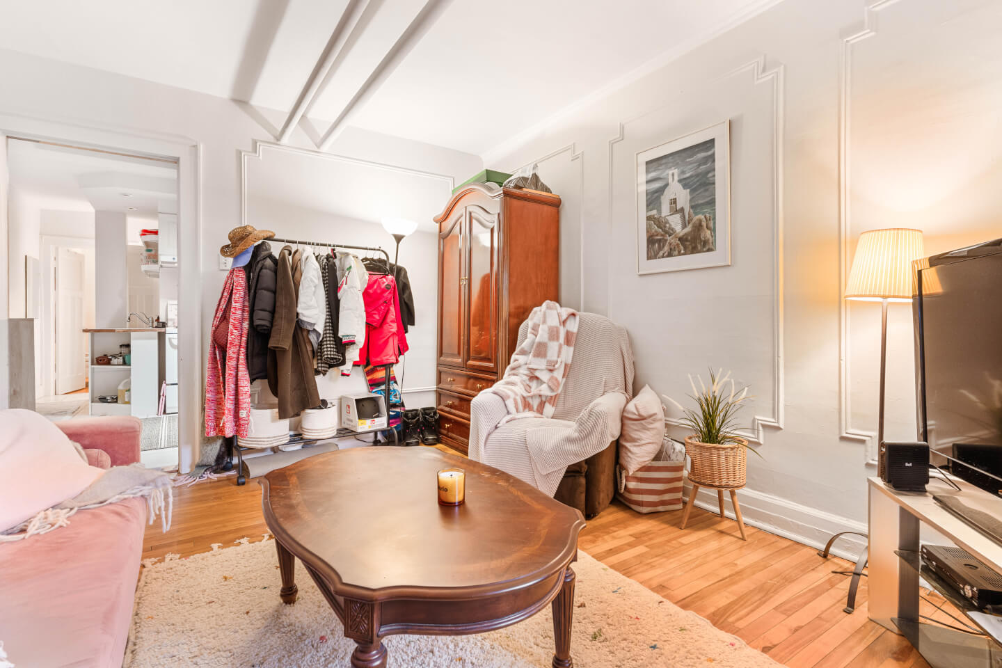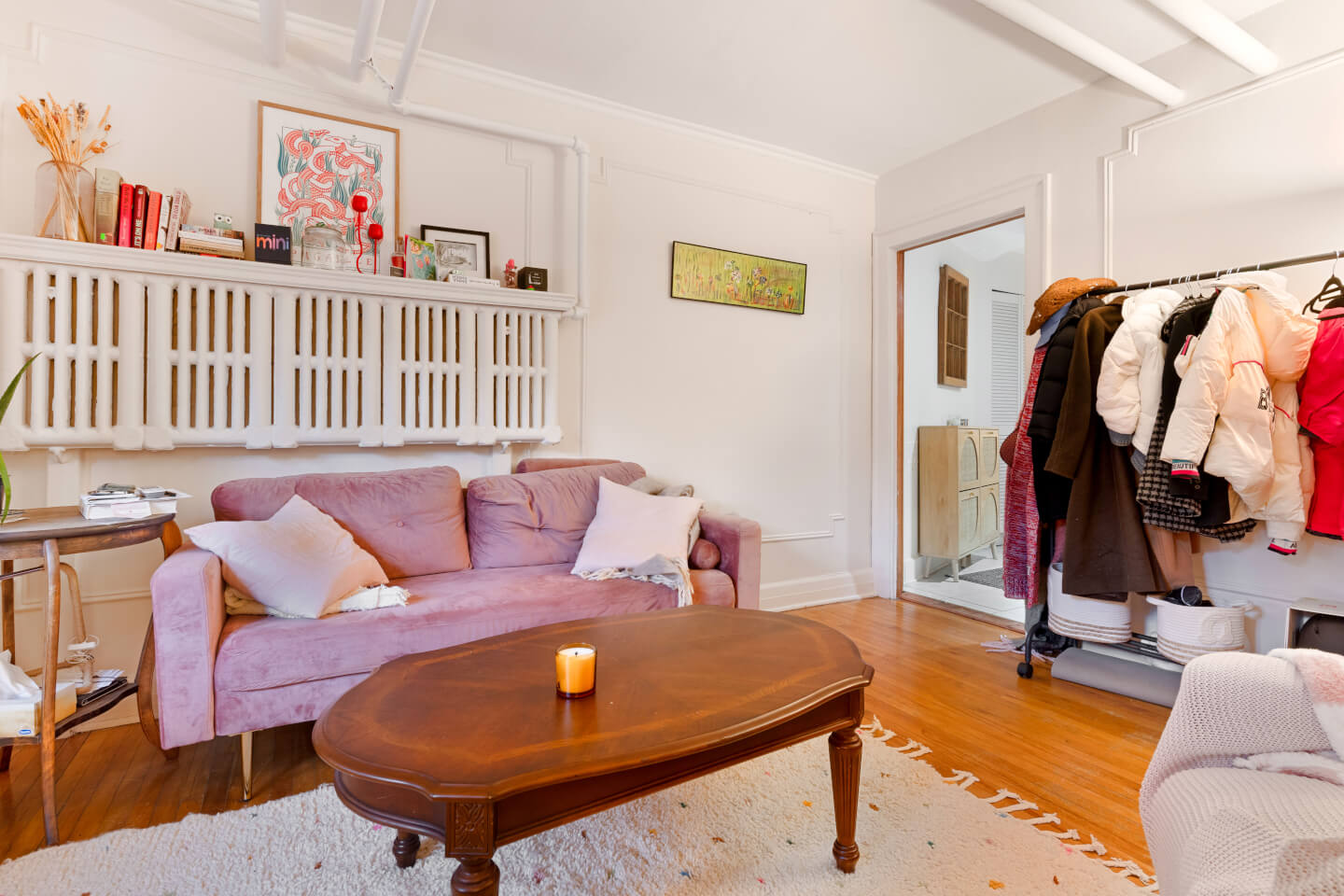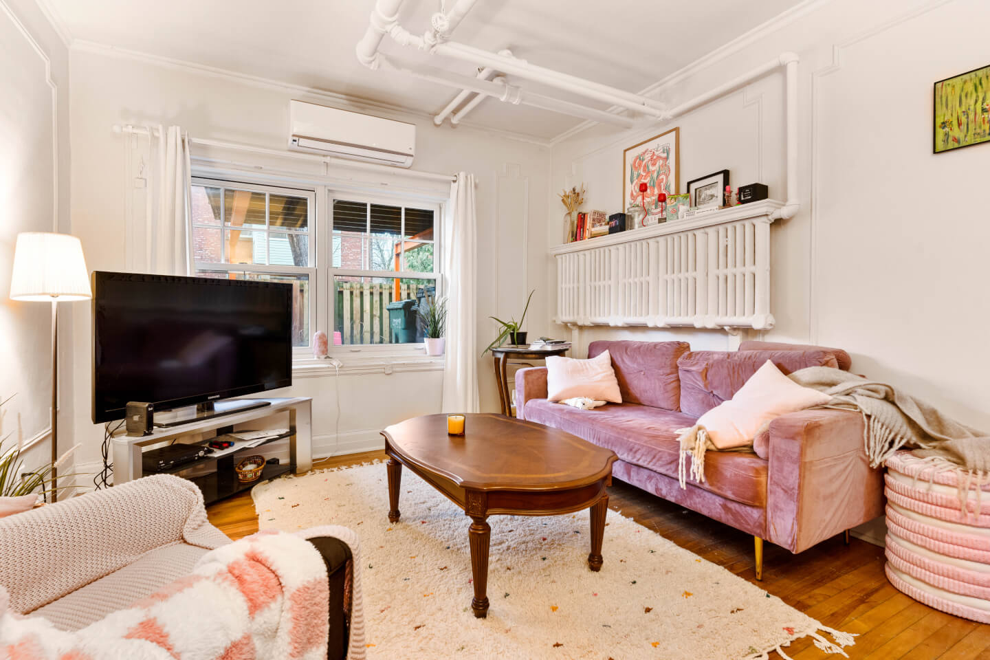 The Bachelor unit at 4148 Marcil is rented for $1,000, heating included and furnished. It includes a small kitchen, a bedroom, and a lovely living room
