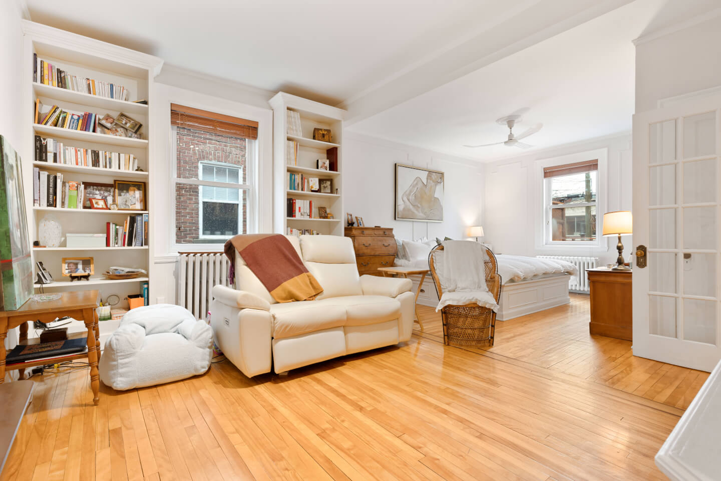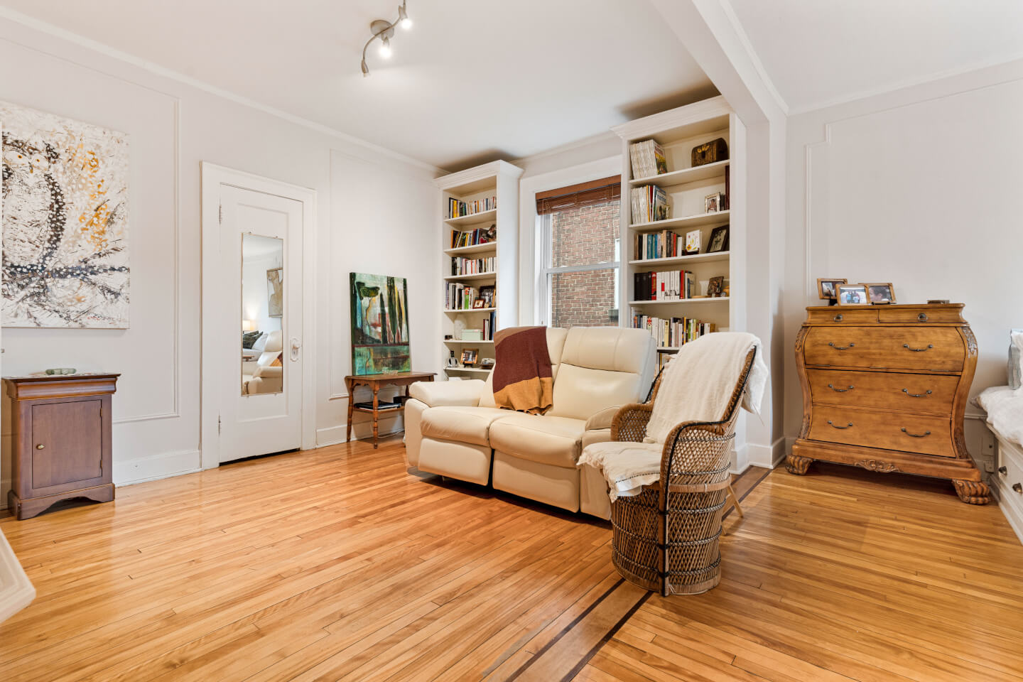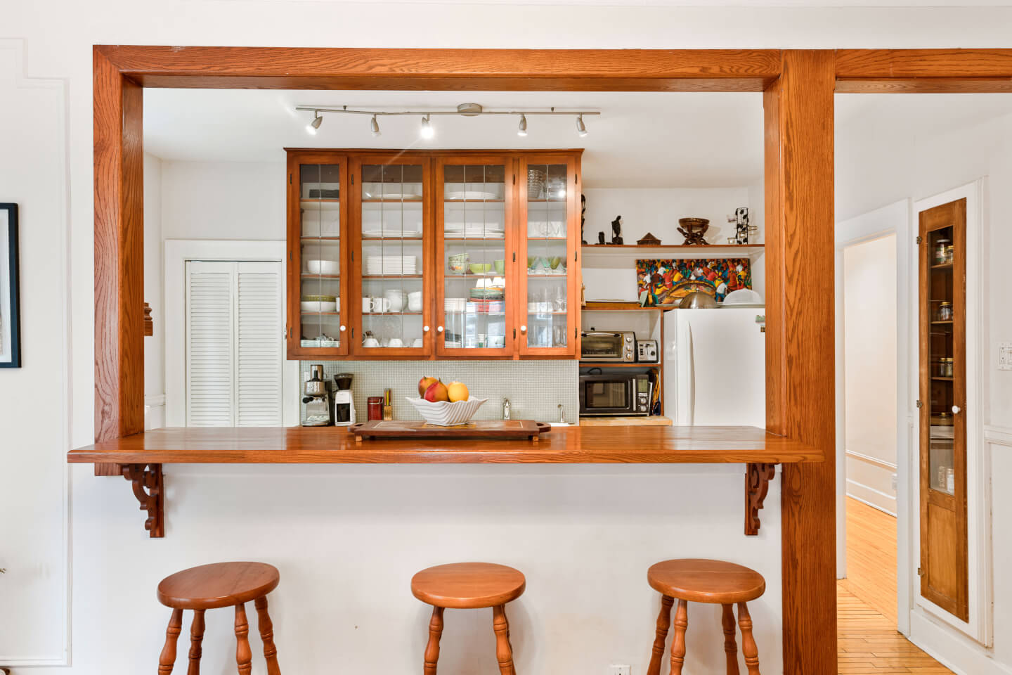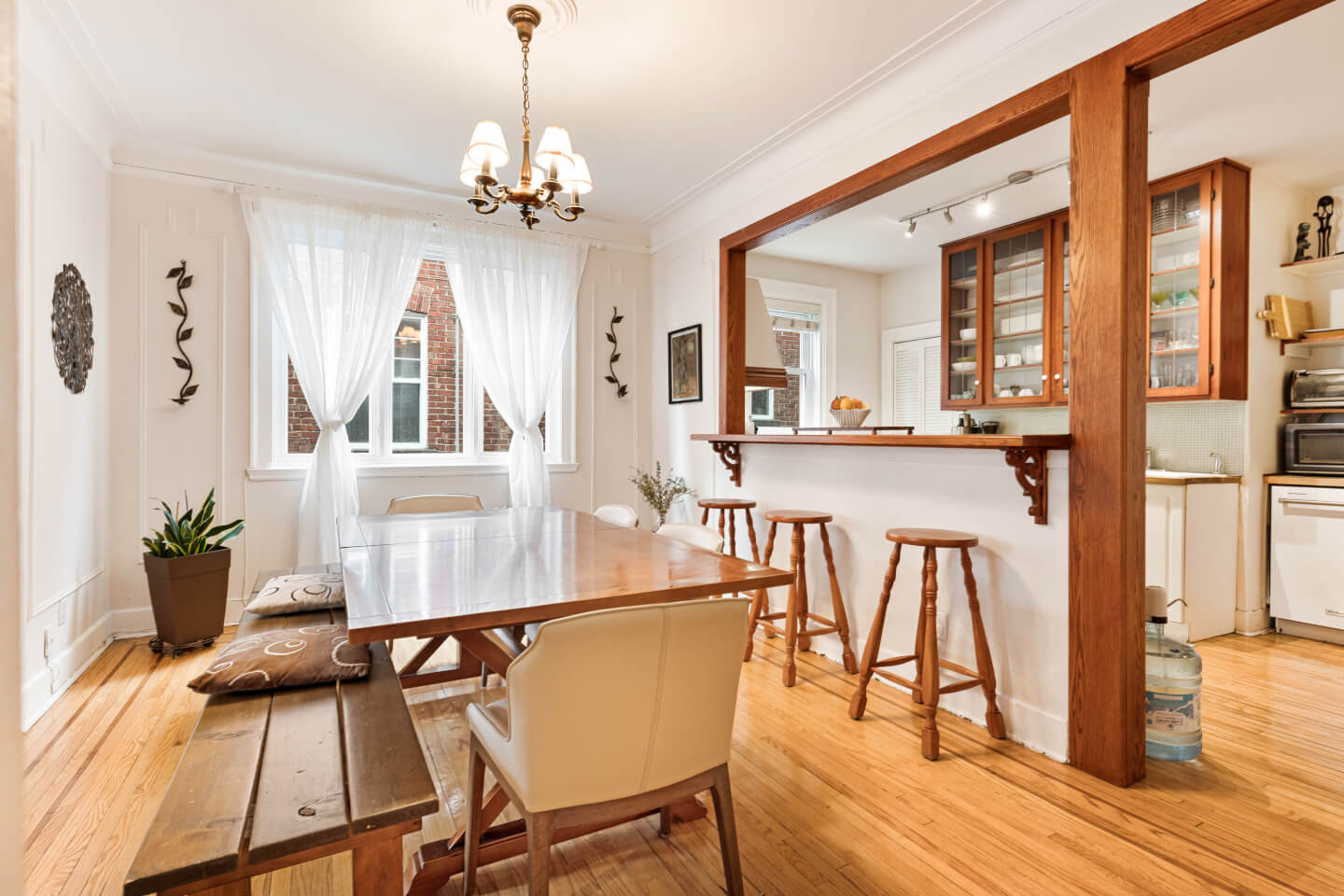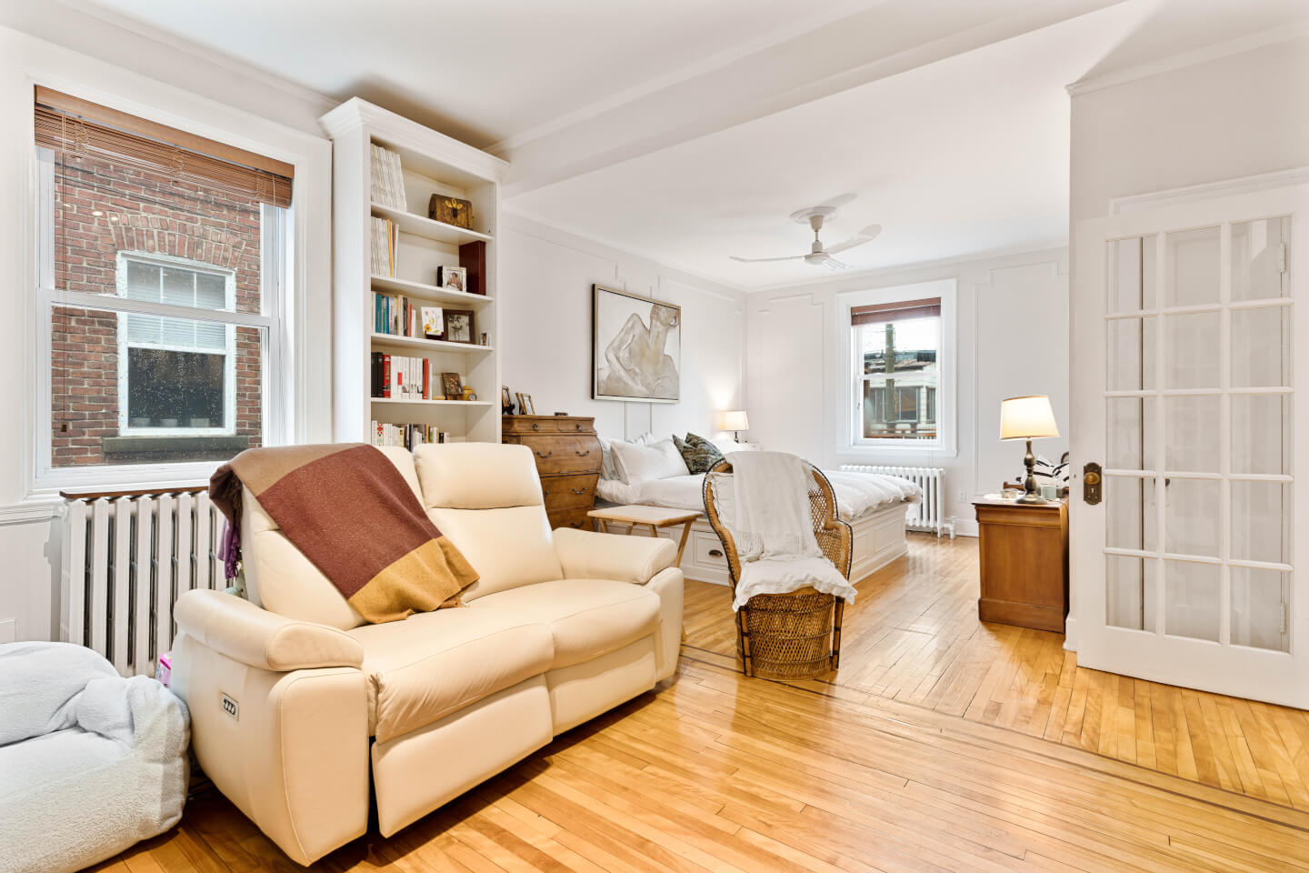 The Bachelor unit at 4148 Marcil is rented for $1,000, heating included and furnished. It includes a small kitchen, a bedroom, and a lovely living room