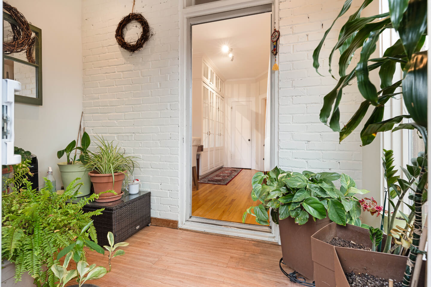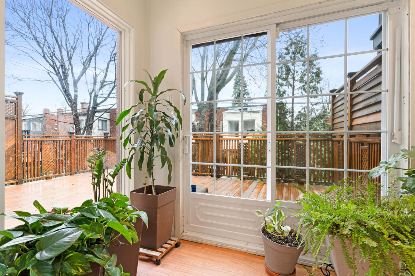 Charming 3-season sunroom, with a patio door leading to a large south-facing terrace, offering a peaceful retreat
