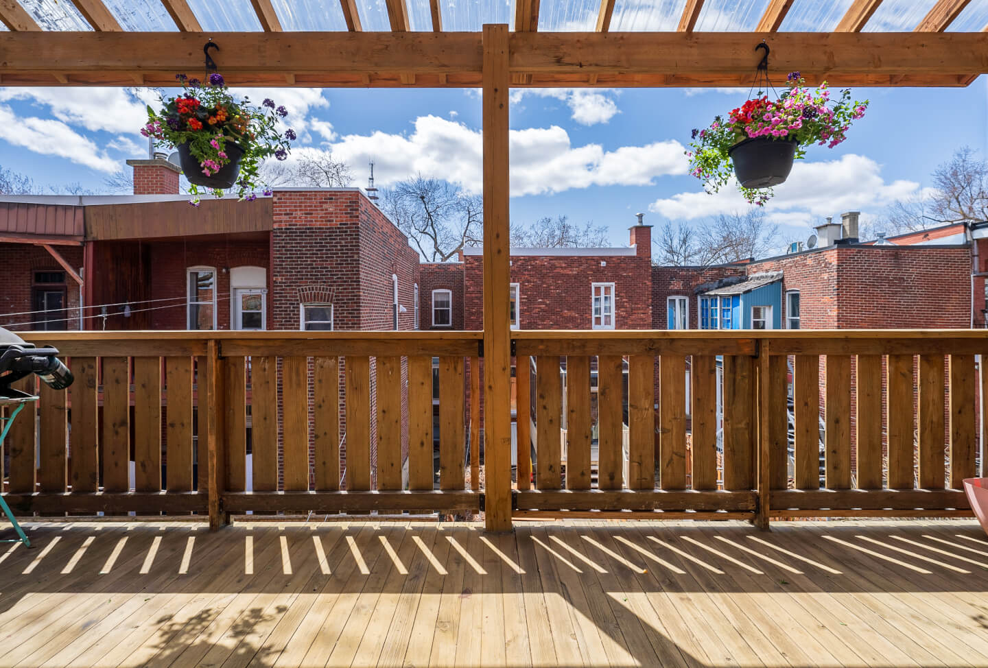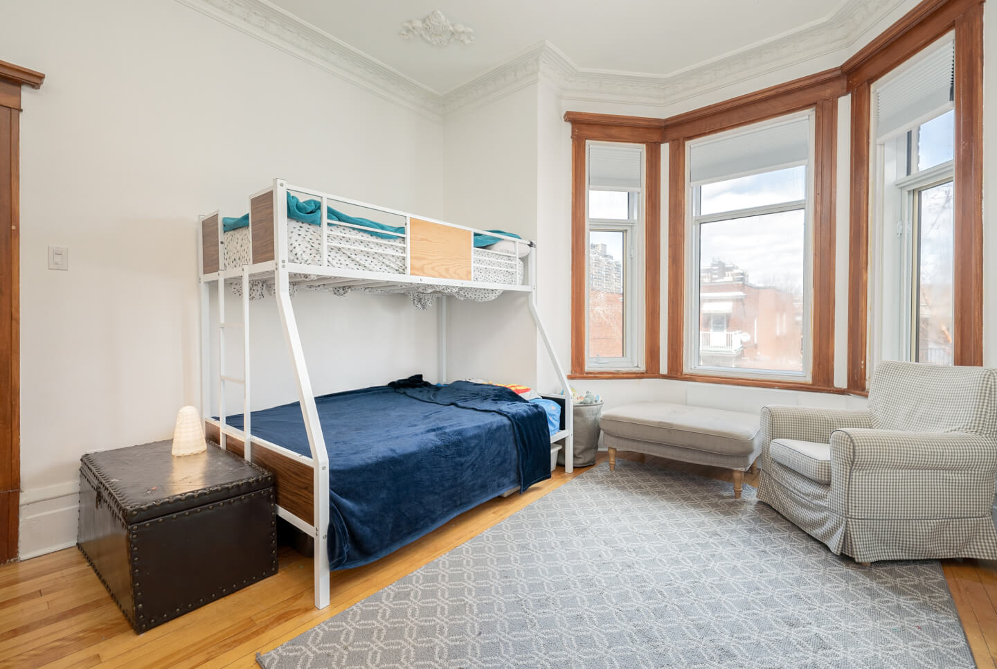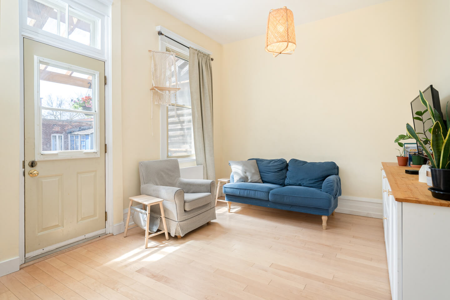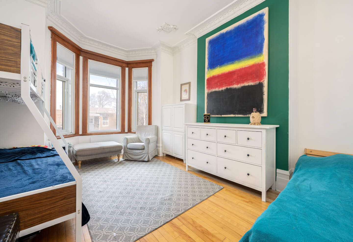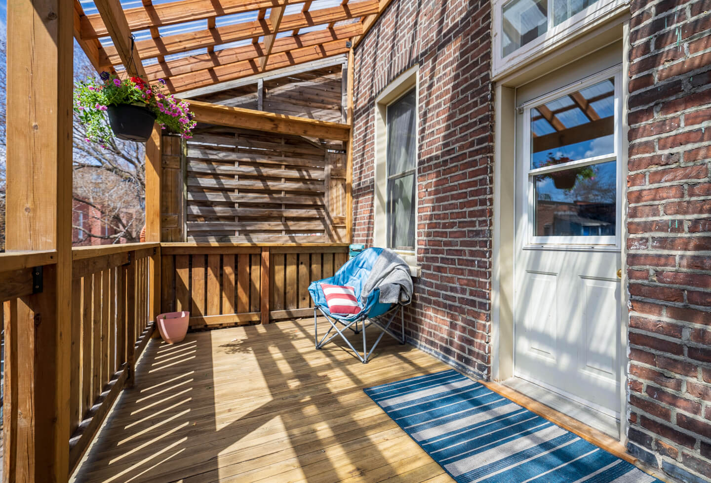Charming undivided property located on the 2nd floor of a well-maintained building that combines timeless architectural charm with thoughtful modern updates. This inviting unit offers three closed bedrooms, a bathroom refreshed in 2017, and a stylish kitchen renovated in 2022, seamlessly connected to the dining area and bright, open living room—ideal for entertaining guests. Original woodwork, soaring 10-foot ceilings, a front balcony, and a sun-filled private rear terrace. Includes a den, a home office, and an unfinished basement space with excellent potential. Prime location near parks, schools, shops, cafés, restaurants, and public transit. A true gem!