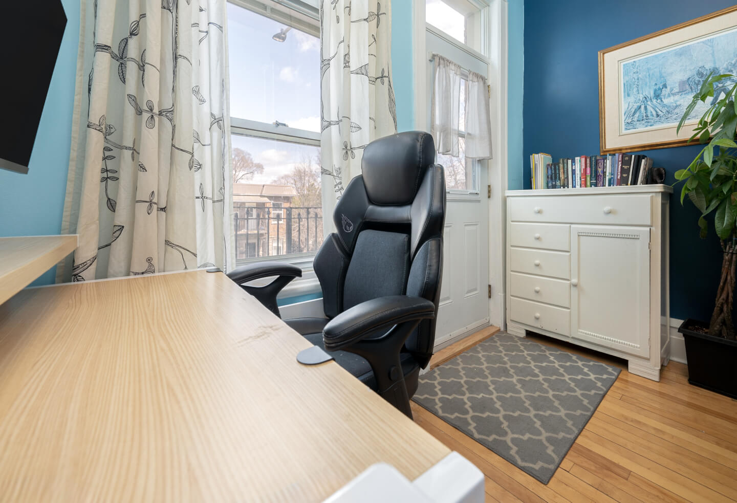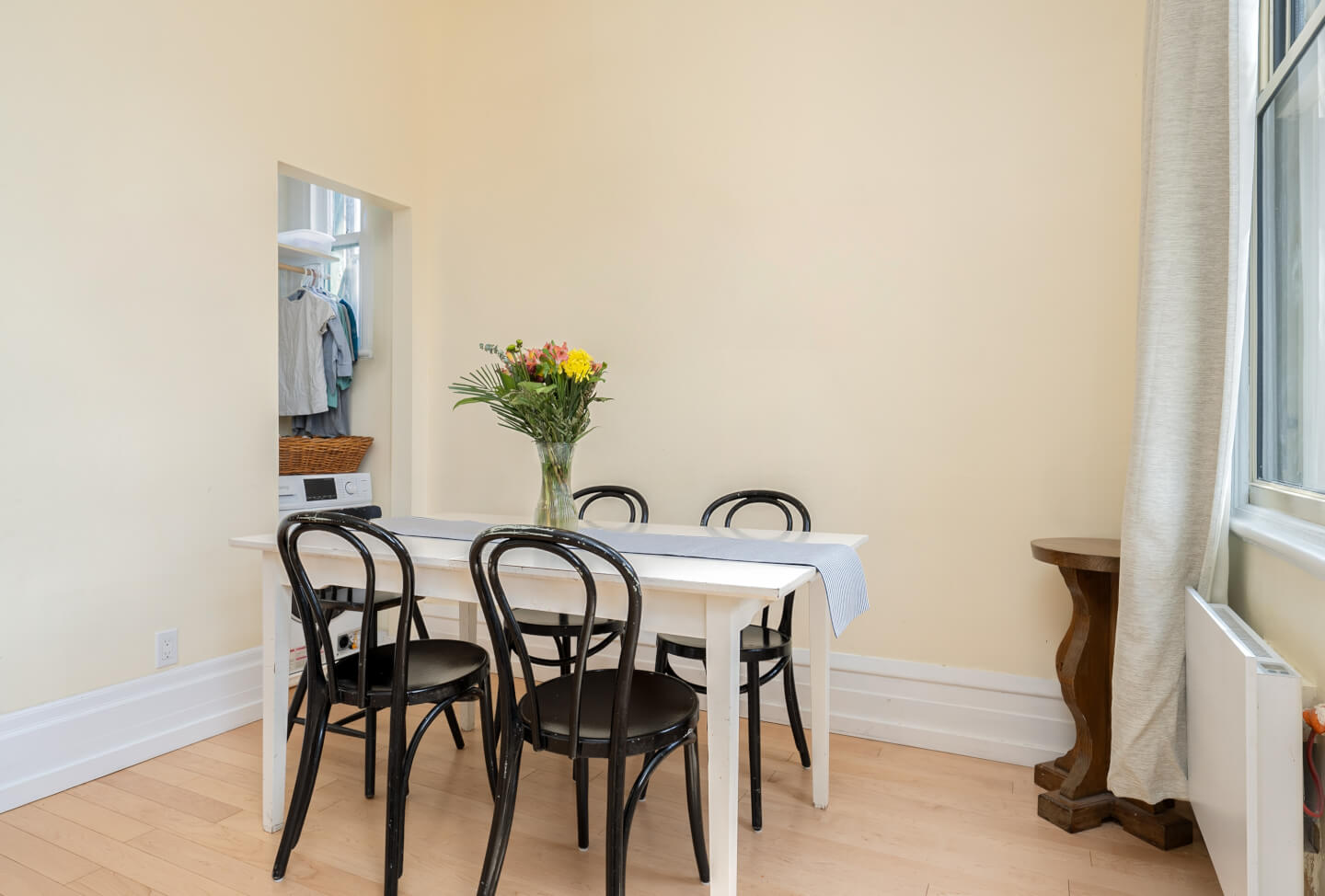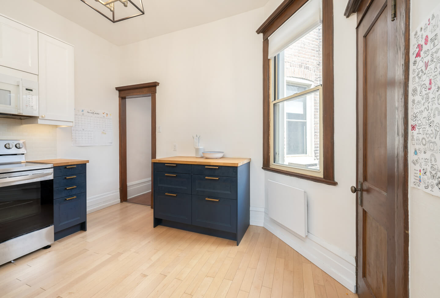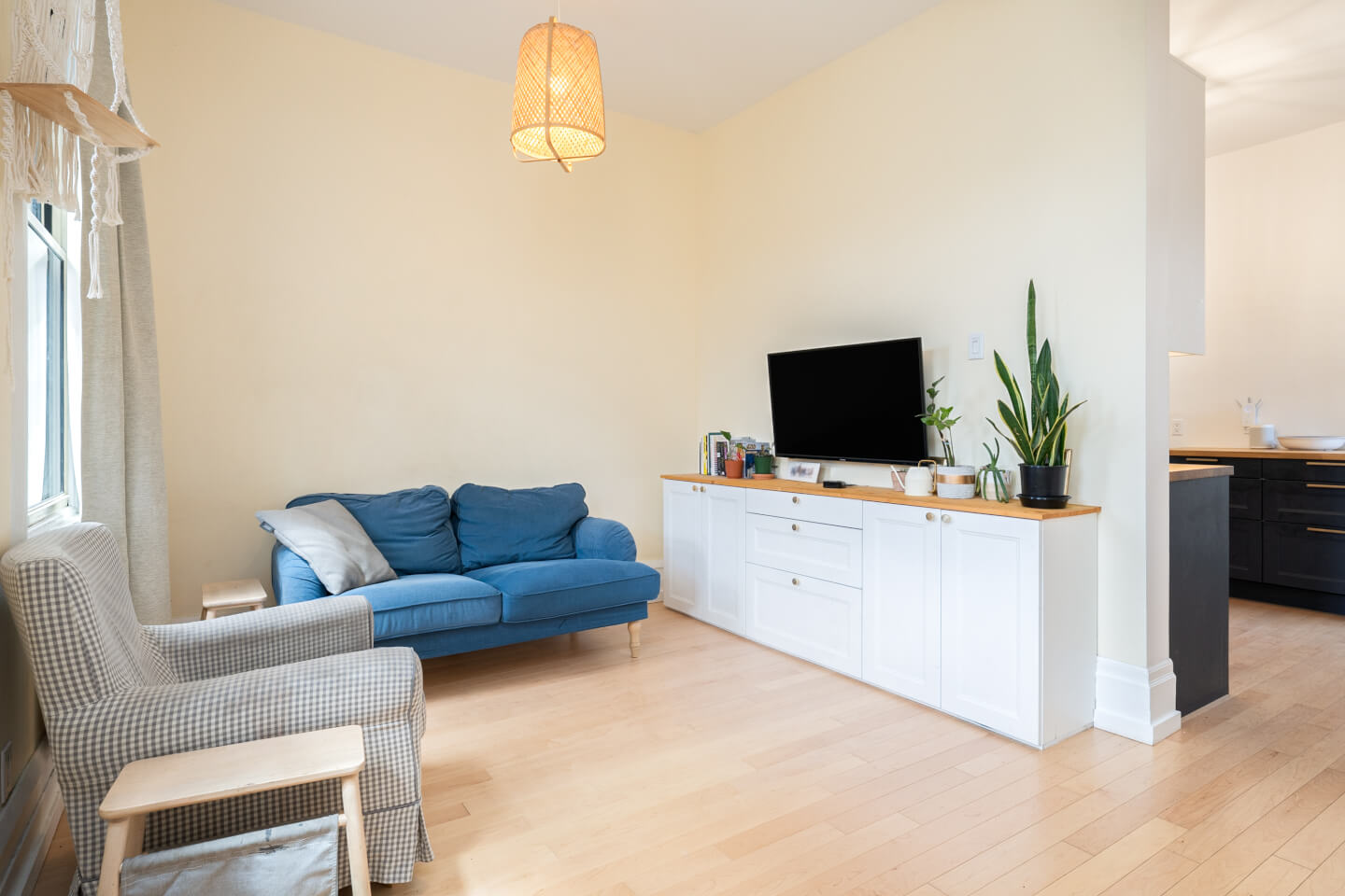 Charming undivided property located on the 2nd floor of a well-maintained building that combines timeless architectural charm with thoughtful modern updates. This inviting unit offers three closed bedrooms, a bathroom refreshed in 2017, and a stylish kitchen renovated in 2022, seamlessly connected to the dining area and bright, open living room—ideal for entertaining guests. Original woodwork, soaring 10-foot ceilings, a front balcony, and a sun-filled private rear terrace. Includes a den, a home office, and an unfinished basement space with excellent potential. Prime location near parks, schools, shops, cafés, restaurants, and public transit. A true gem!