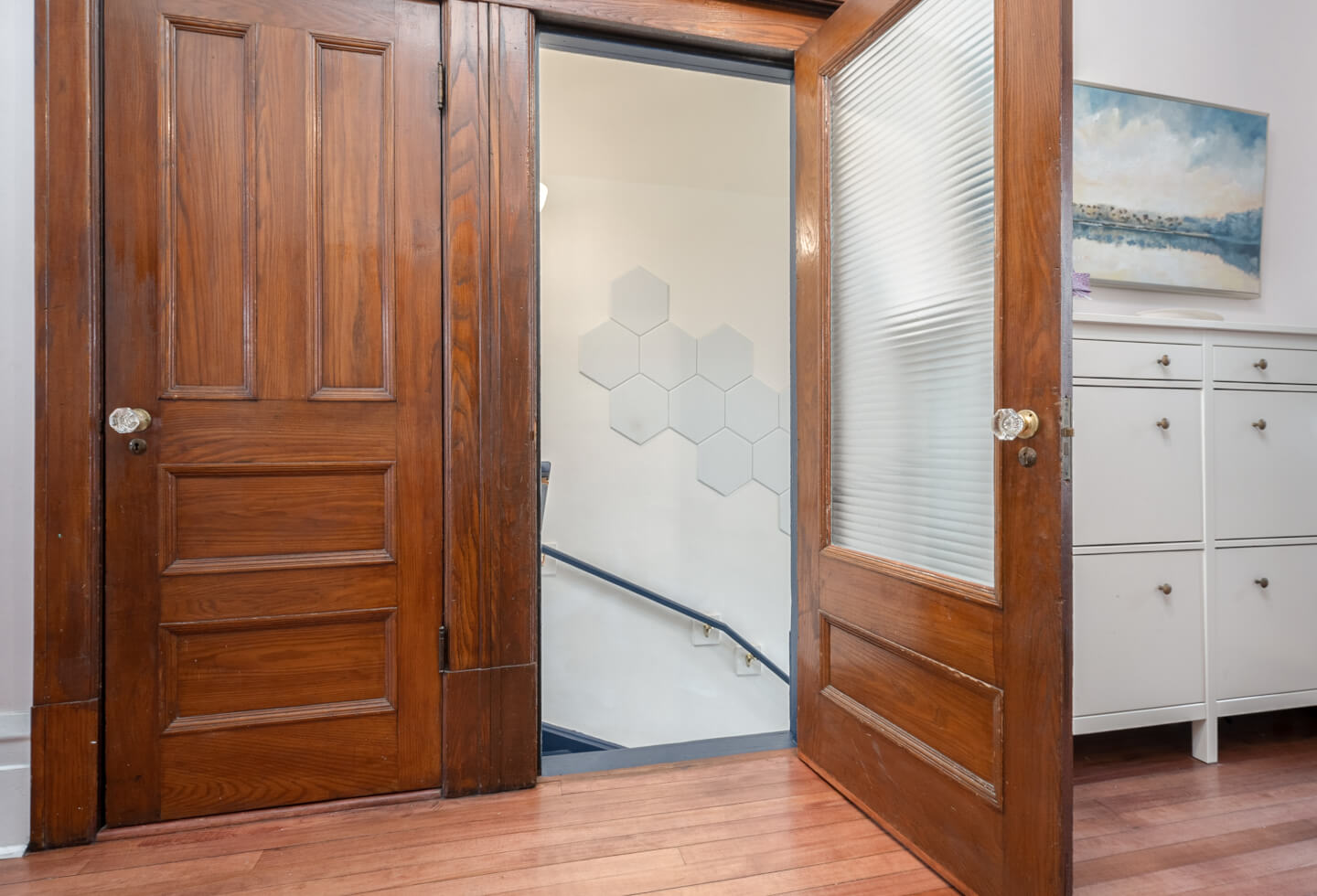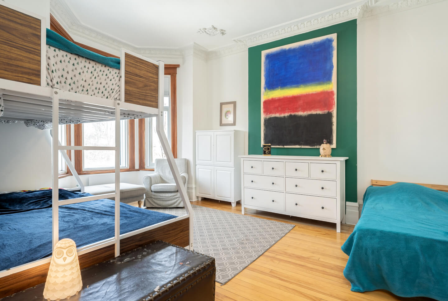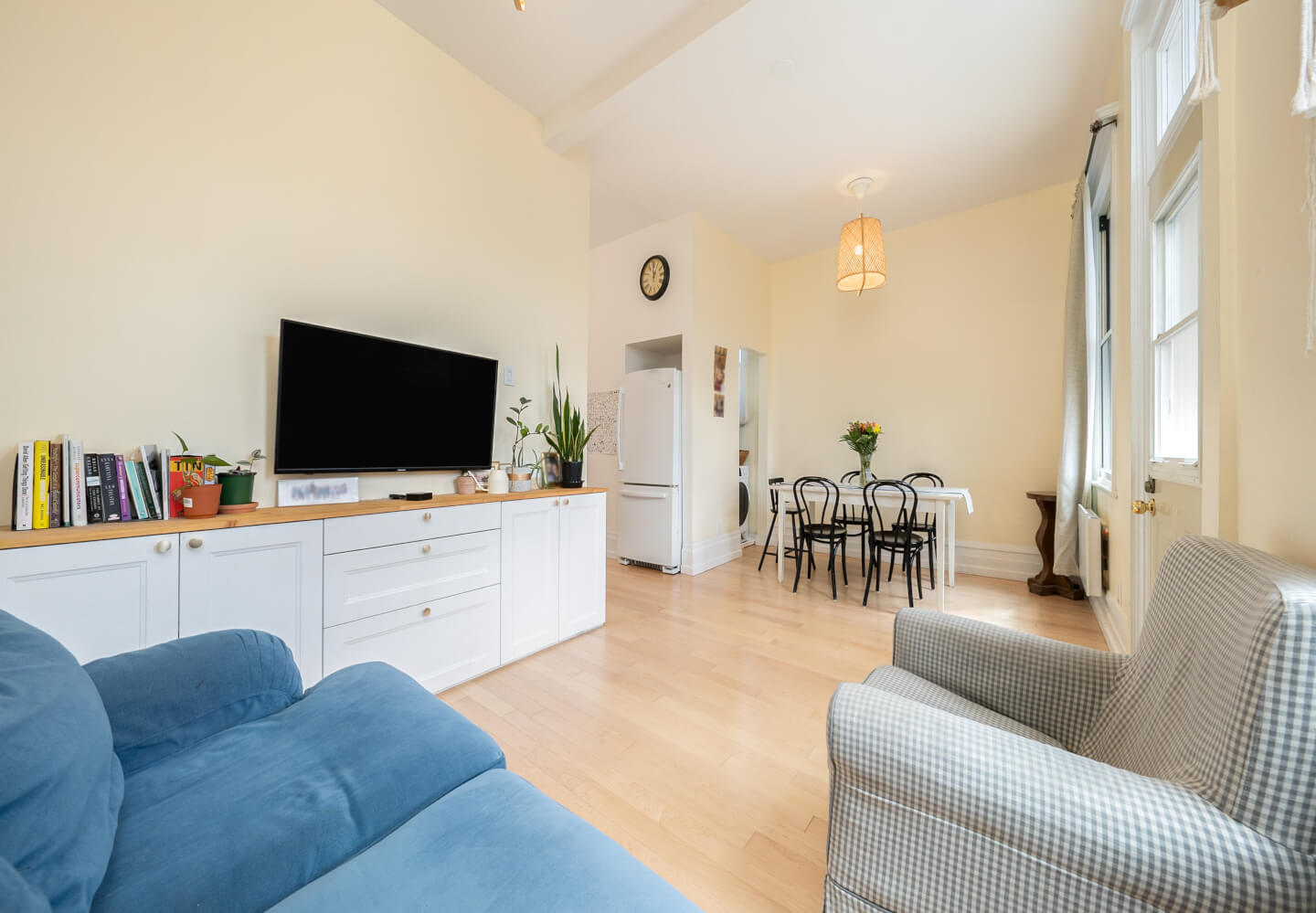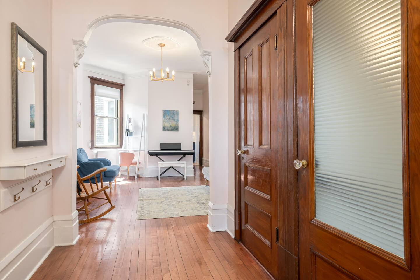 Charming undivided property located on the 2nd floor of a well-maintained building that combines timeless architectural charm with thoughtful modern updates. This inviting unit offers three closed bedrooms, a bathroom refreshed in 2017, and a stylish kitchen renovated in 2022, seamlessly connected to the dining area and bright, open living room—ideal for entertaining guests. Original woodwork, soaring 10-foot ceilings, a front balcony, and a sun-filled private rear terrace. Includes a den, a home office, and an unfinished basement space with excellent potential. Prime location near parks, schools, shops, cafés, restaurants, and public transit. A true gem!