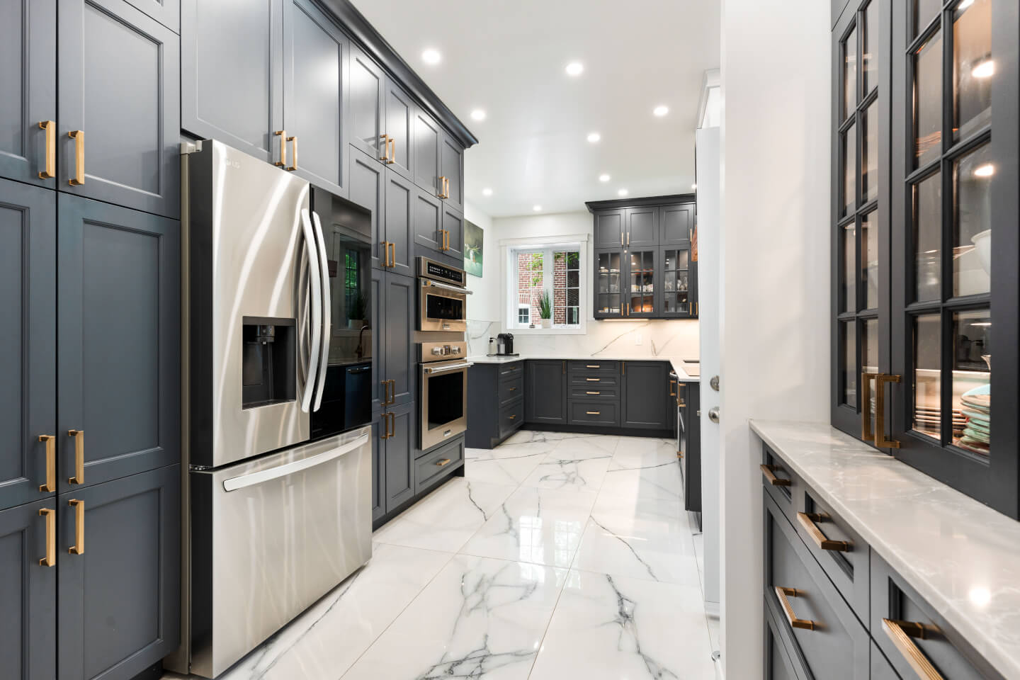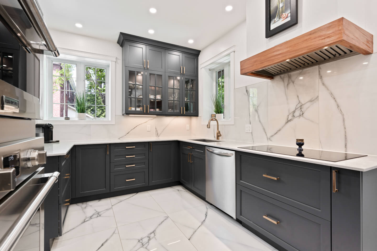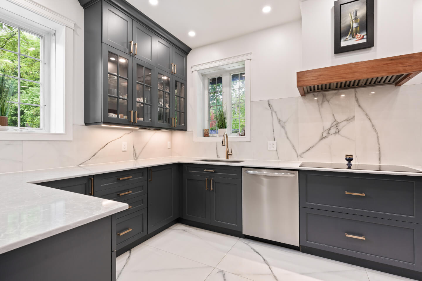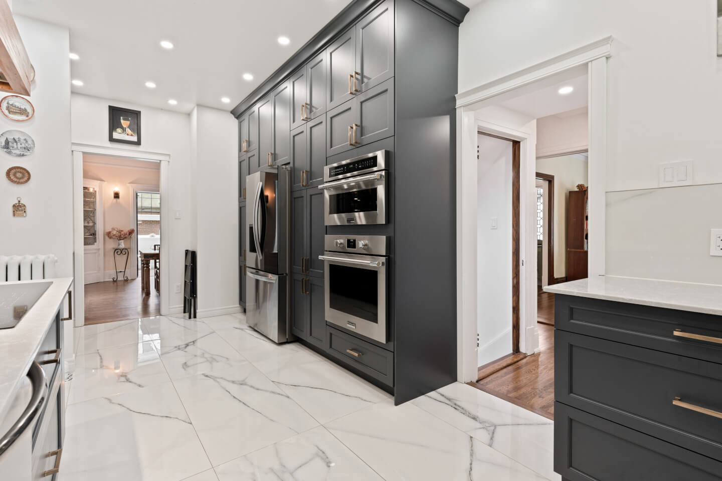 Superb renovated kitchen with quartz countertops and ceramic floors