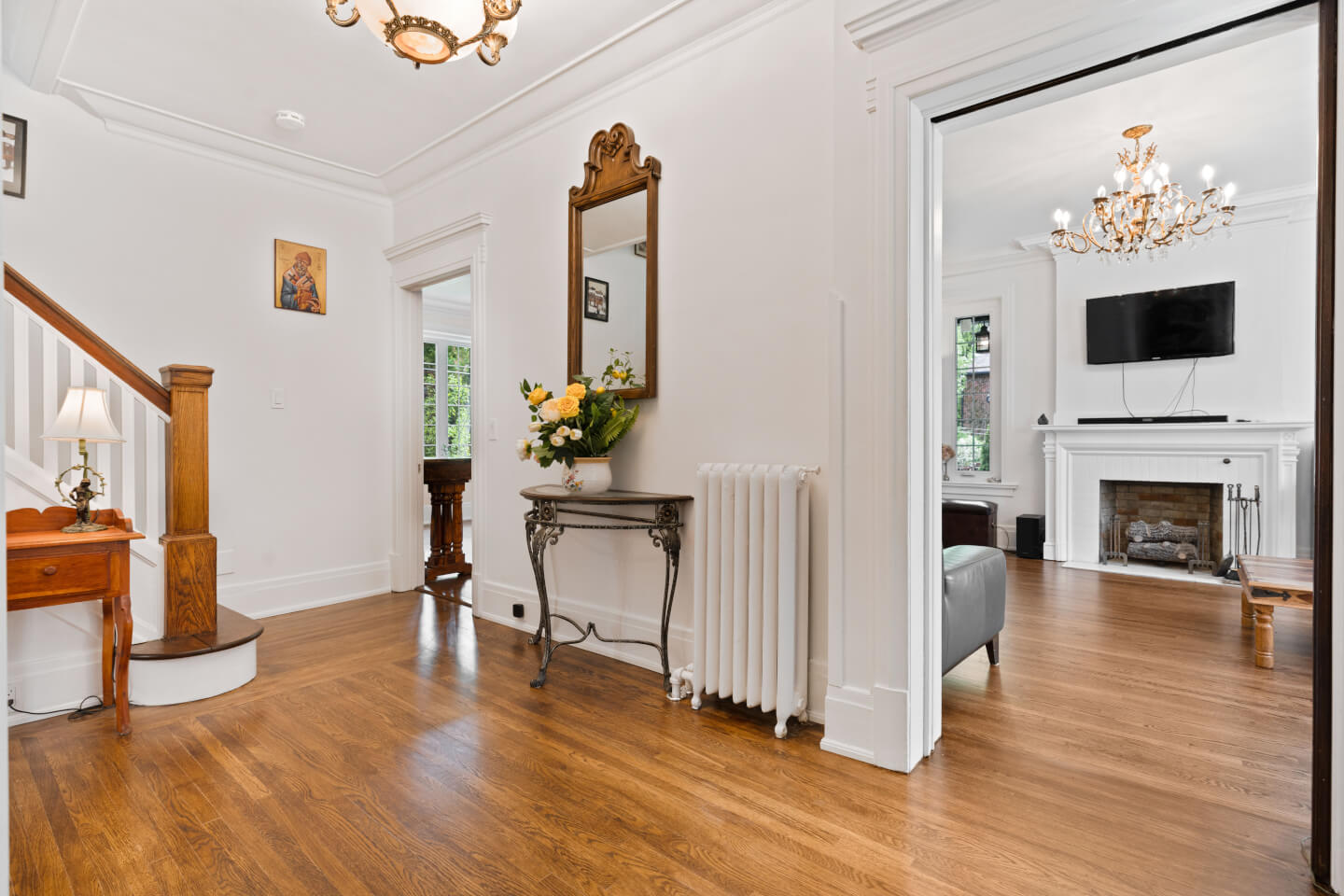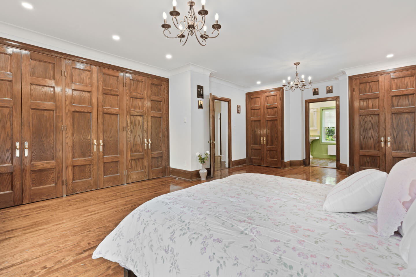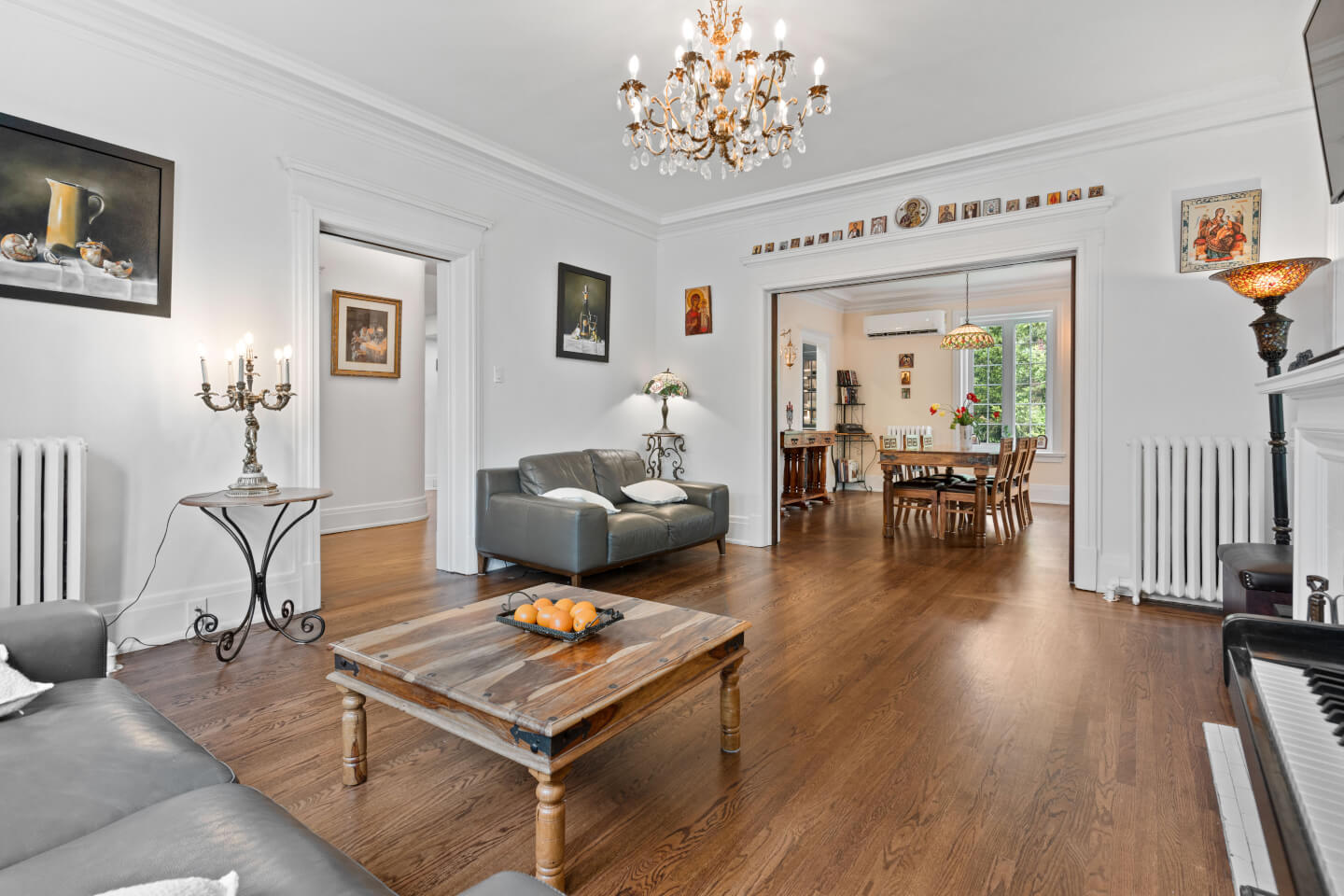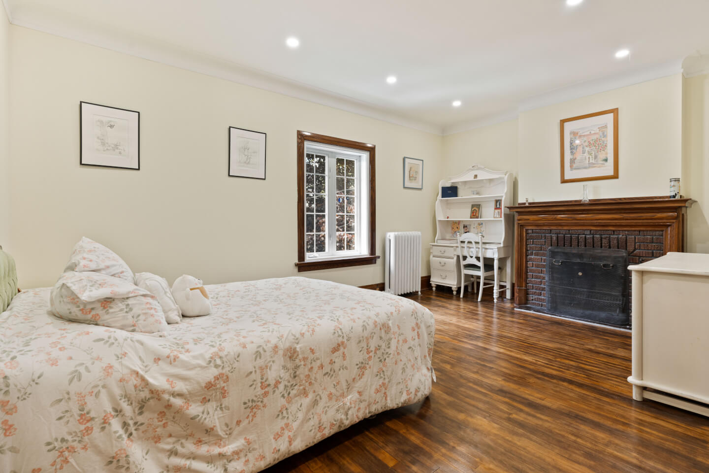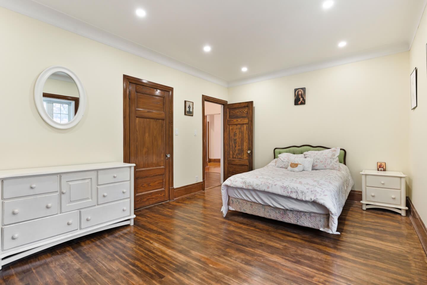 Nestled on a quiet street in an exceptional neighborhood, this elegant 3-storey detached home sits on a huge lot and blends classic charm with modern luxury. Completely renovated with impeccable taste and high-end finishes, it offers 6 spacious bedrooms, including a stunning primary suite with a luxurious ensuite, double vanity, and huge closets. The sun-filled living room flows into a formal dining area, while the renovated kitchen boasts quartz counters and ceramic flooring. A bright sunroom opens to a terrace and the expansive yard. The finished basement features a large family room, gym, and generous laundry room with a chute and storage.