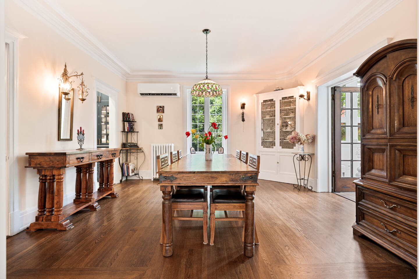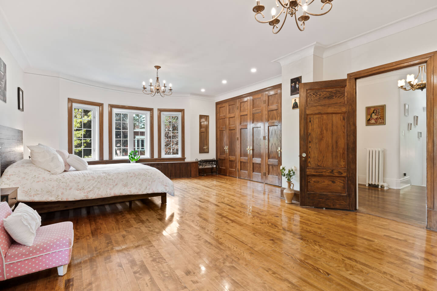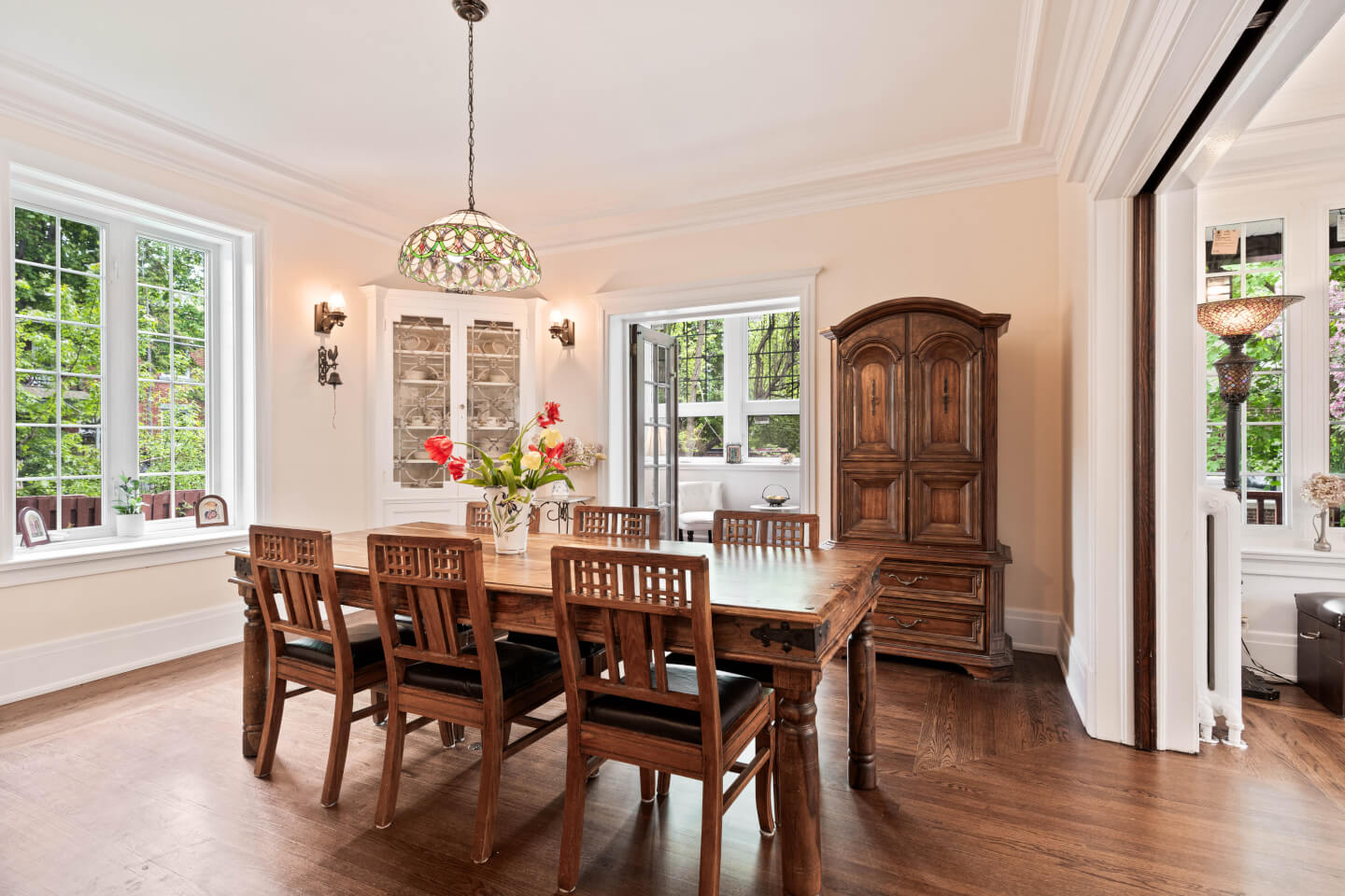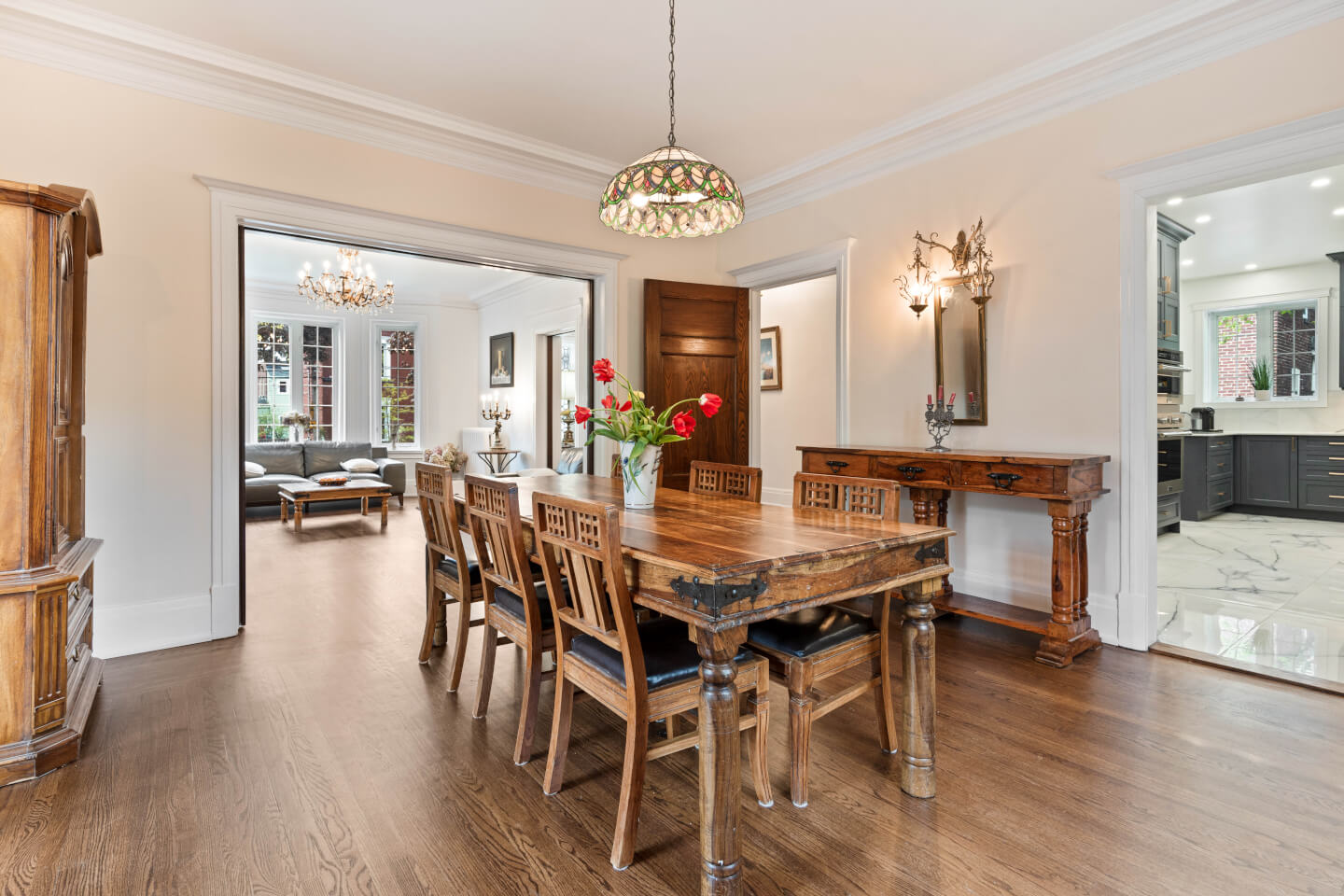 Nestled on a quiet street in an exceptional neighborhood, this elegant 3-storey detached home sits on a huge lot and blends classic charm with modern luxury. Completely renovated with impeccable taste and high-end finishes, it offers 6 spacious bedrooms, including a stunning primary suite with a luxurious ensuite, double vanity, and huge closets. The sun-filled living room flows into a formal dining area, while the renovated kitchen boasts quartz counters and ceramic flooring. A bright sunroom opens to a terrace and the expansive yard. The finished basement features a large family room, gym, and generous laundry room with a chute and storage.