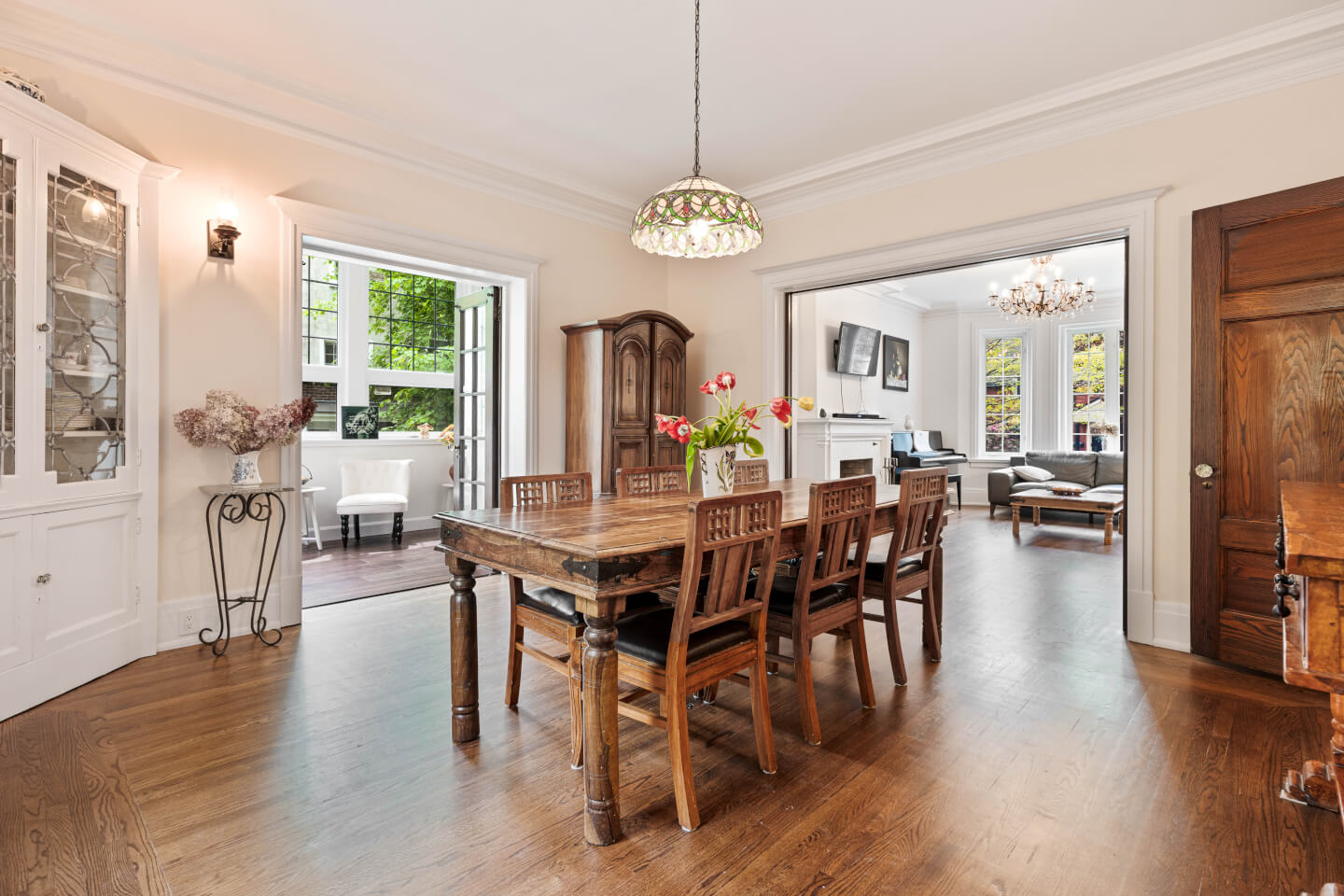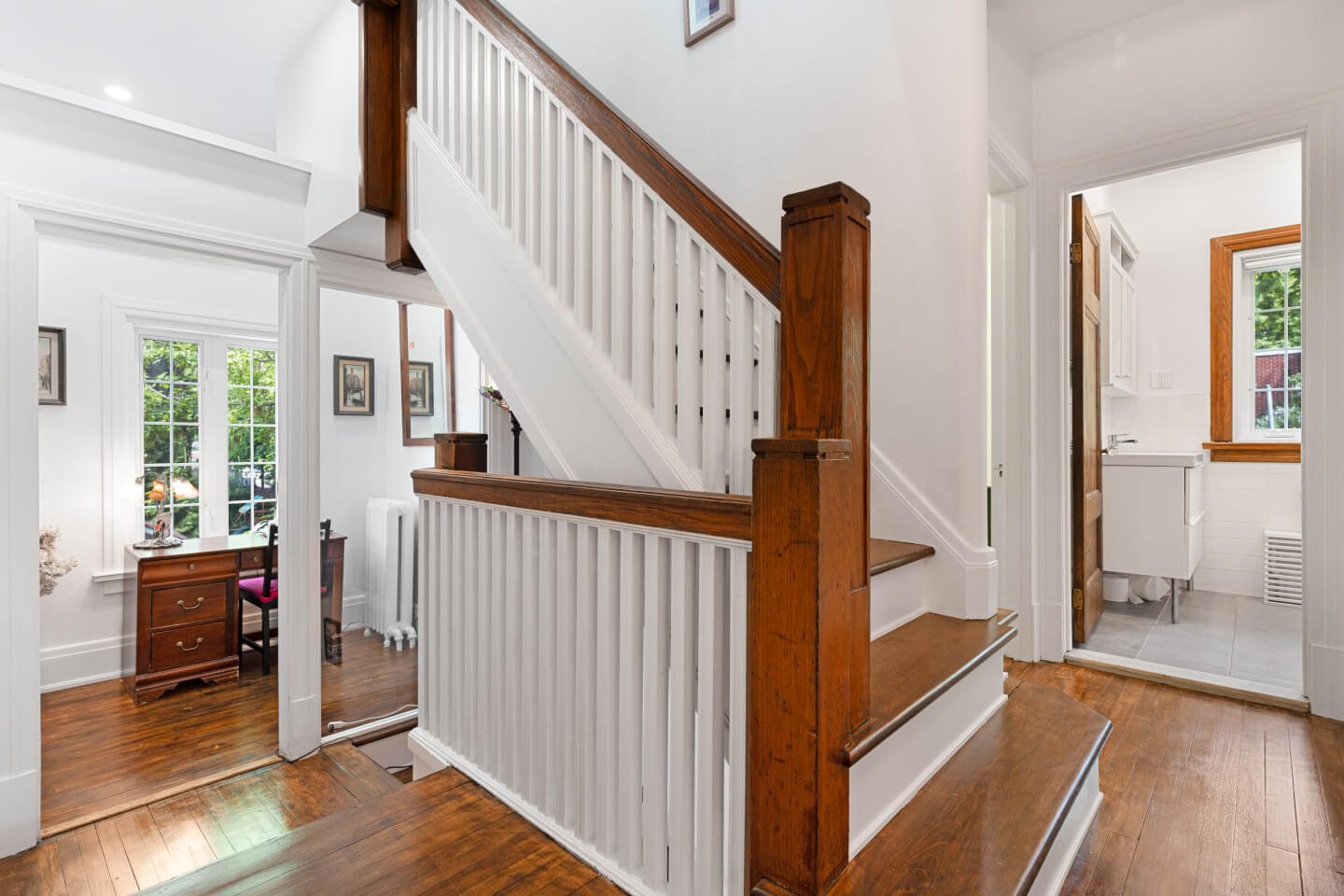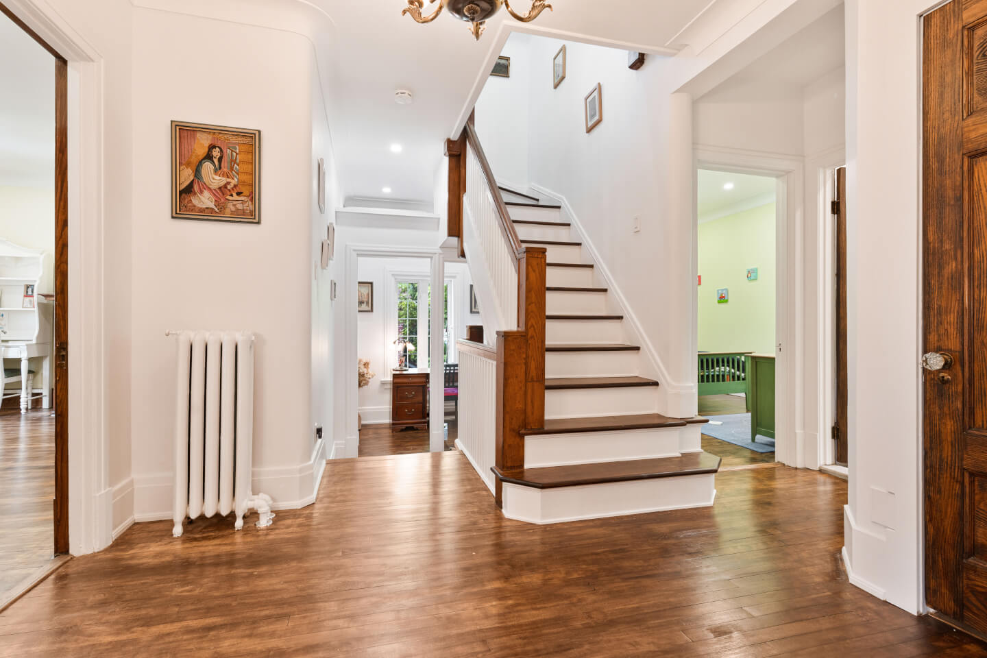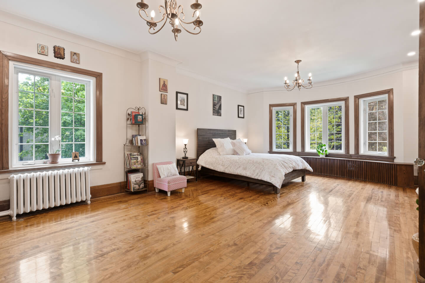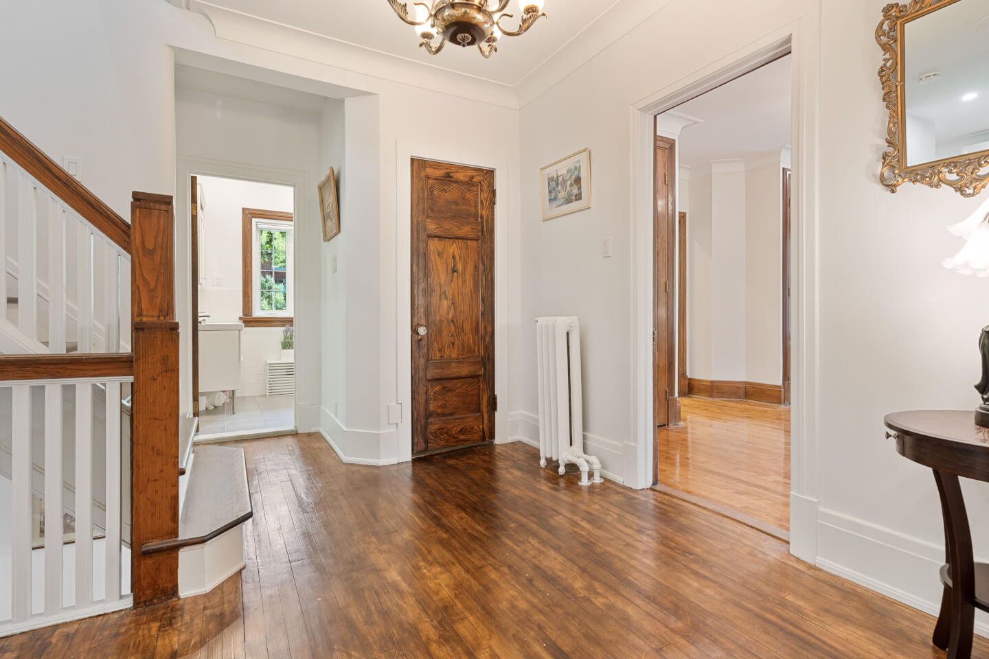 Nestled on a quiet street in an exceptional neighborhood, this elegant 3-storey detached home sits on a huge lot and blends classic charm with modern luxury. Completely renovated with impeccable taste and high-end finishes, it offers 6 spacious bedrooms, including a stunning primary suite with a luxurious ensuite, double vanity, and huge closets. The sun-filled living room flows into a formal dining area, while the renovated kitchen boasts quartz counters and ceramic flooring. A bright sunroom opens to a terrace and the expansive yard. The finished basement features a large family room, gym, and generous laundry room with a chute and storage.