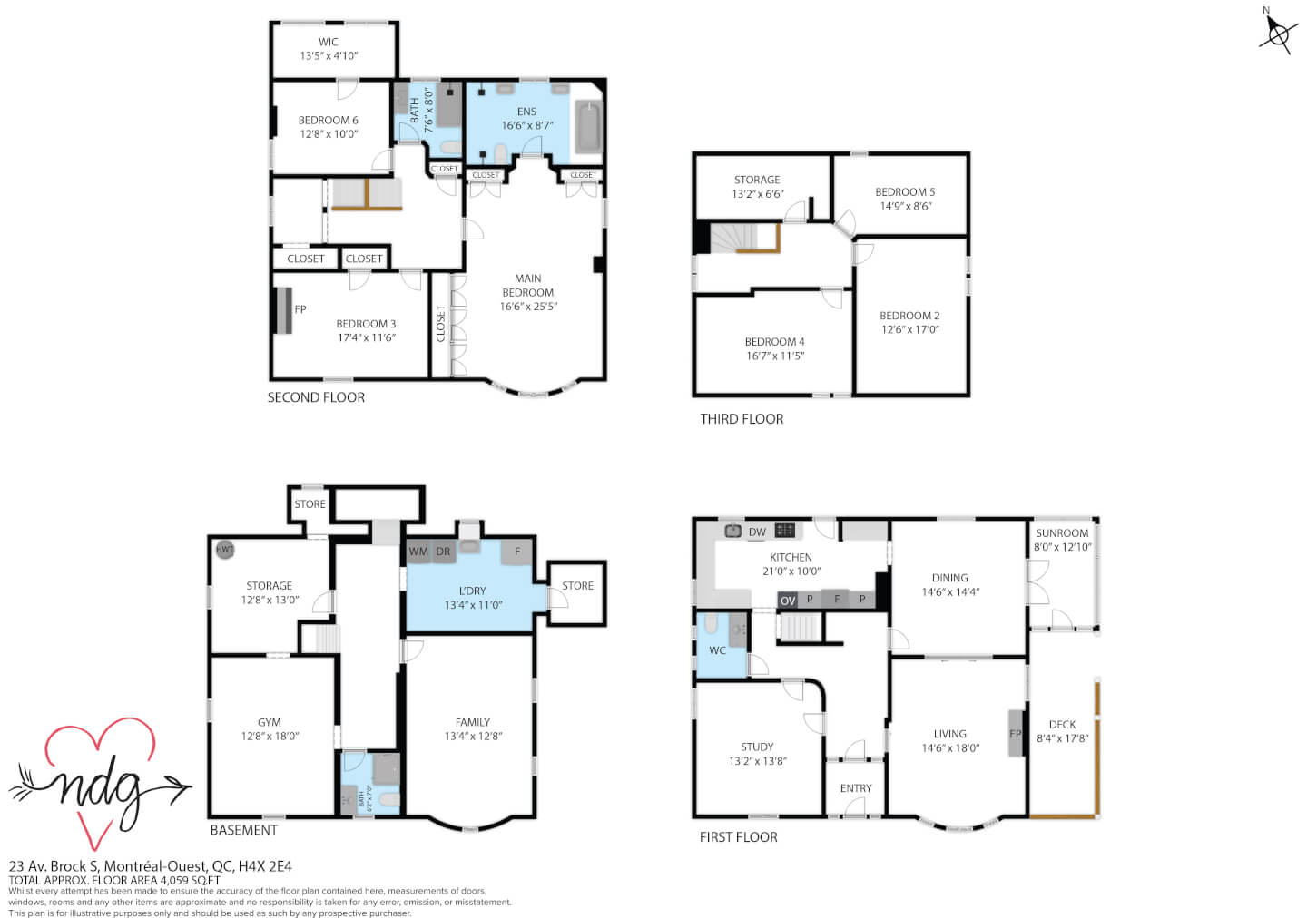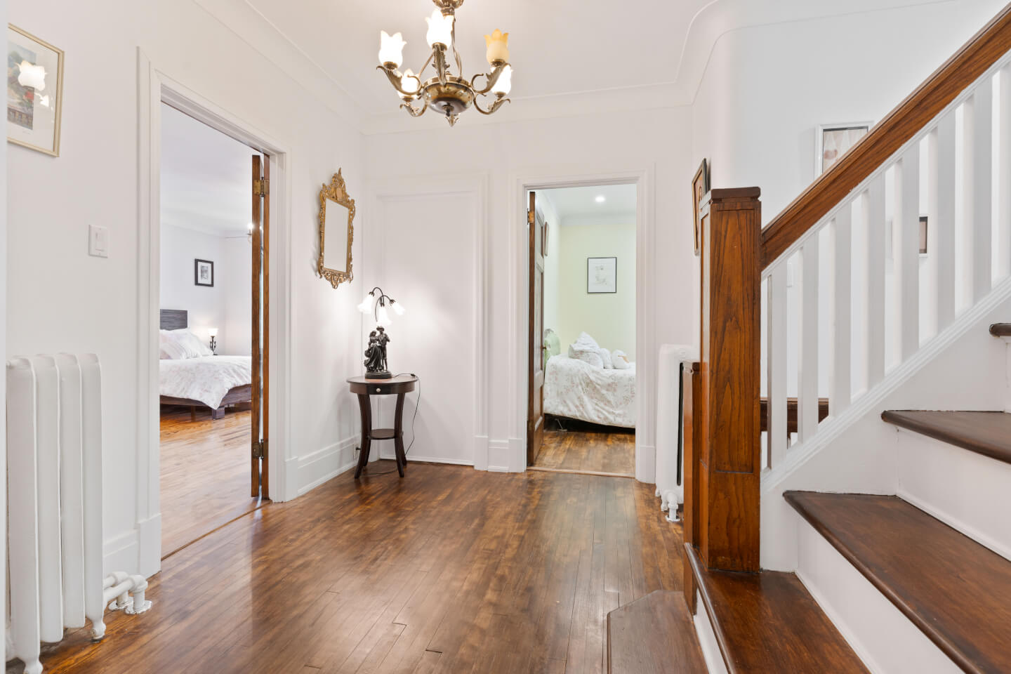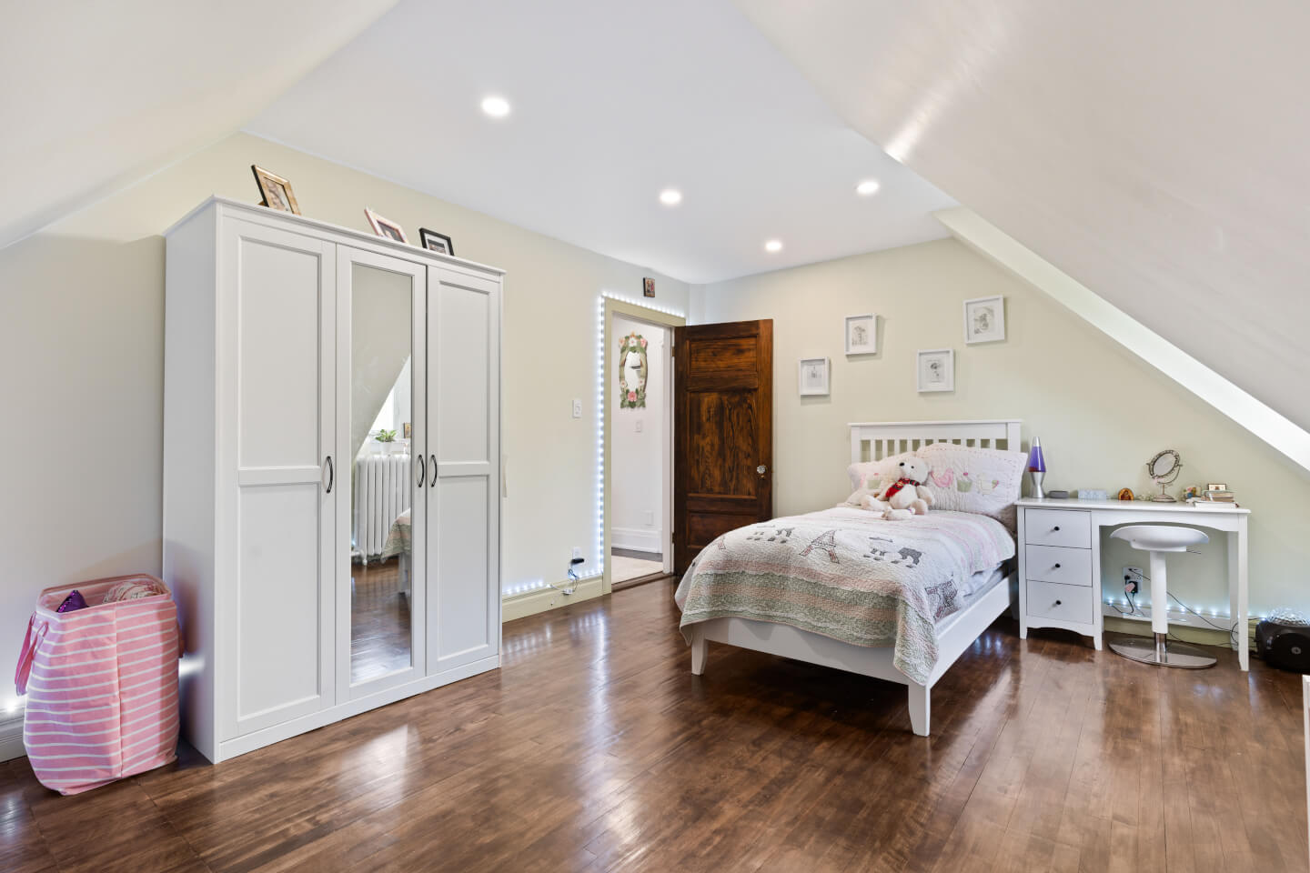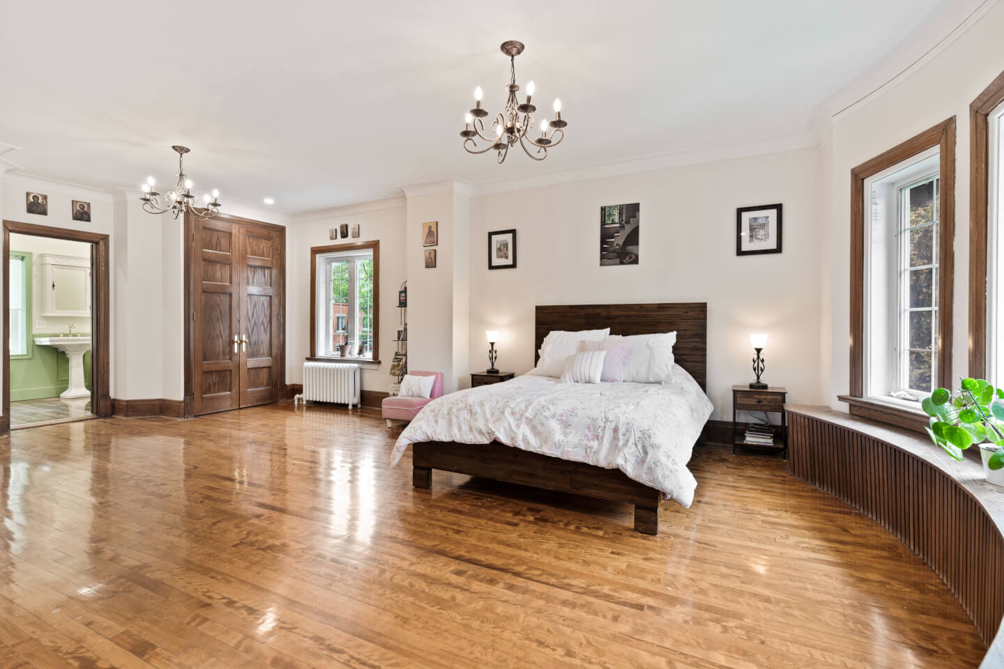 Nestled on a quiet street in an exceptional neighborhood, this elegant 3-storey detached home sits on a huge lot and blends classic charm with modern luxury. Completely renovated with impeccable taste and high-end finishes, it offers 6 spacious bedrooms, including a stunning primary suite with a luxurious ensuite, double vanity, and huge closets. The sun-filled living room flows into a formal dining area, while the renovated kitchen boasts quartz counters and ceramic flooring. A bright sunroom opens to a terrace and the expansive yard. The finished basement features a large family room, gym, and generous laundry room with a chute and storage.
