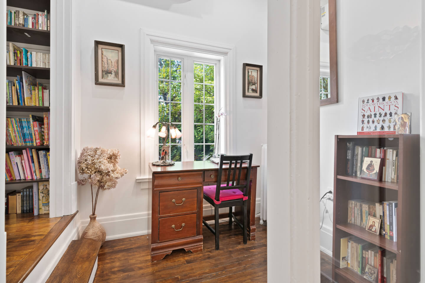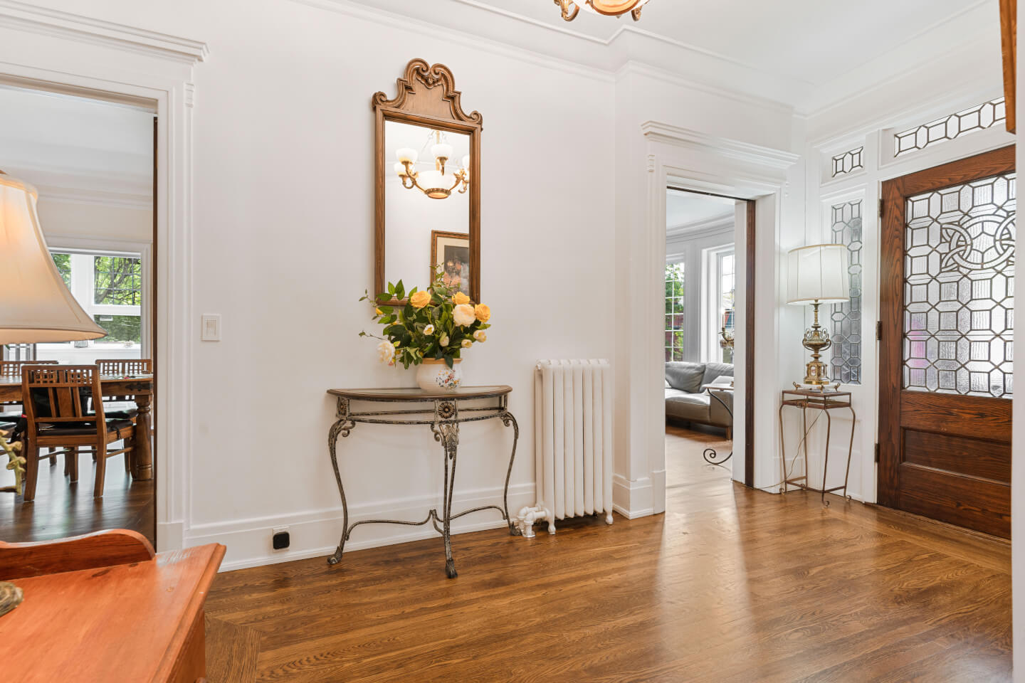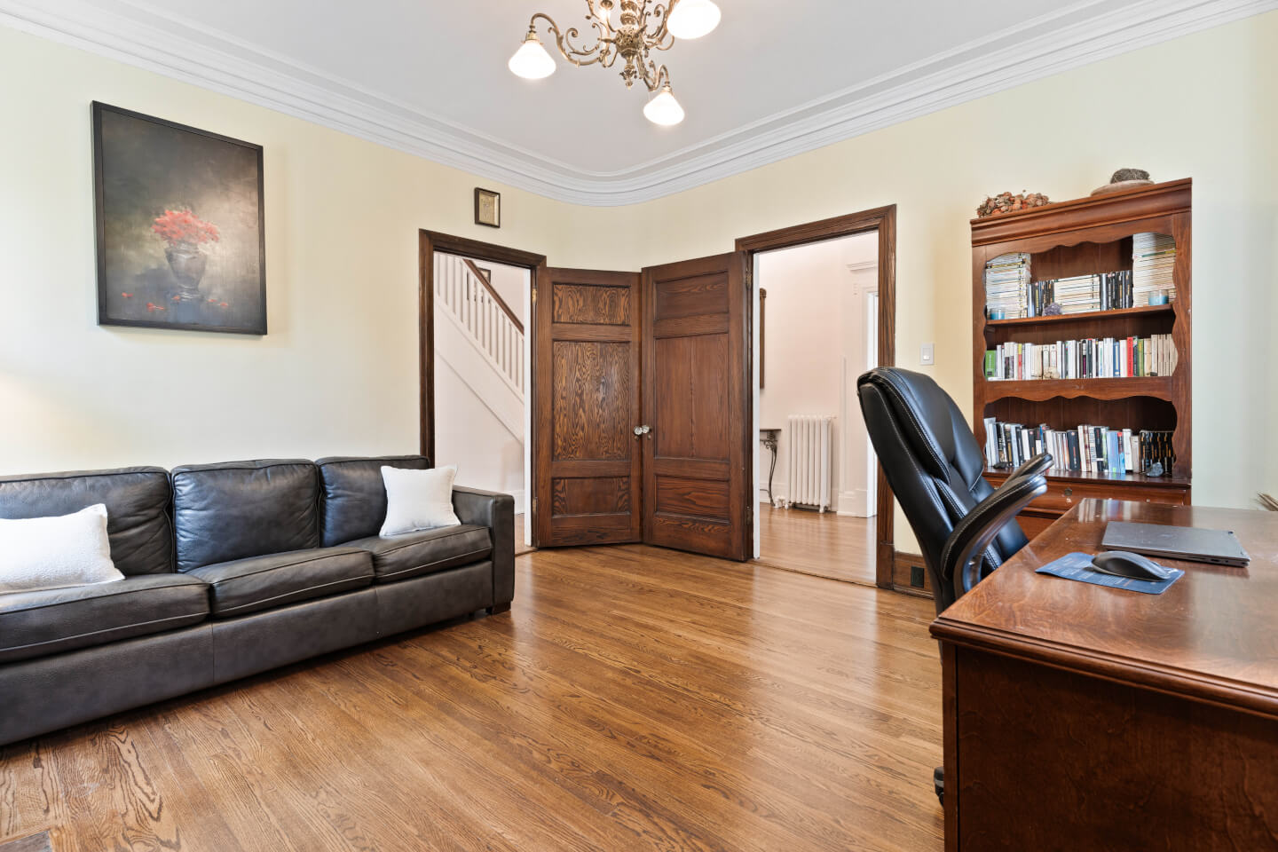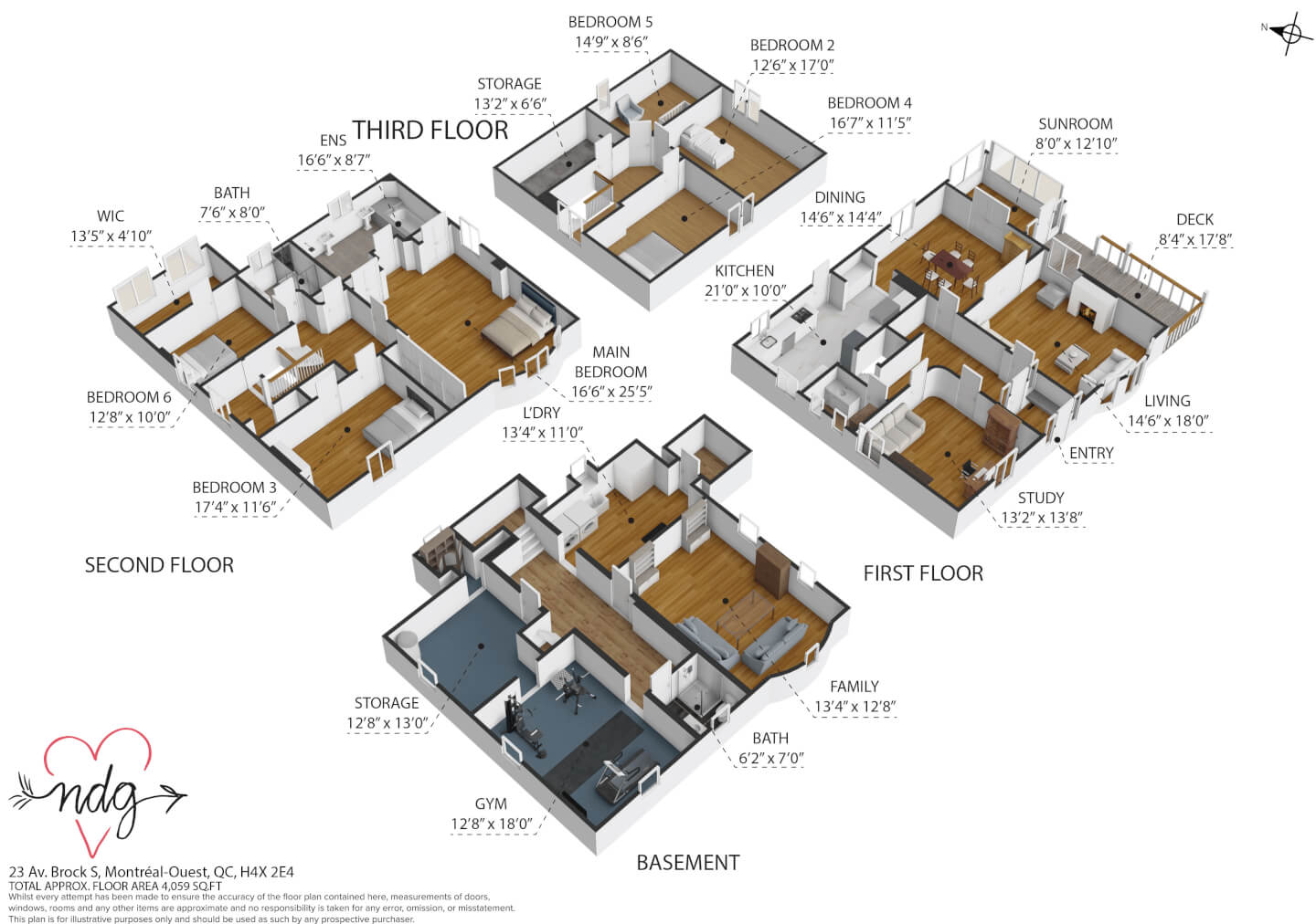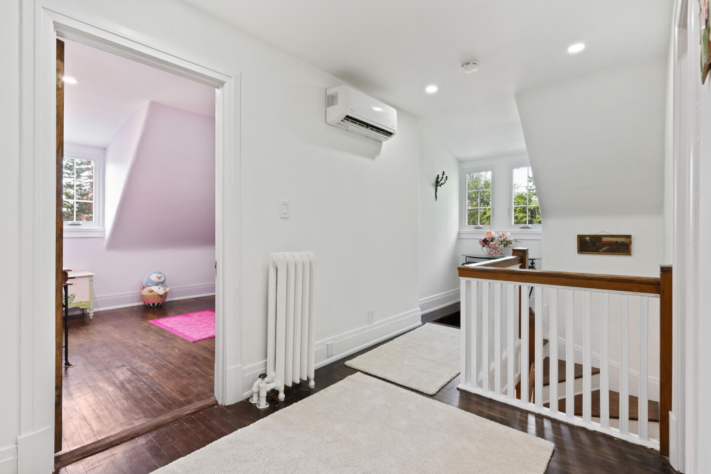 Nestled on a quiet street in an exceptional neighborhood, this elegant 3-storey detached home sits on a huge lot and blends classic charm with modern luxury. Completely renovated with impeccable taste and high-end finishes, it offers 6 spacious bedrooms, including a stunning primary suite with a luxurious ensuite, double vanity, and huge closets. The sun-filled living room flows into a formal dining area, while the renovated kitchen boasts quartz counters and ceramic flooring. A bright sunroom opens to a terrace and the expansive yard. The finished basement features a large family room, gym, and generous laundry room with a chute and storage.