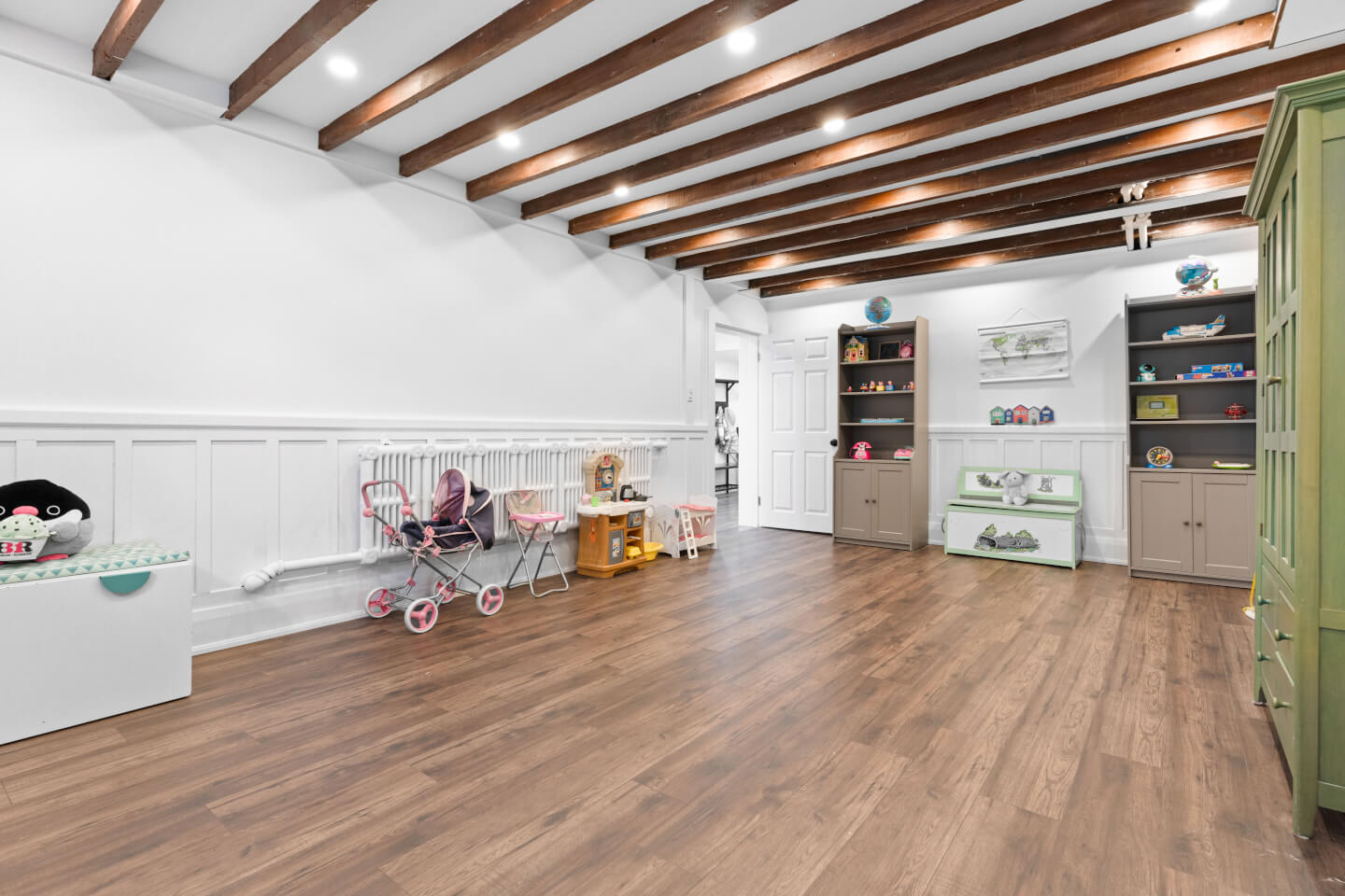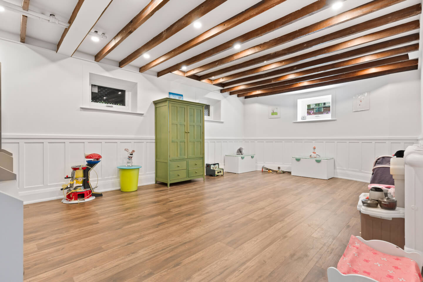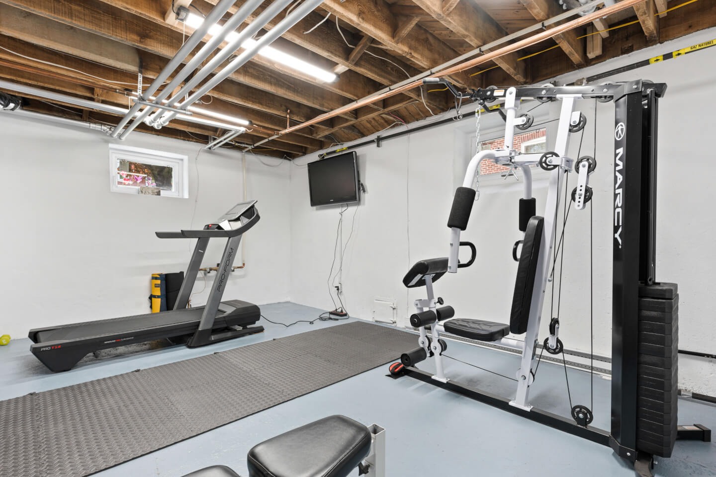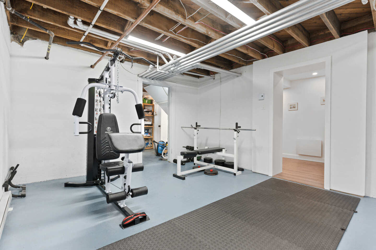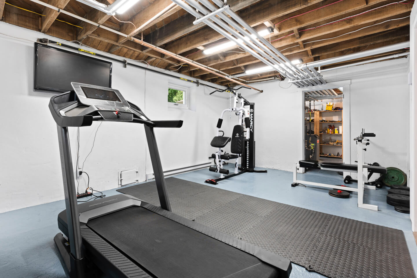Spacious family room Gym Bathroom Large laundry room with laundry chute and storage