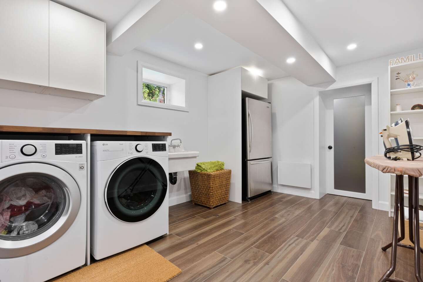 - Complete basement renovation including a concrete slab in the laundry room and family room, backwater valve, and staircase