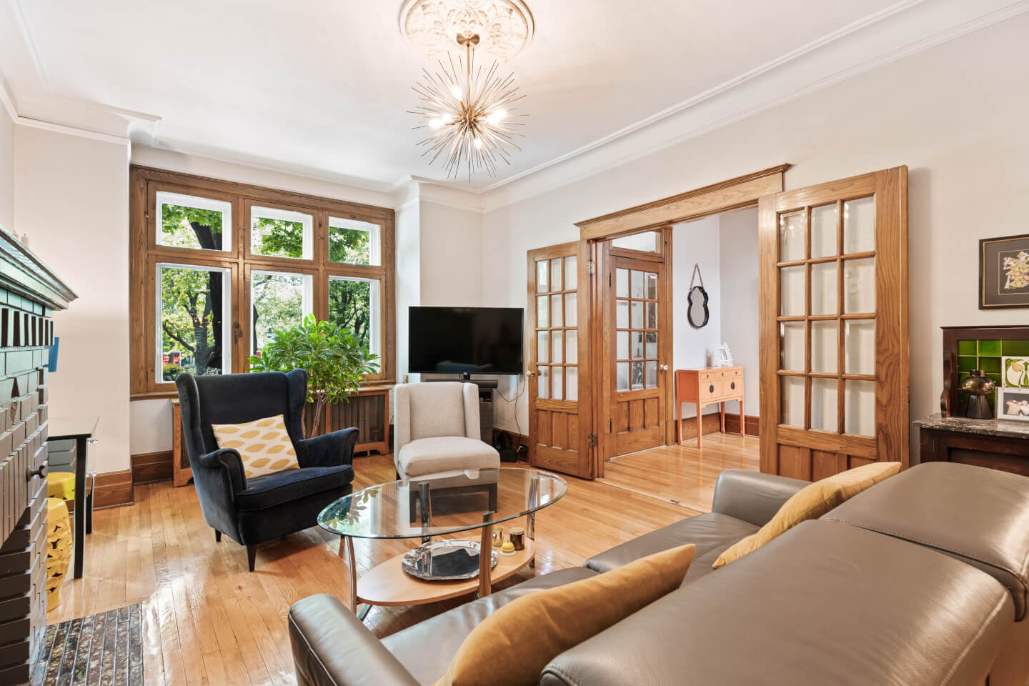 Living room - open to dining room, French doors