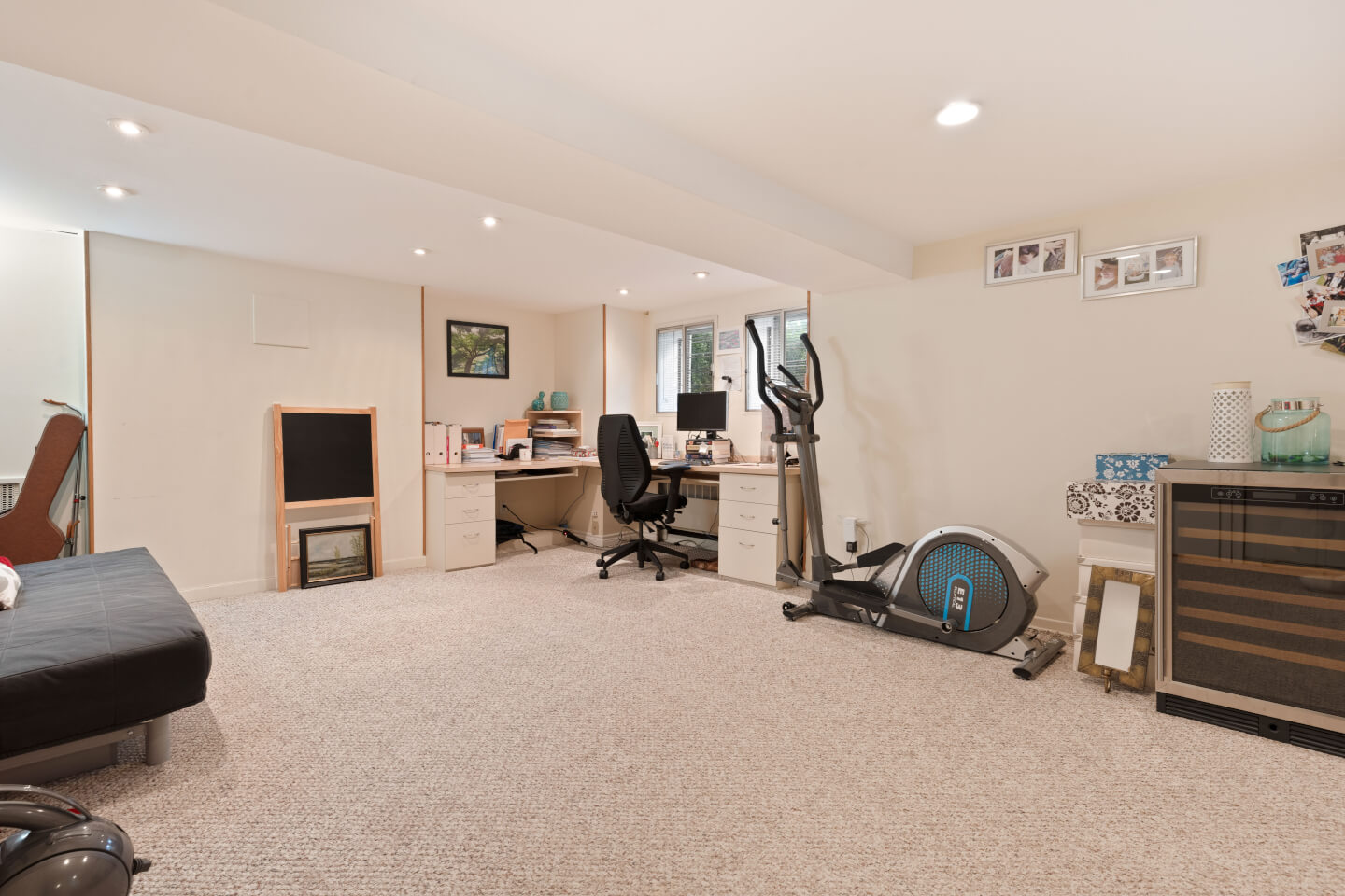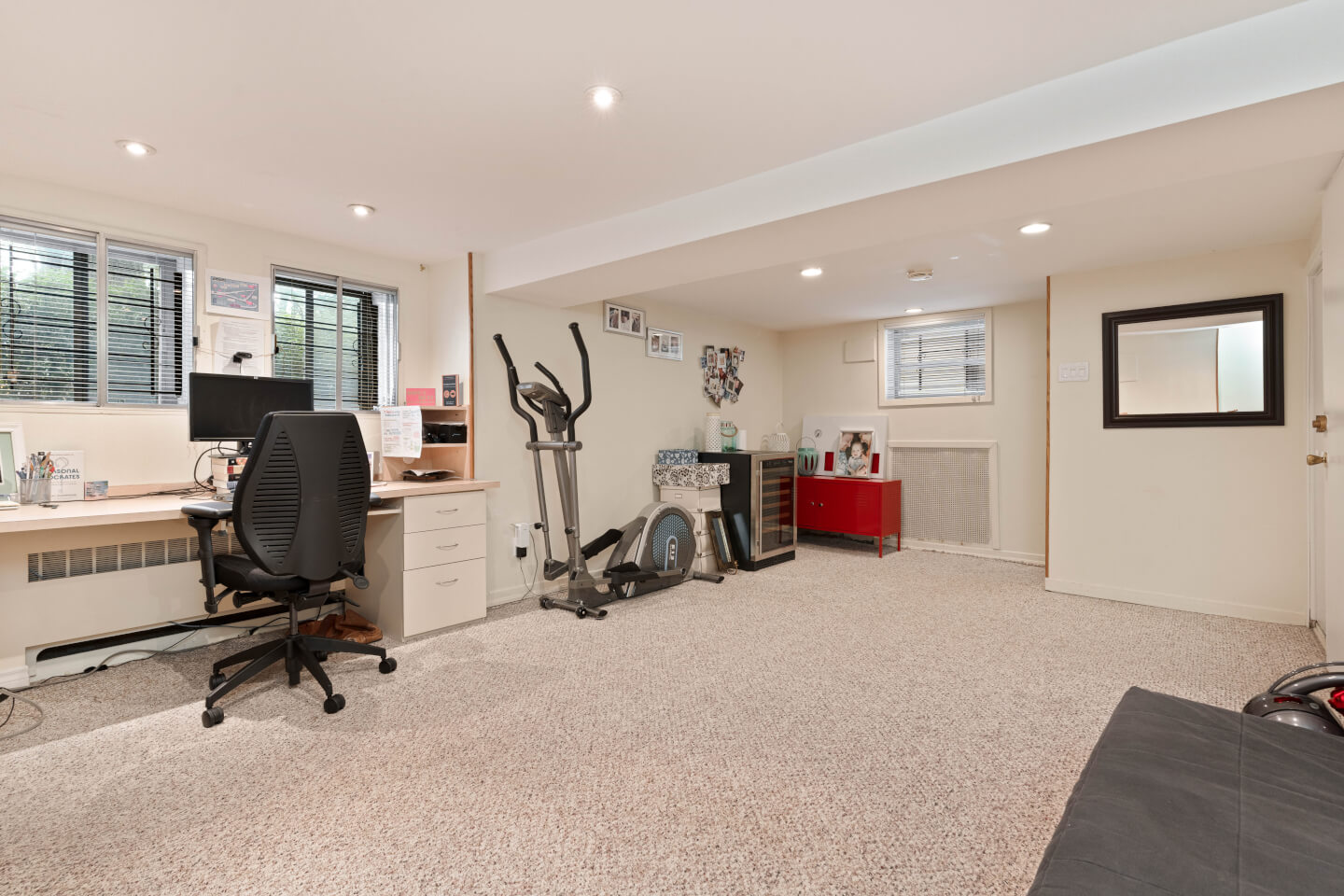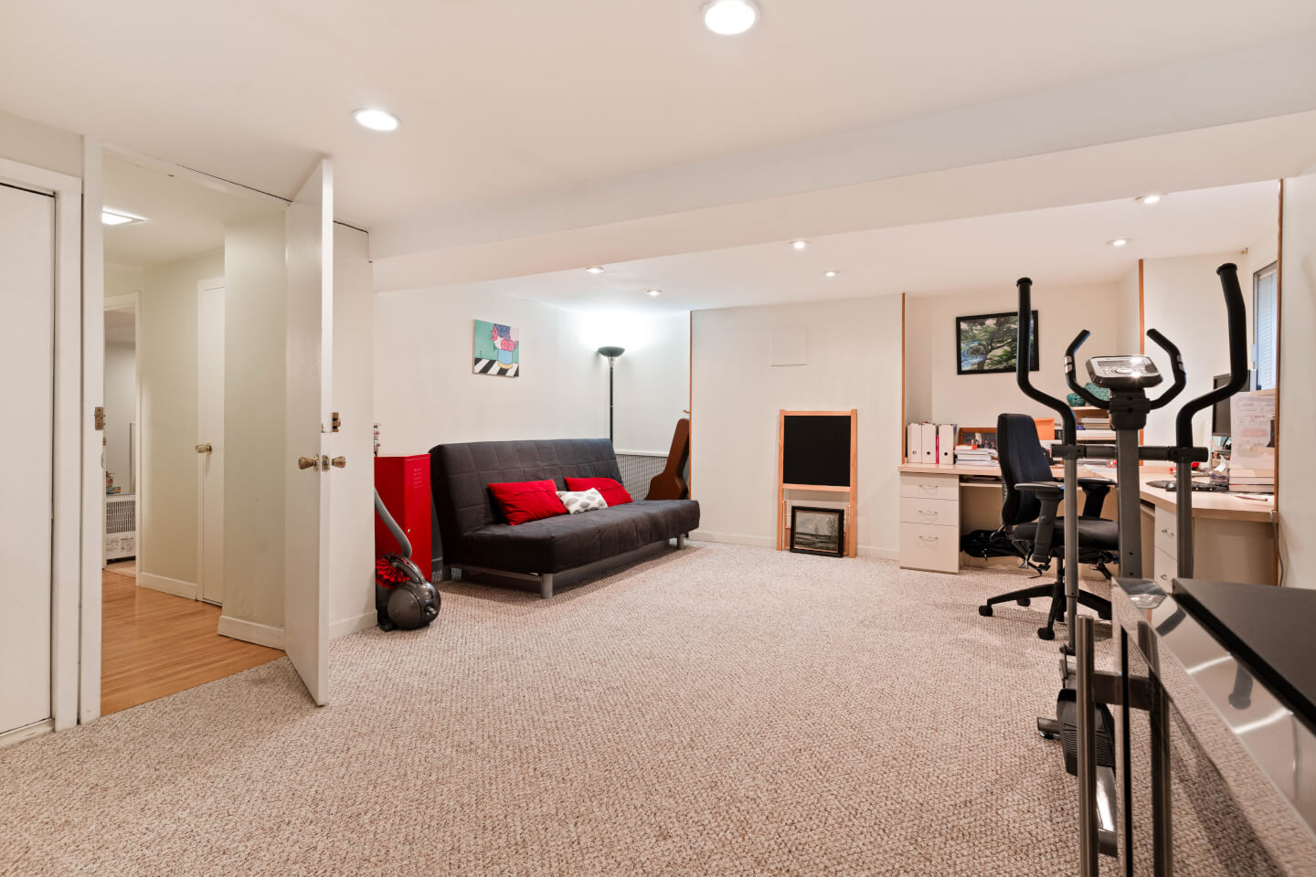 Finished basement, hardwood & carpet floor