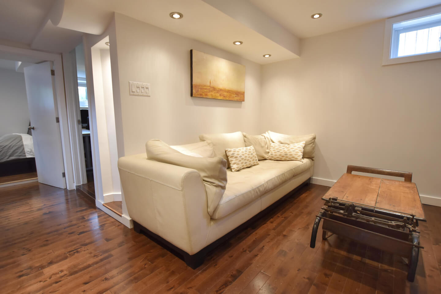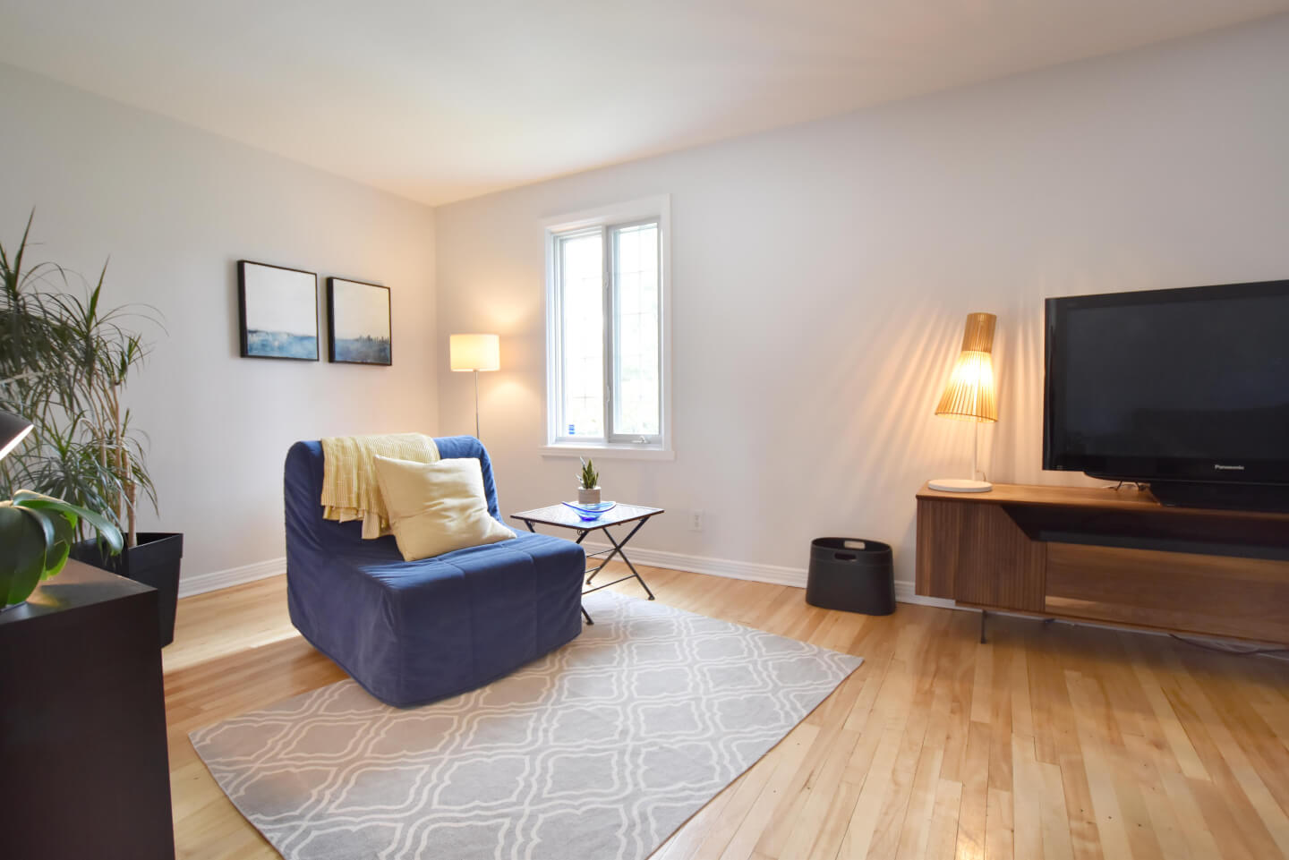 Salon à l’arrière avec vue sur le jardin et la piscine, installez-y votre porte patio