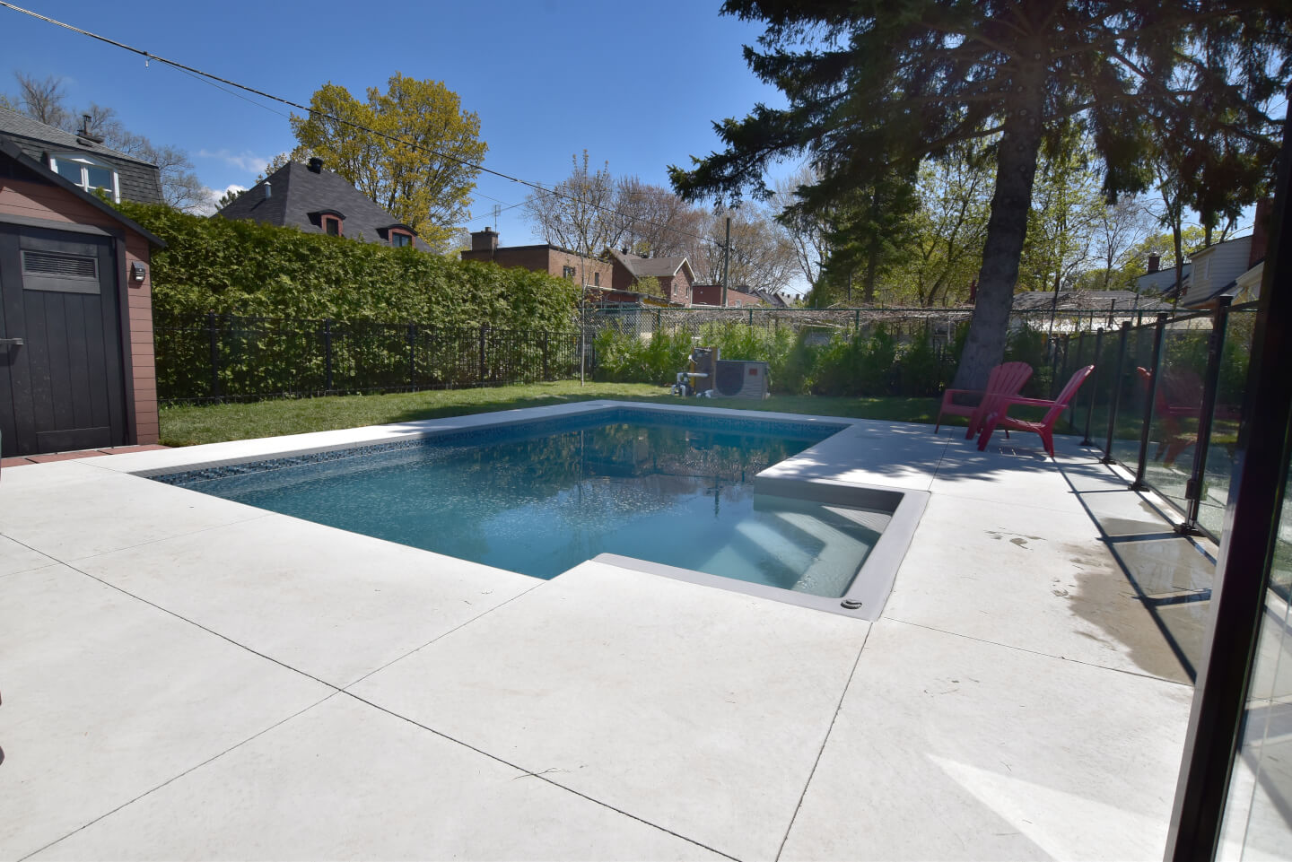 · Piscine d’eau salée Trévi 2018, creusée, chauffée, clôture de verre trempé, jardin paysagé