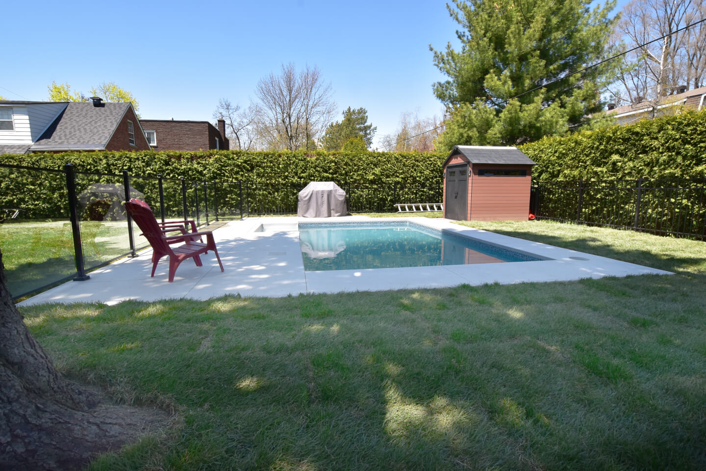 Inclusions : Cuisinière, lave-vaisselle, accessoires de piscine, cabanon, tous tels quels