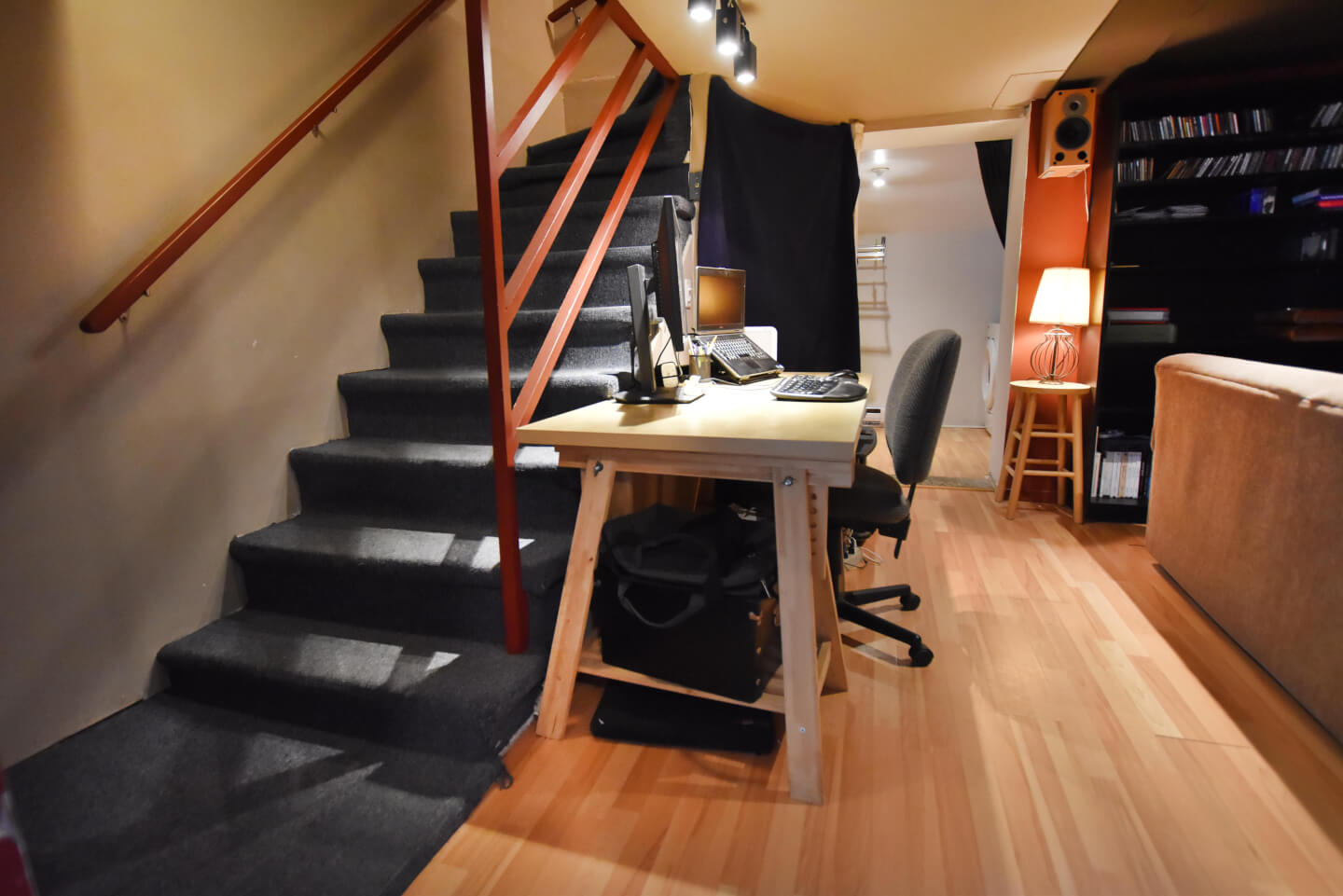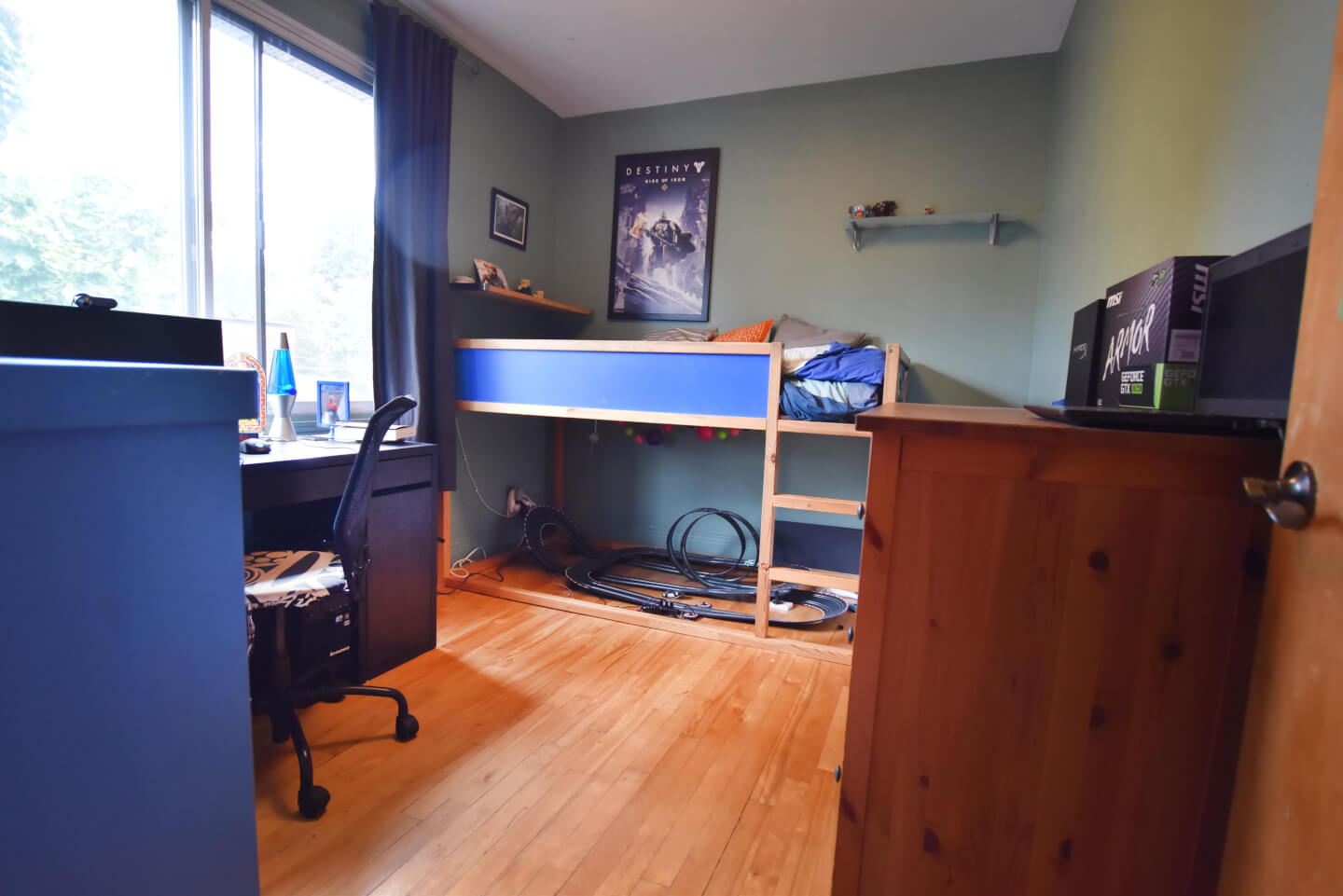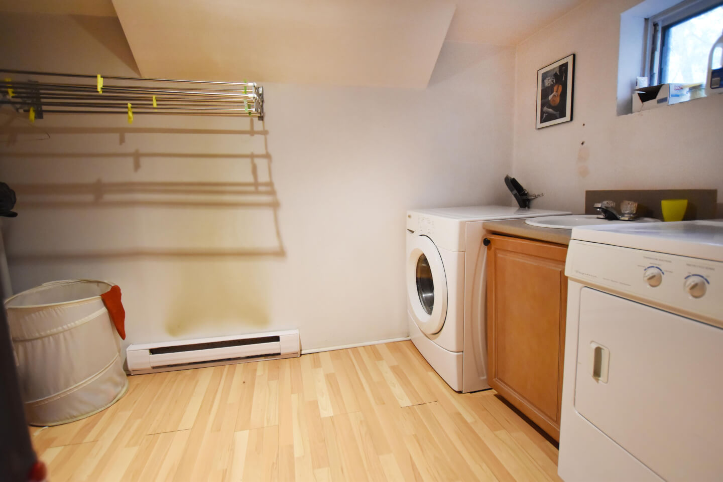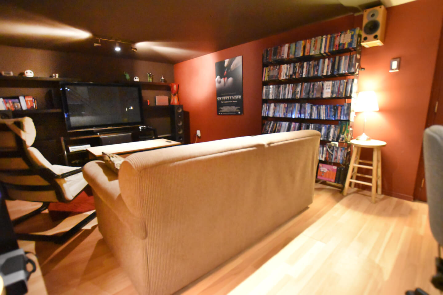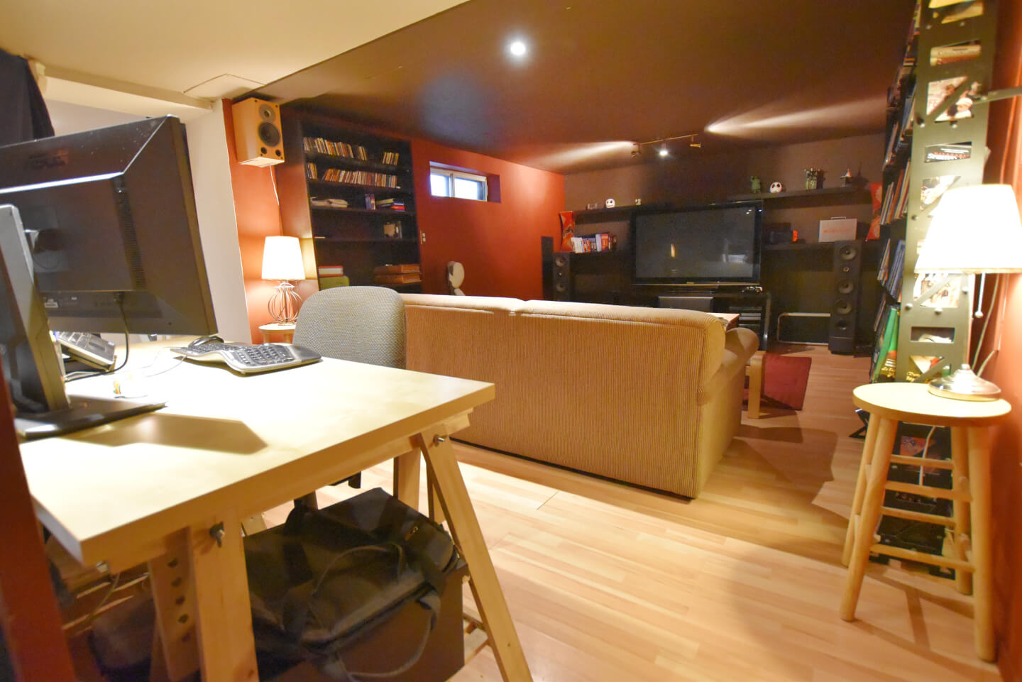 Sous-sol fini, plancher de bois flottant Hauteur des plafonds 6’-4’’ Salle familiale Lavoir et rangement