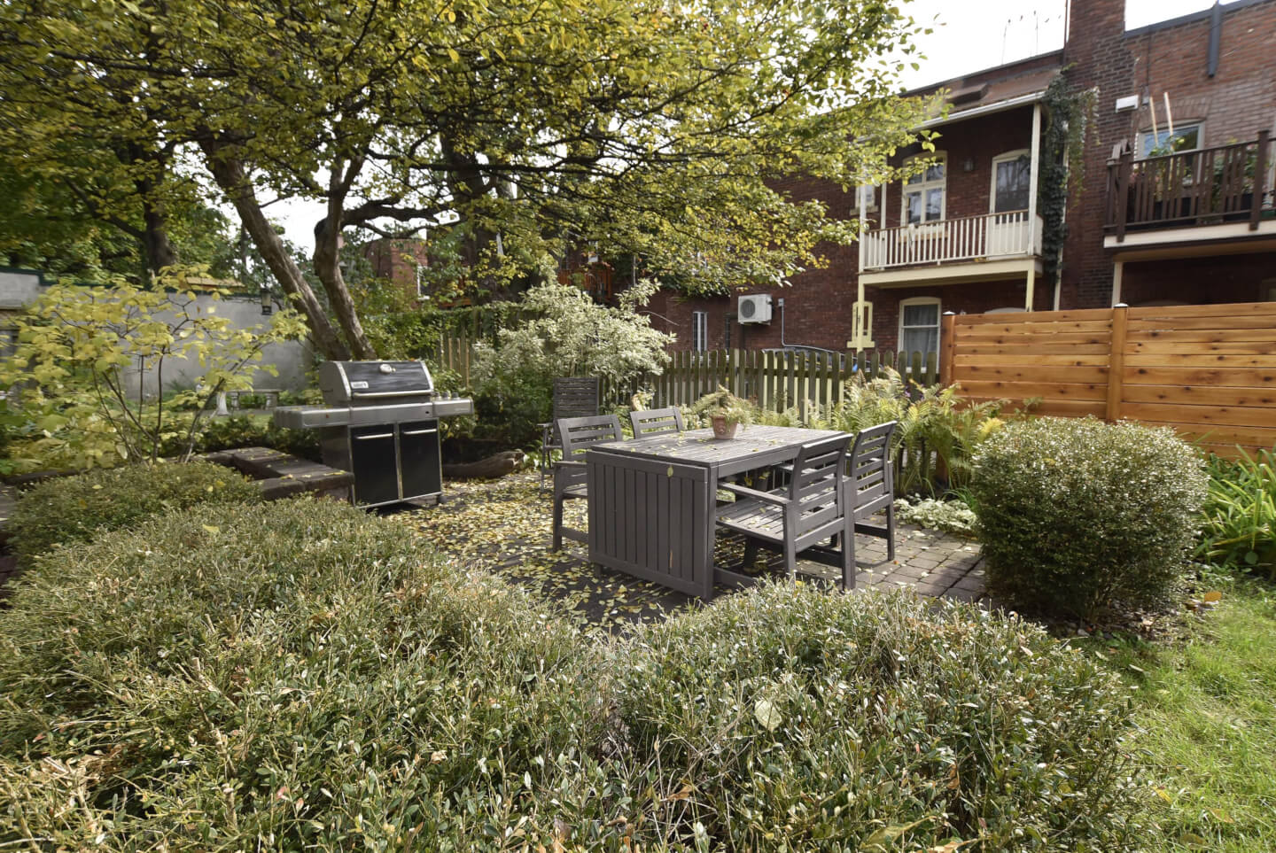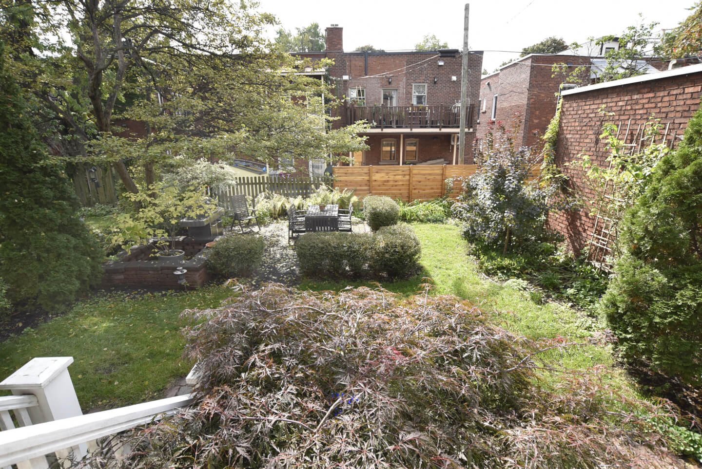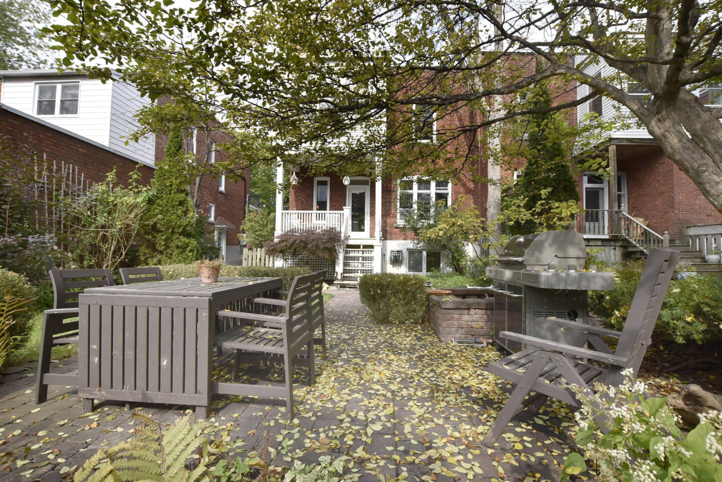 Terrasse menant au grand jardin du côté ouest *rempli de vivaces