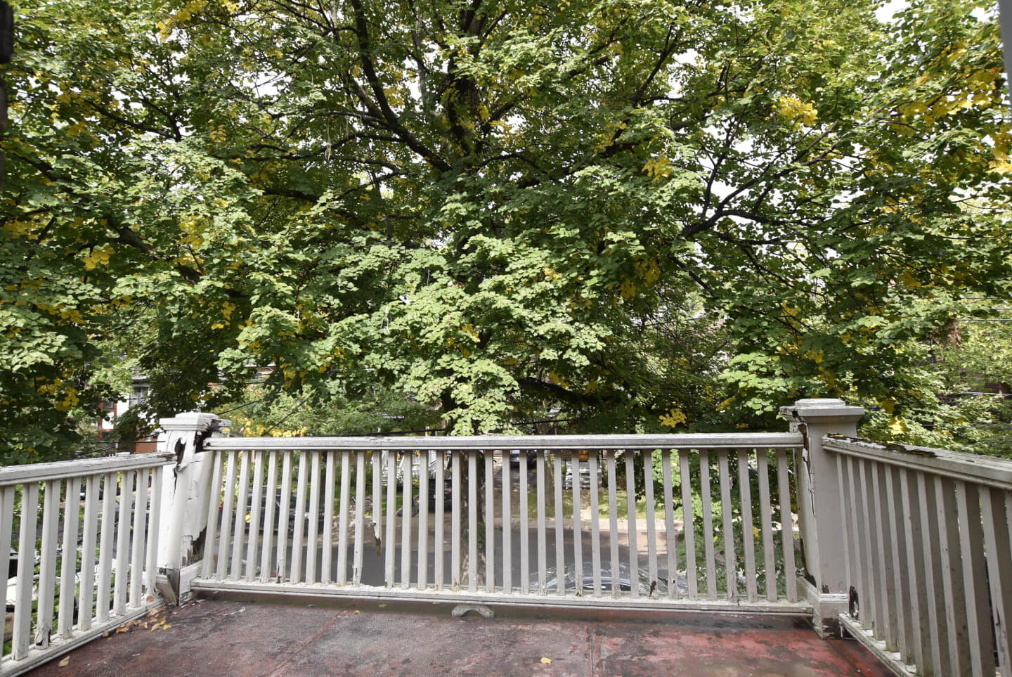 Visible! Les balcons avant et arrière seront à refaire au complet, ceci à la charge des prochains acheteurs.