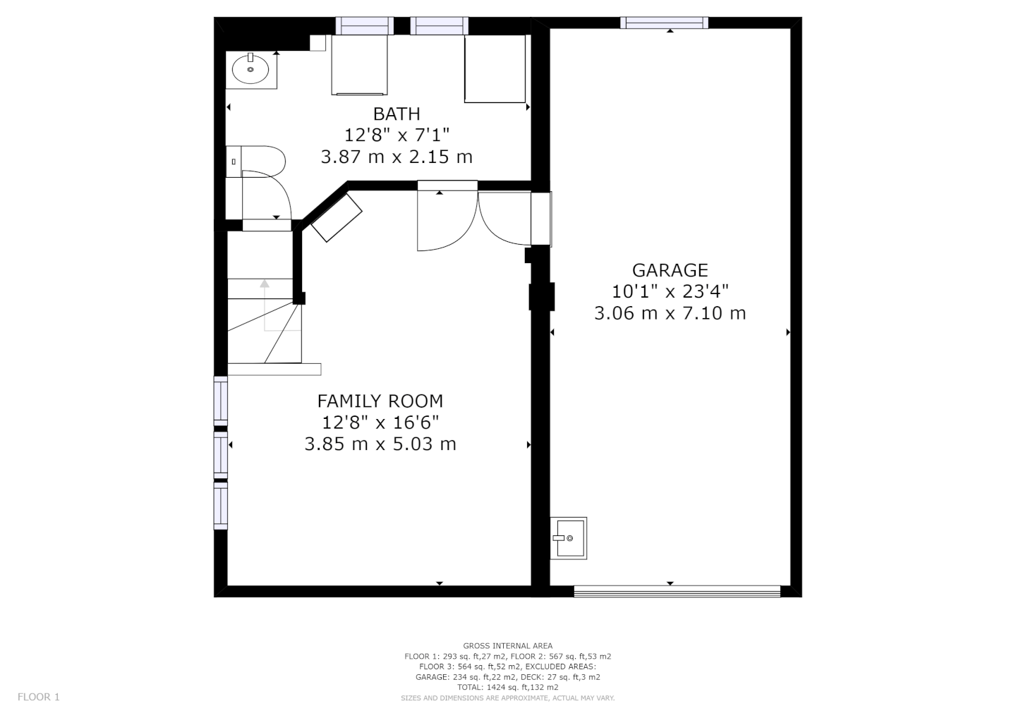 Salle familiale sous-sol, salle d’eau / lavoir, garage + stationnement.