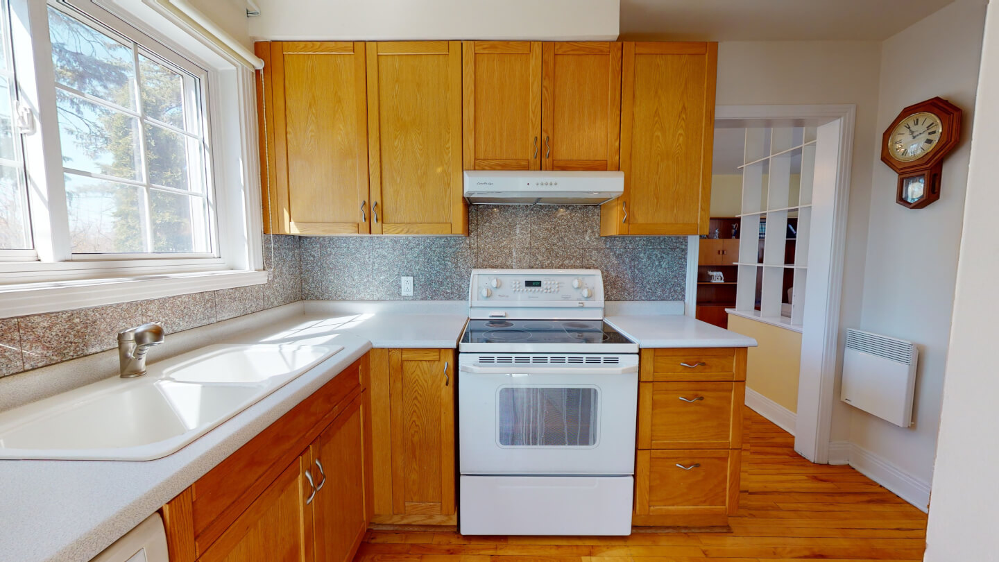 Cuisine 2005 impeccable, armoire de chêne, et plancher bois