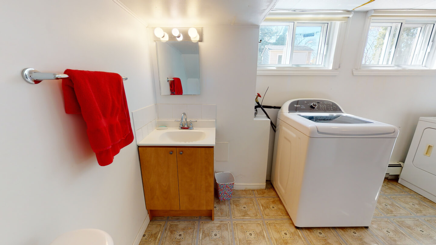 Sous-sol fini, avec plancher de bois flottant Hauteur des plafonds 7’-1’’ Salle familiale Salle d’eau et Lavoir combiné