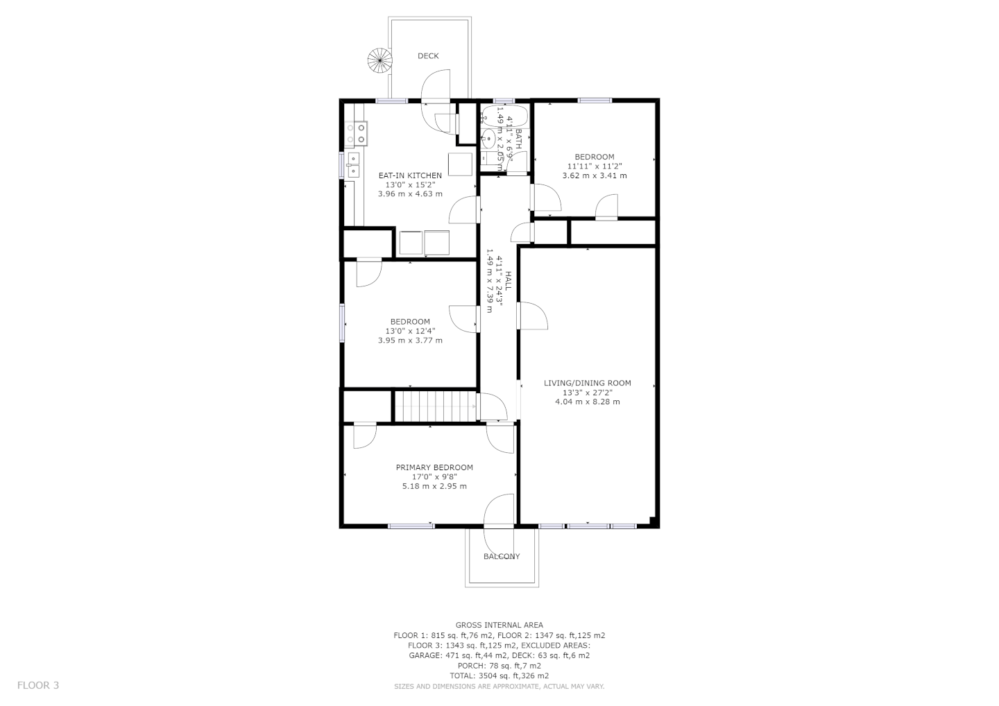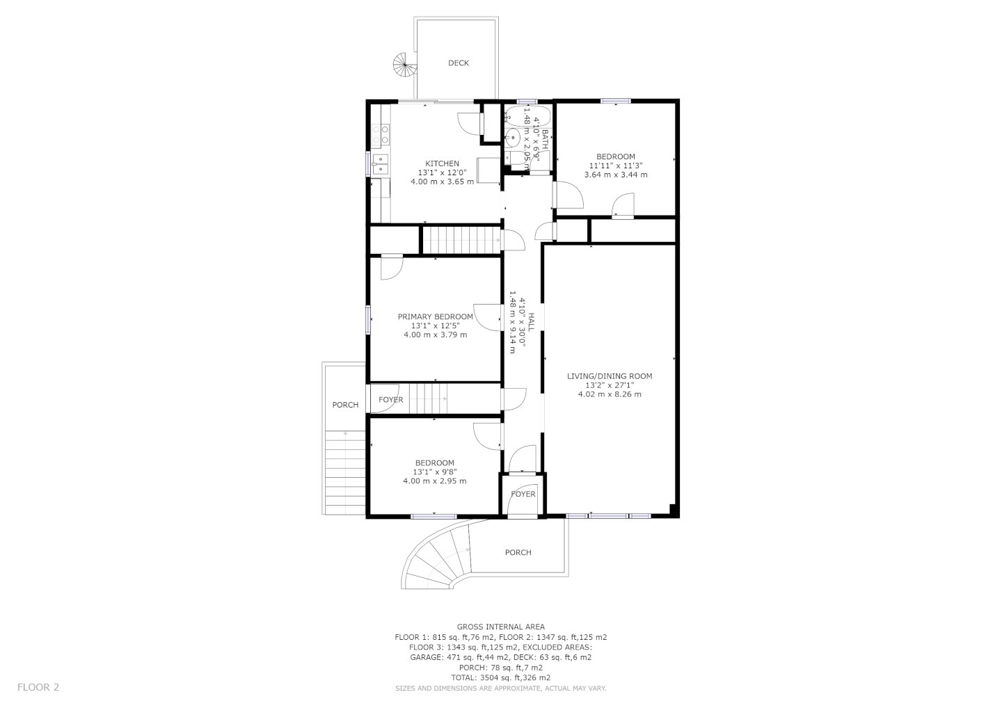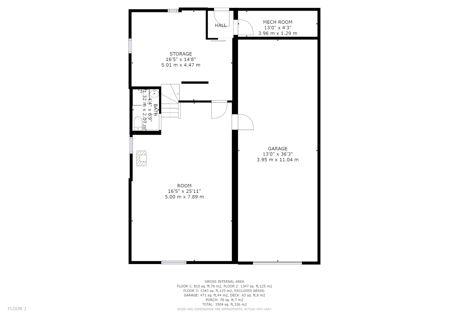 Total des 3 étages =383.55 m2 au (4126 pi2) * INCLUANT le garage