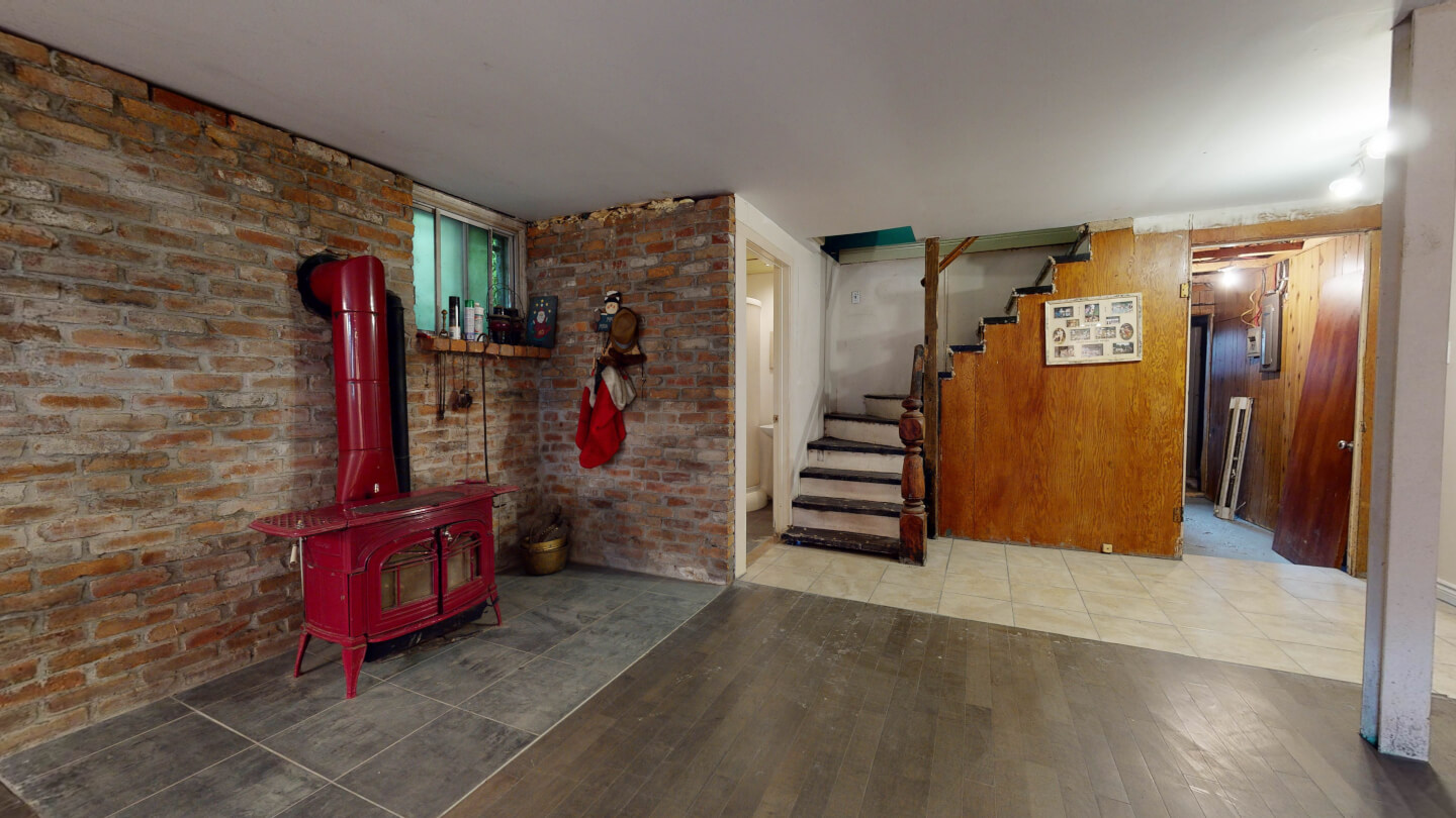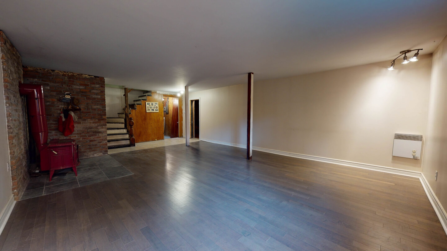 Sous-sol fini, avec plancher flottant Hauteur des plafonds 7’-3’’ Grande Salle familiale avec foyer à combustion lente Salle de bains/ douche
