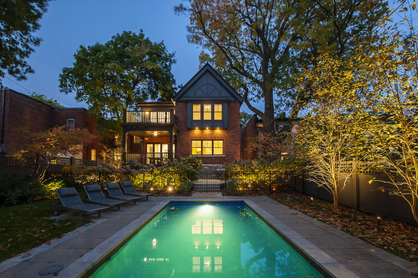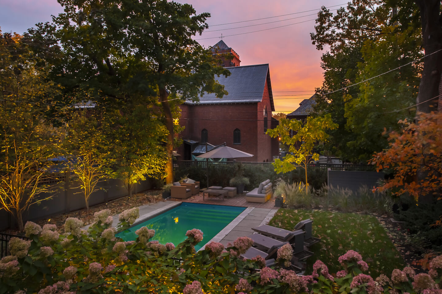 Aménagement paysager par Steward Webster Design, piscine, éclairage, irrigation