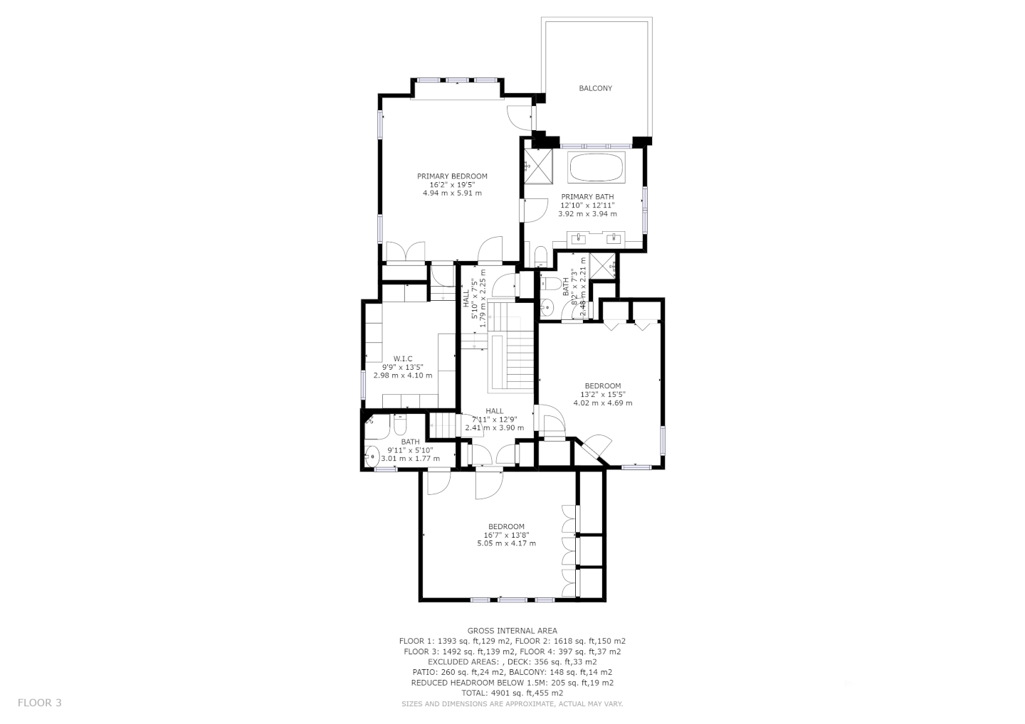 3ième chambre à coucher, Ensuite, balcon avant, garde-robe mur à mur