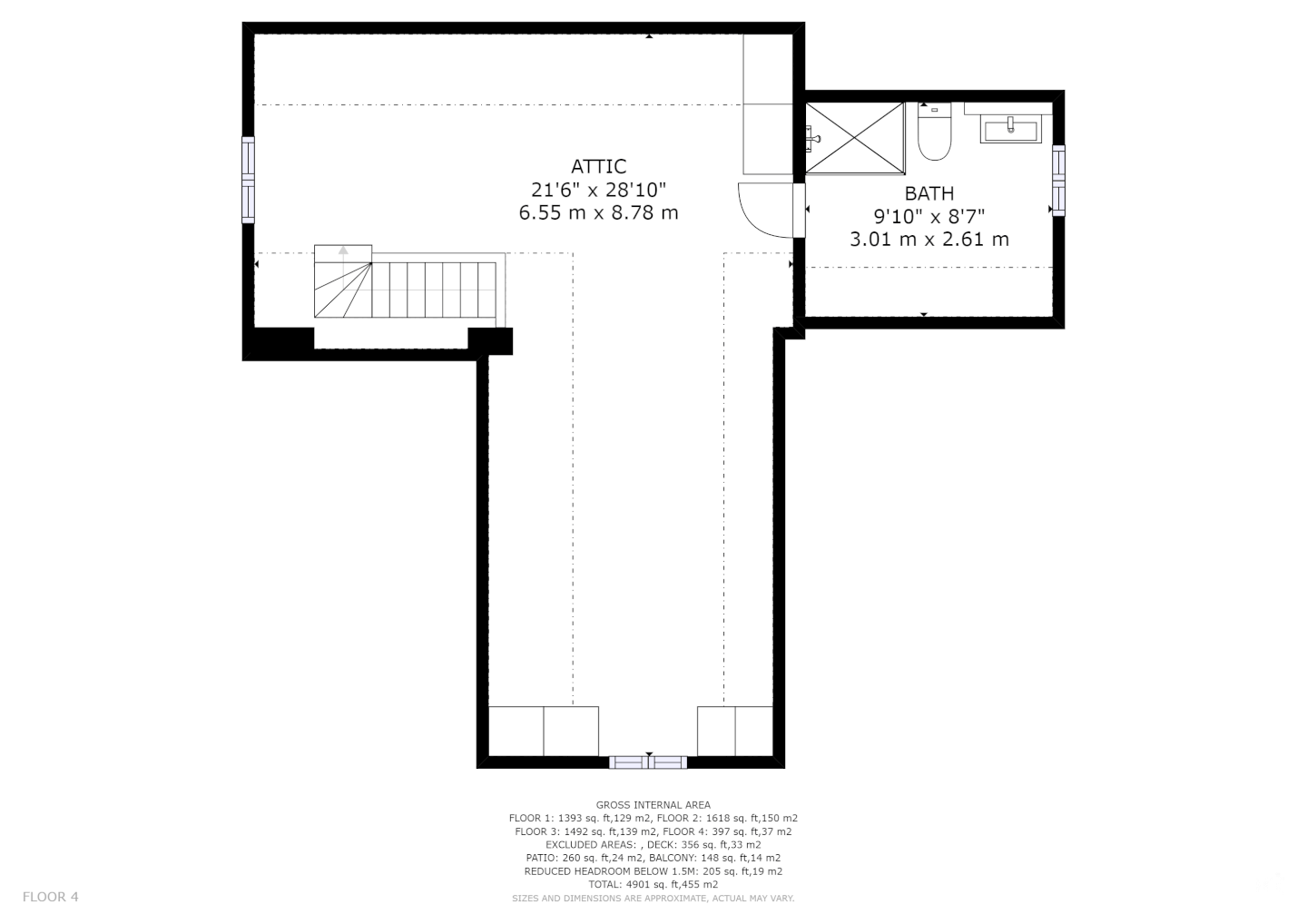 Hauteur des plafonds 7’-5’’ (irrégulier)