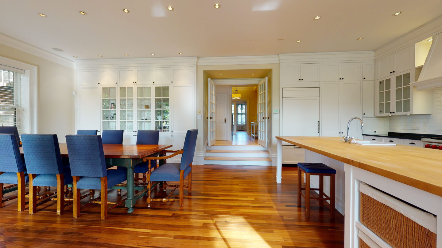 Tous les luminaires suspendus, les stores aux fenêtres, la table de cuisine, tous tels quels