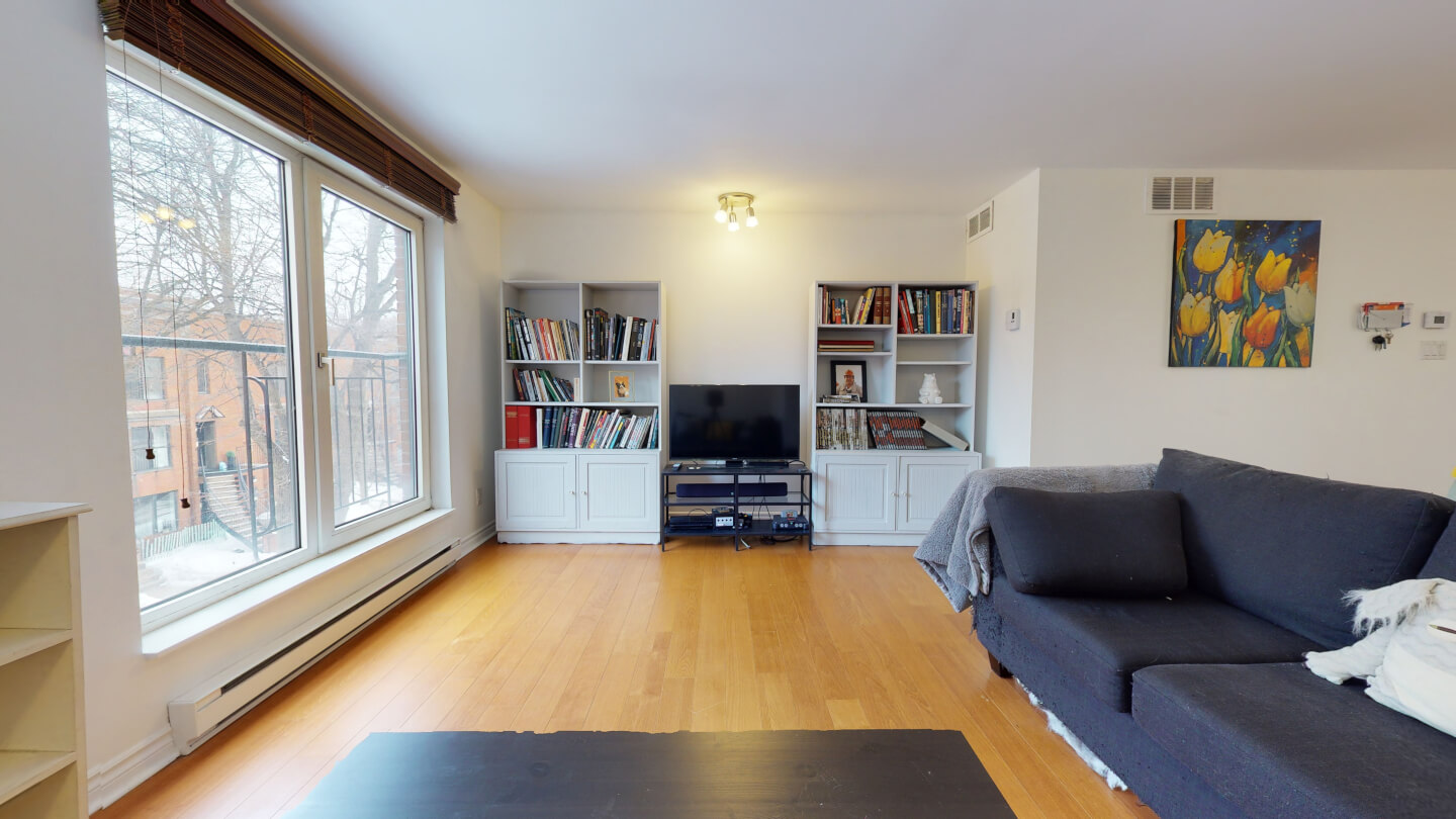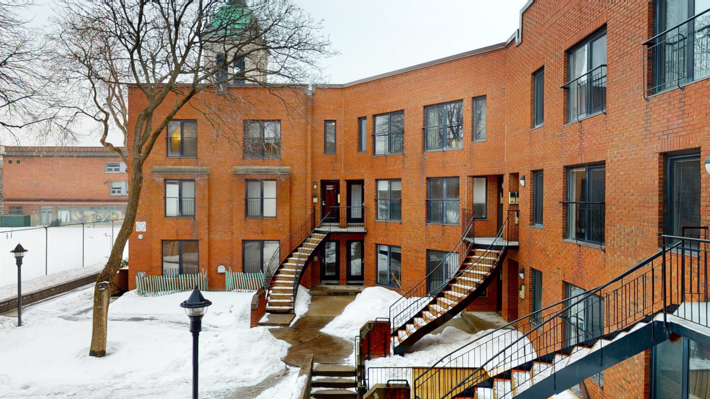 LUMINOSITÉ EXCEPTIONNELLE, ce condo de 3 chambres à coucher est situé en retrait de la rue sur une cour intérieure tranquille.