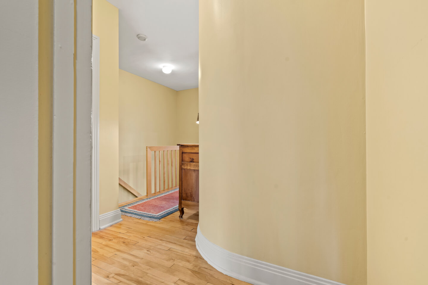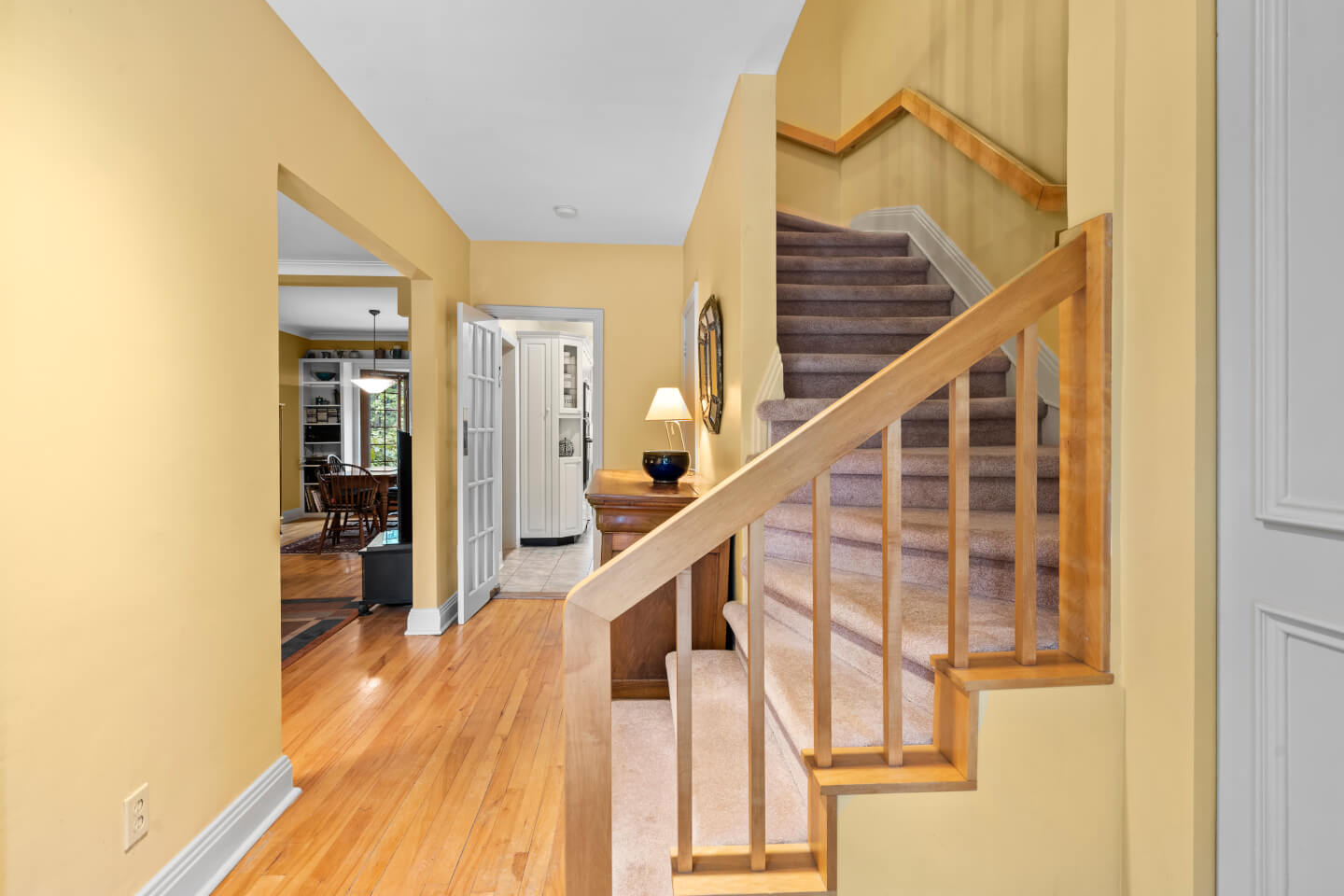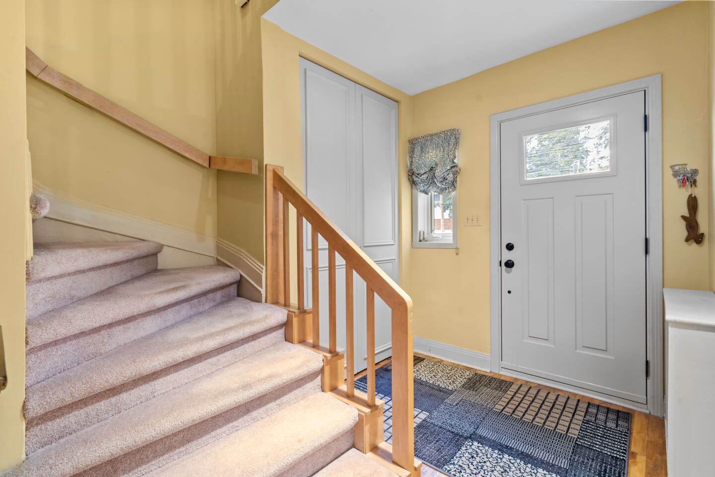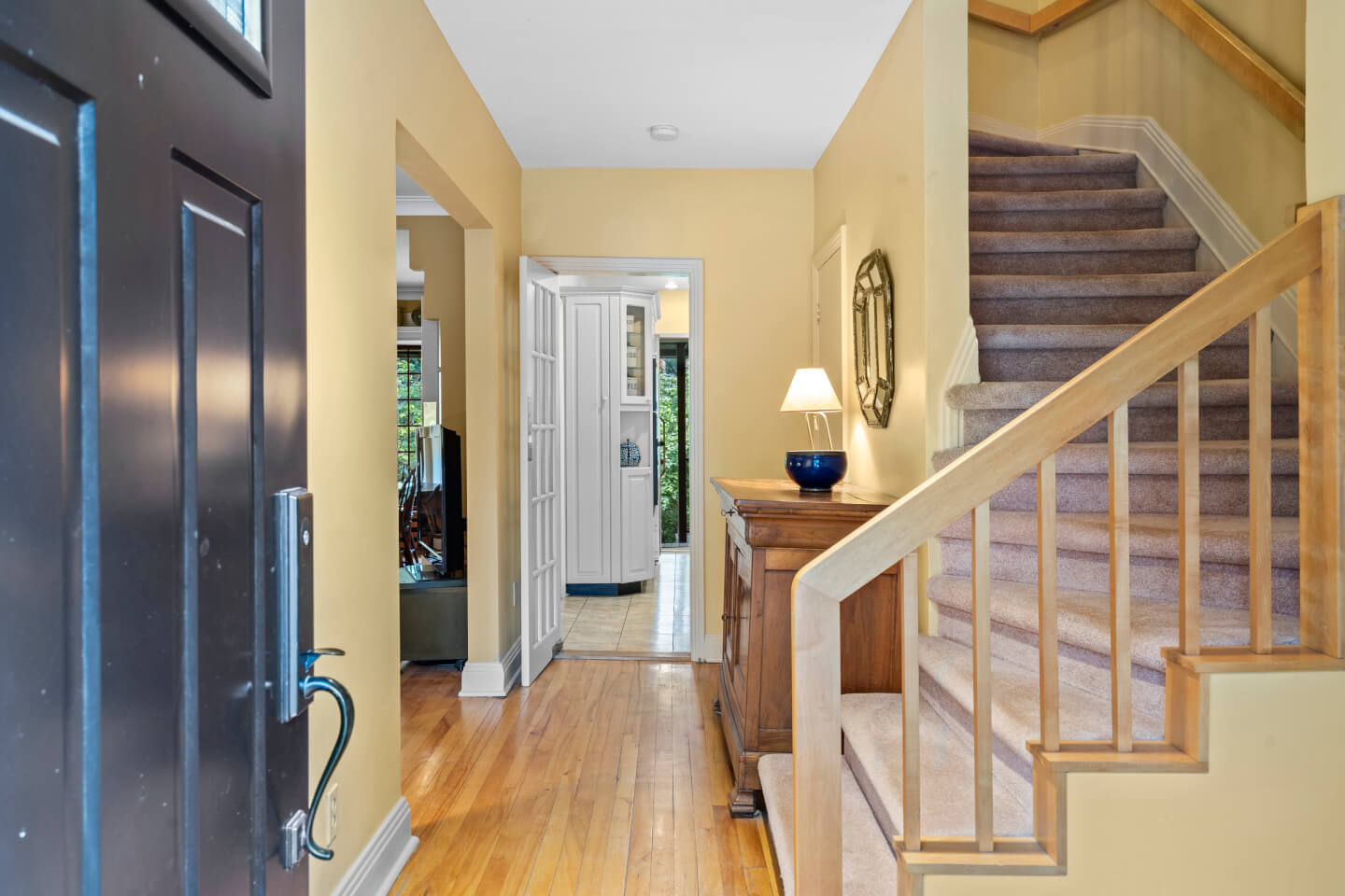 Hall d’entrée à plan ouvert sur l’escalier avec grand placard