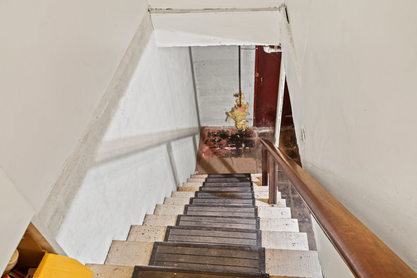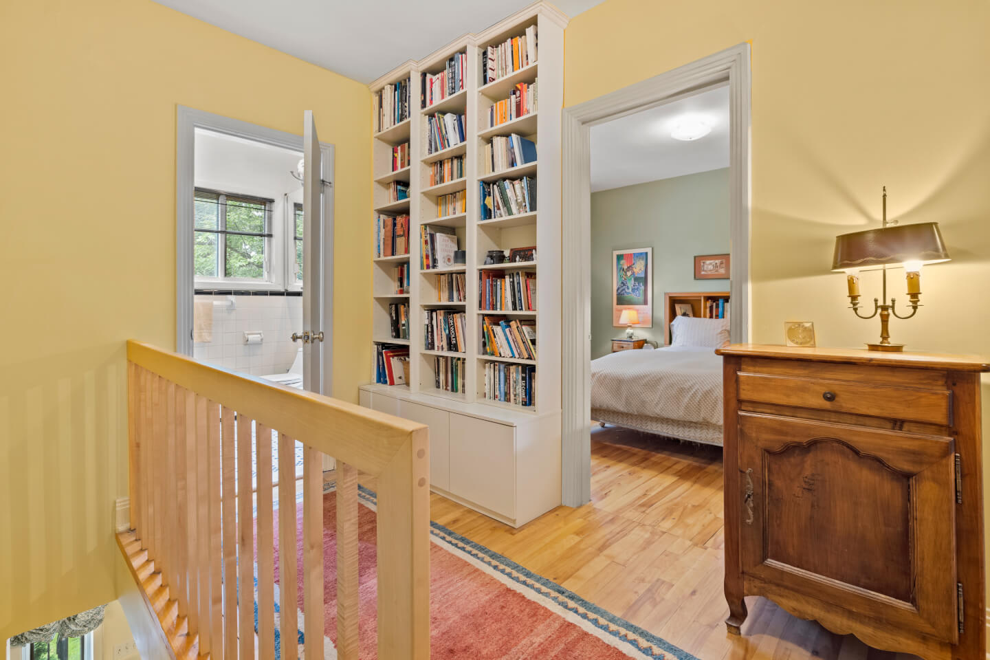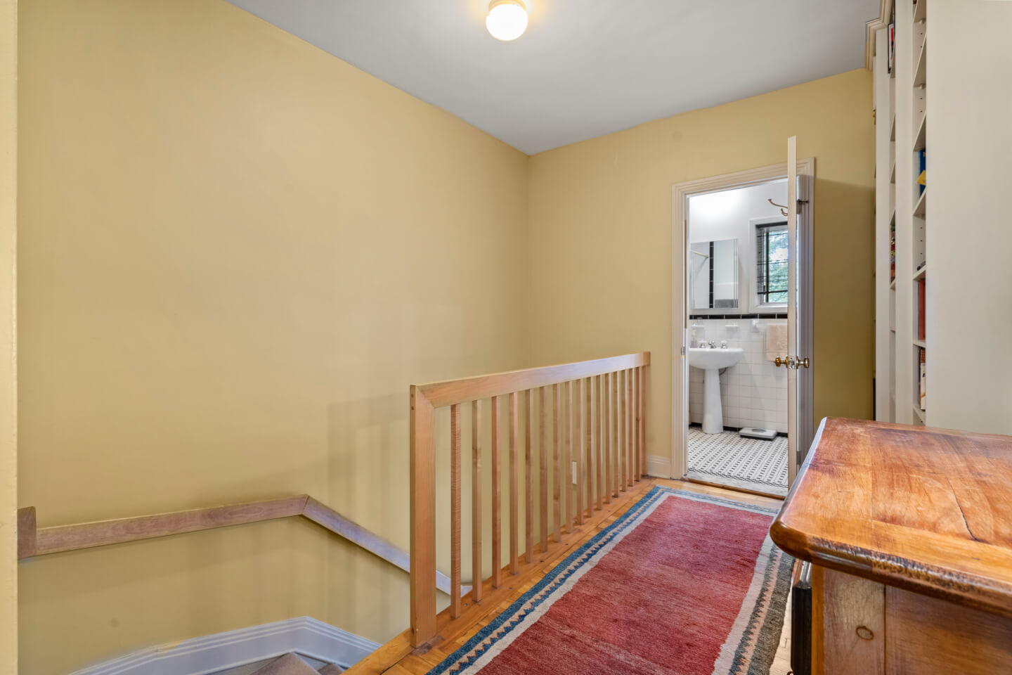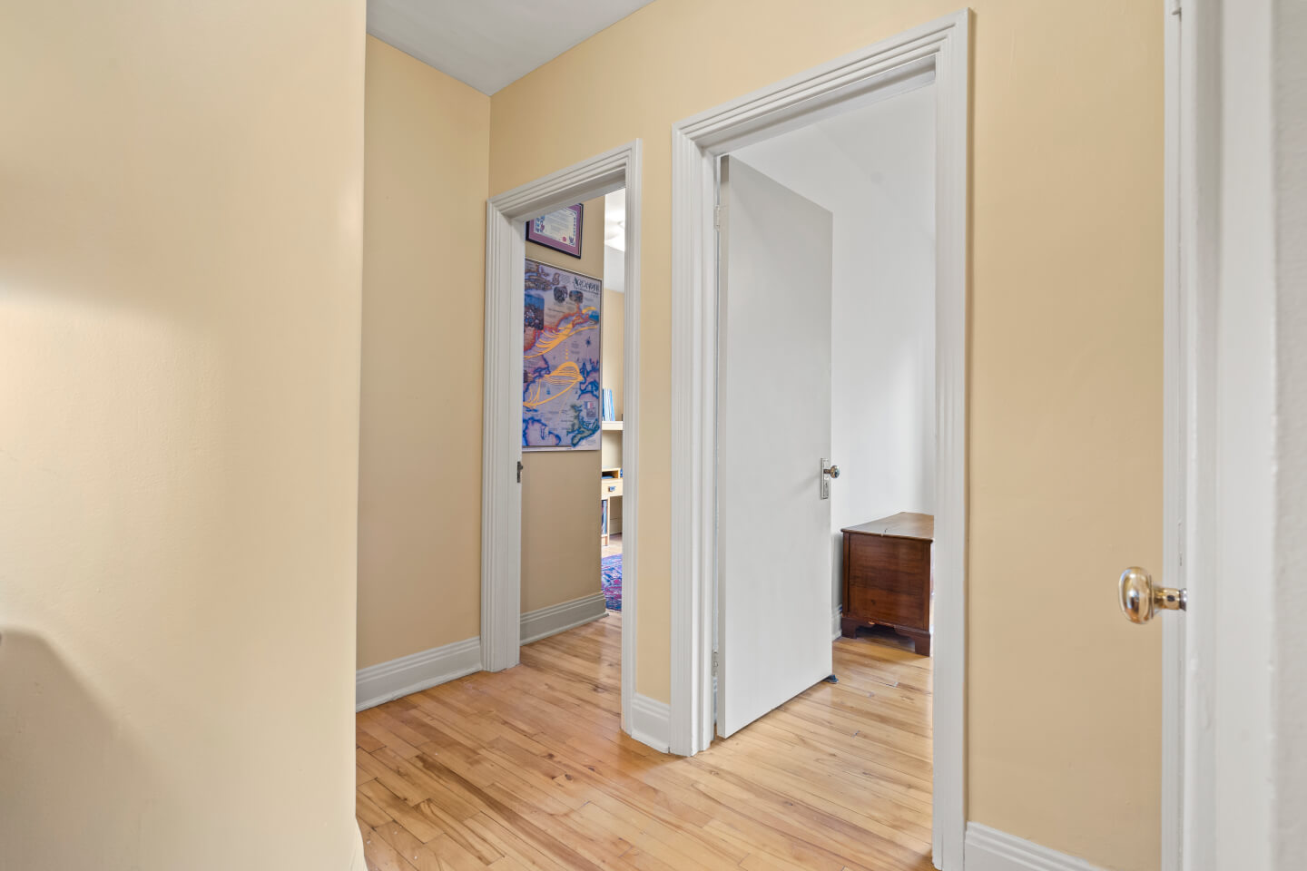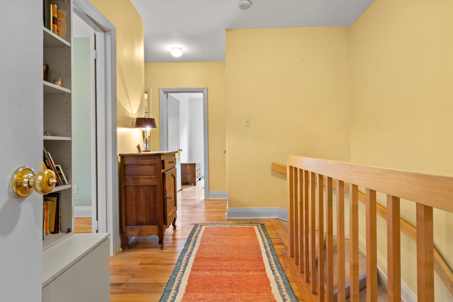 Hall d’entrée à plan ouvert sur l’escalier avec grand placard