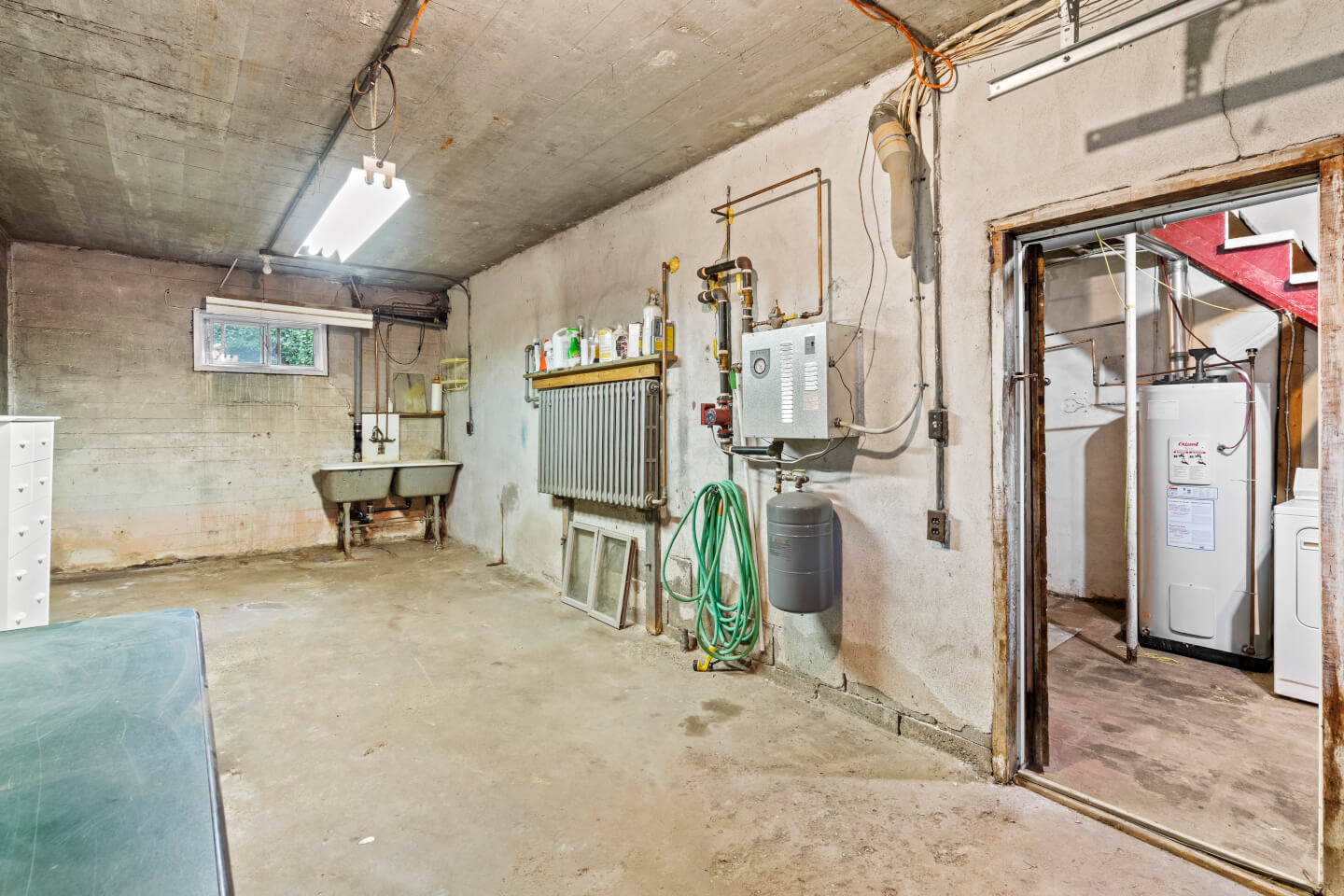 Sous-sol non fini, plancher de béton Hauteur des plafonds 8’-3’’ Espace Salle familiale Salle d’eau Lavoir et rangement Accès intérieur au Garage (2 voitures en Tandem) Hauteur des plafonds 8’-6’’