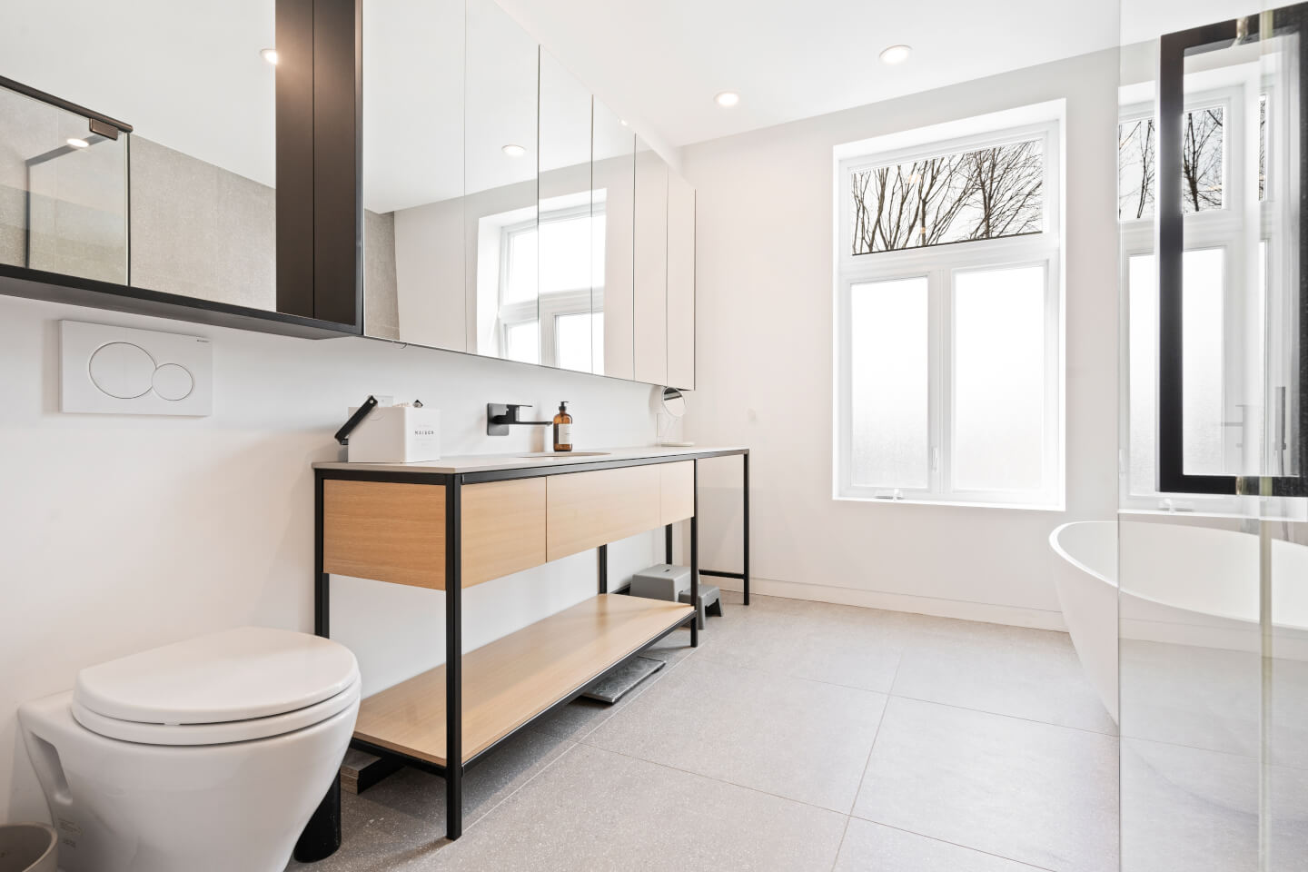 Hors du temps et résolument moderne, son enviable RDC aux aires habitables ouvertes mise sur les jeux de lumière aux fenestrations panoramiques offre une cuisine chic aux lignes modernes et pures harmonisant une grande terrasse, aménagement paysagé et sa piscine au sel.