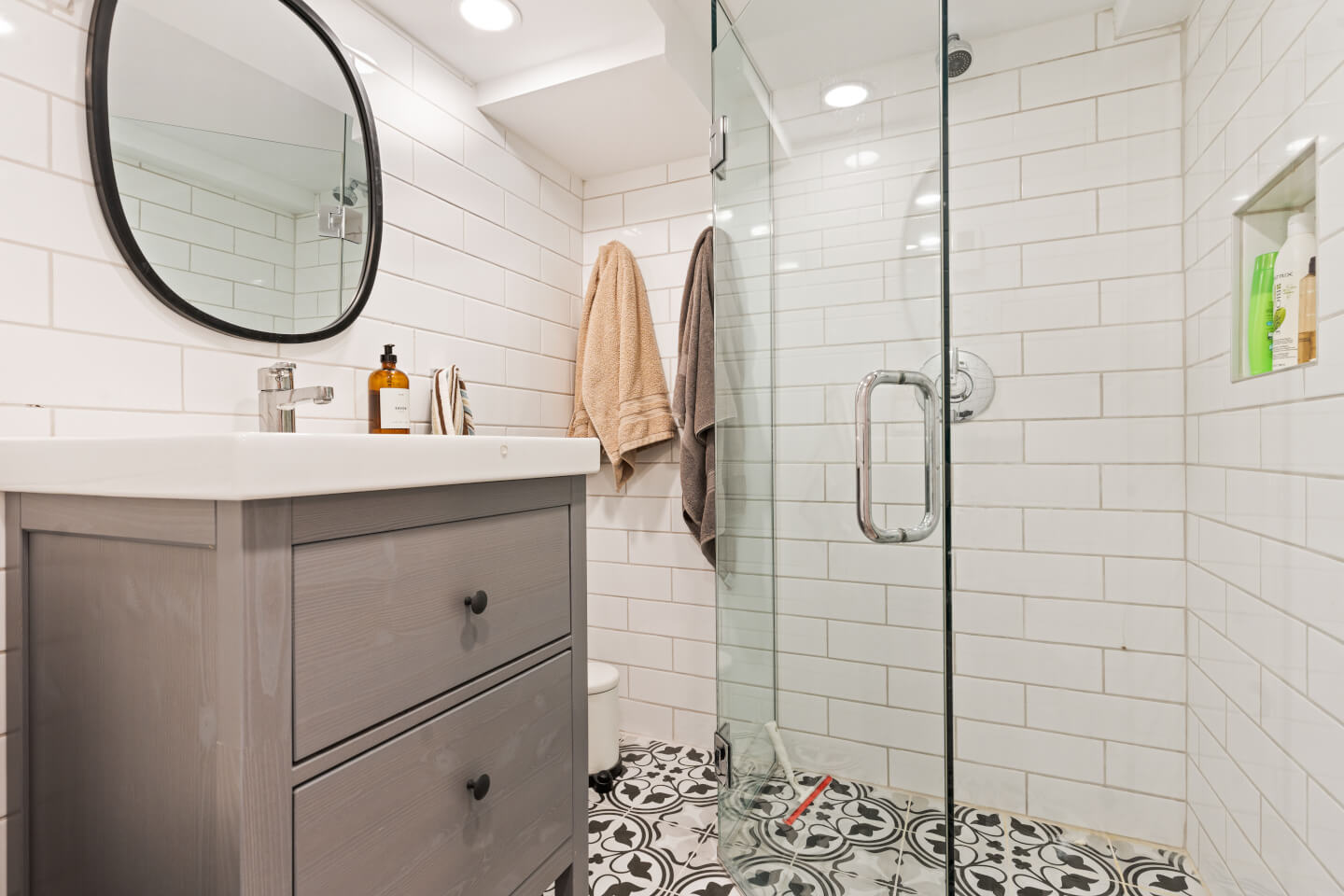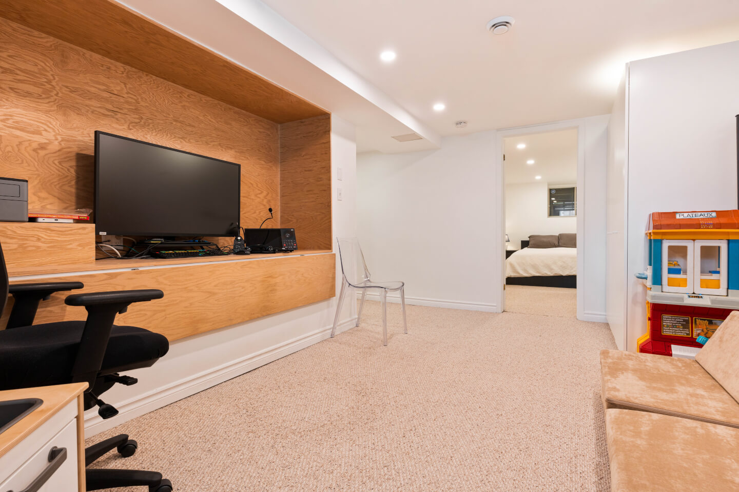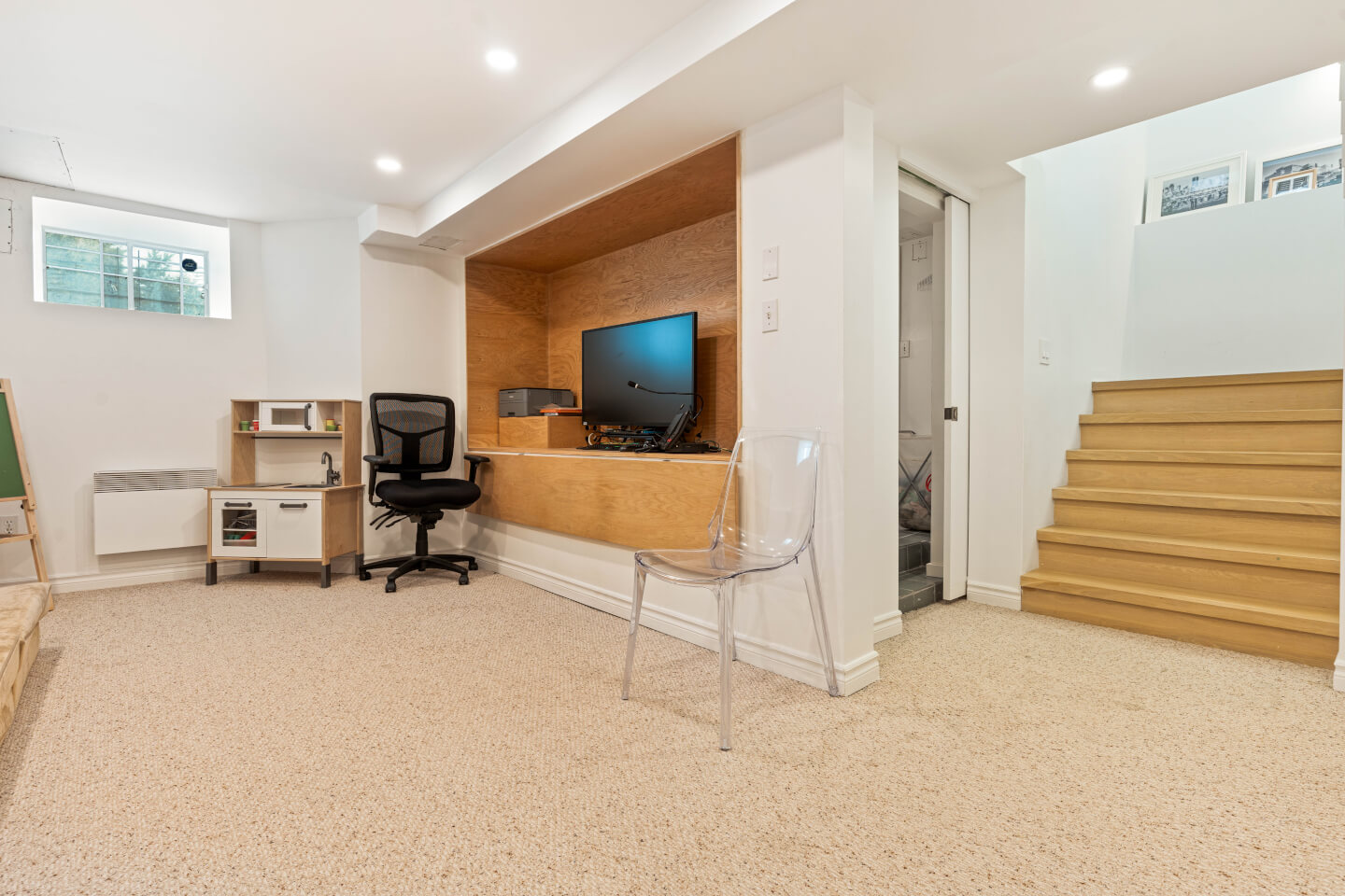 Sous-sol fini, sur tapis Hauteur des plafonds 6’-11’’ Salle familiale 4ième Chambre à coucher Salle de bains 2020 Douche/ Plancher radiant Lavoir et rangement