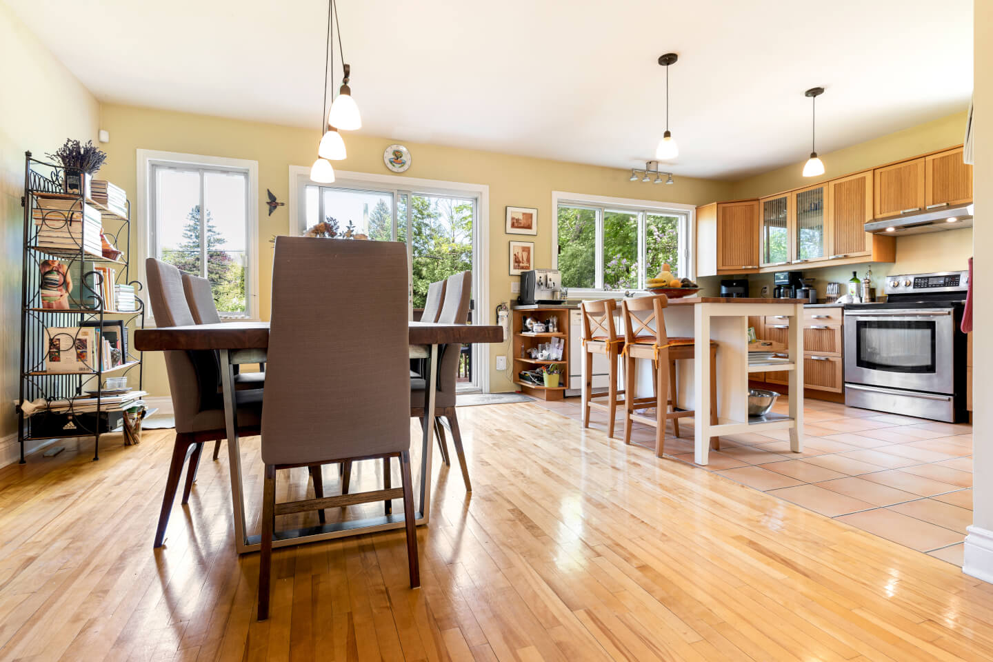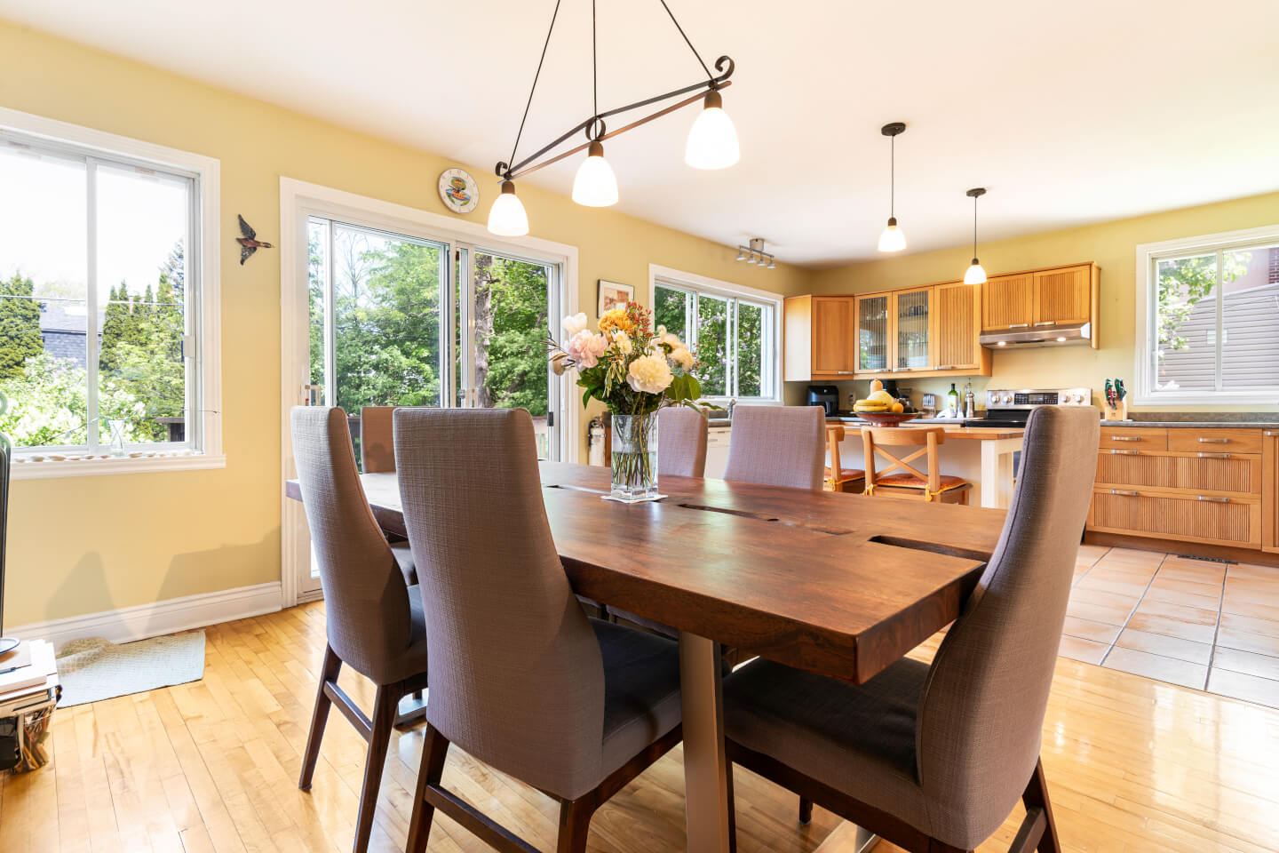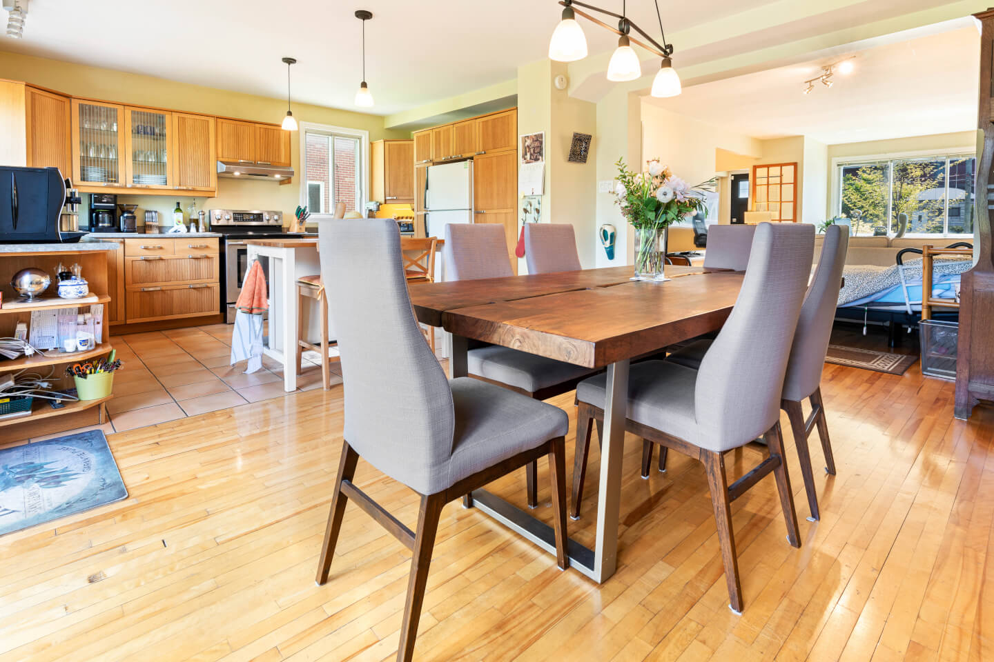 Une cuisine ouverte à la salle à manger, hyper fonctionnelle et conviviale.