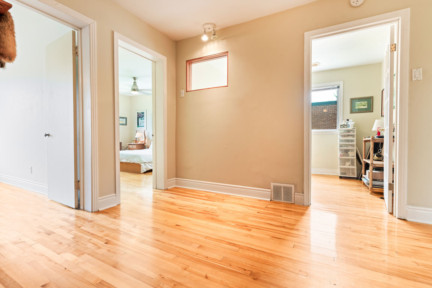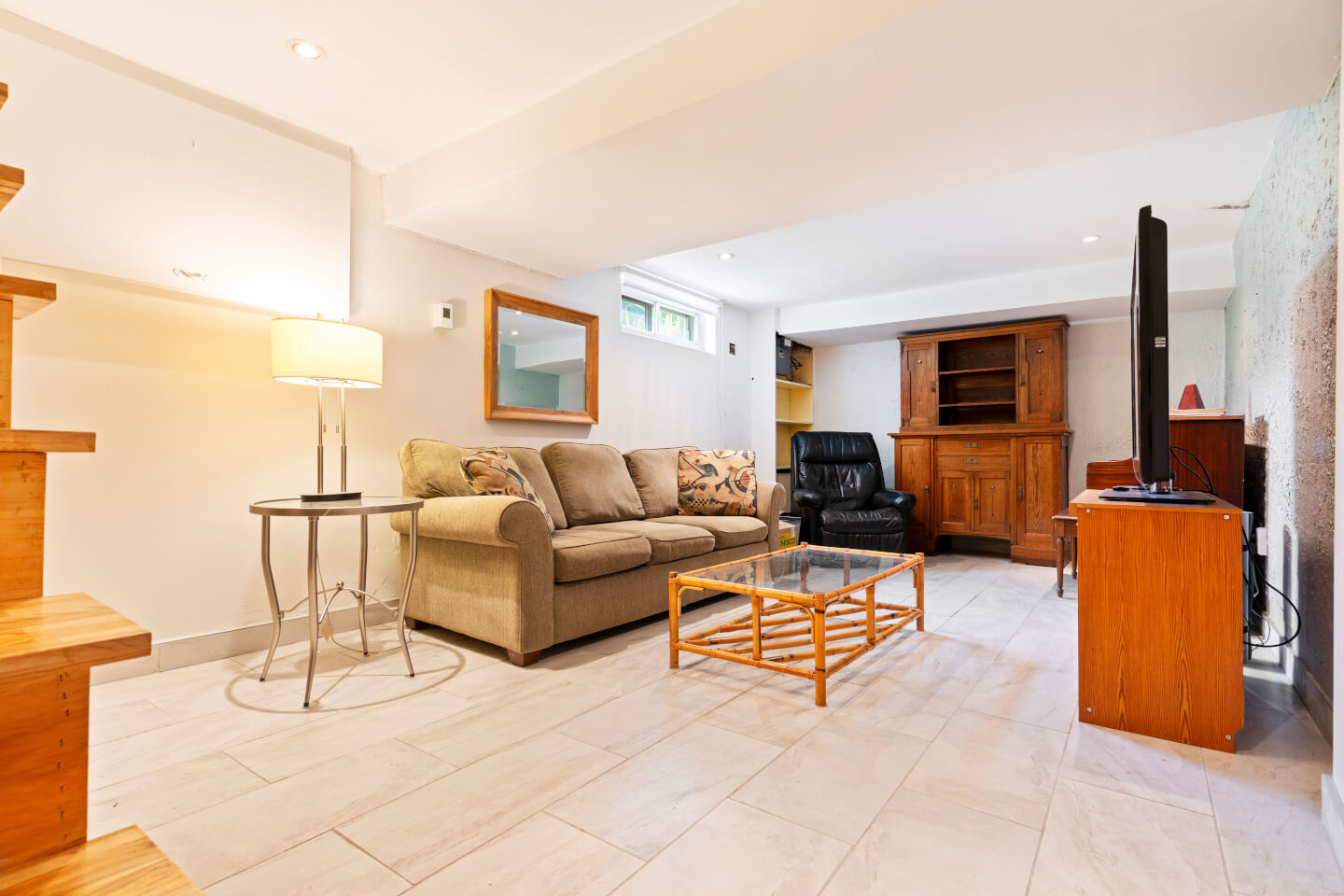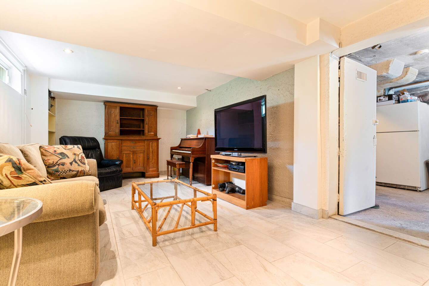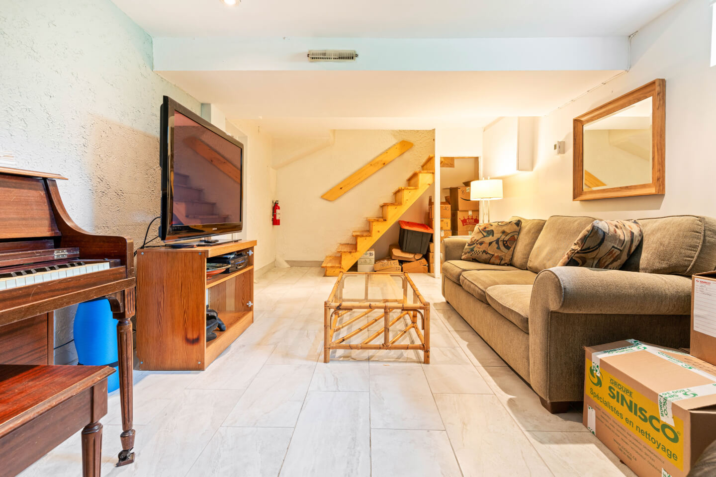 Salle familiale avec Plancher de céramique chauffante et Deux grands espaces non finis, prêts à être personnalisés