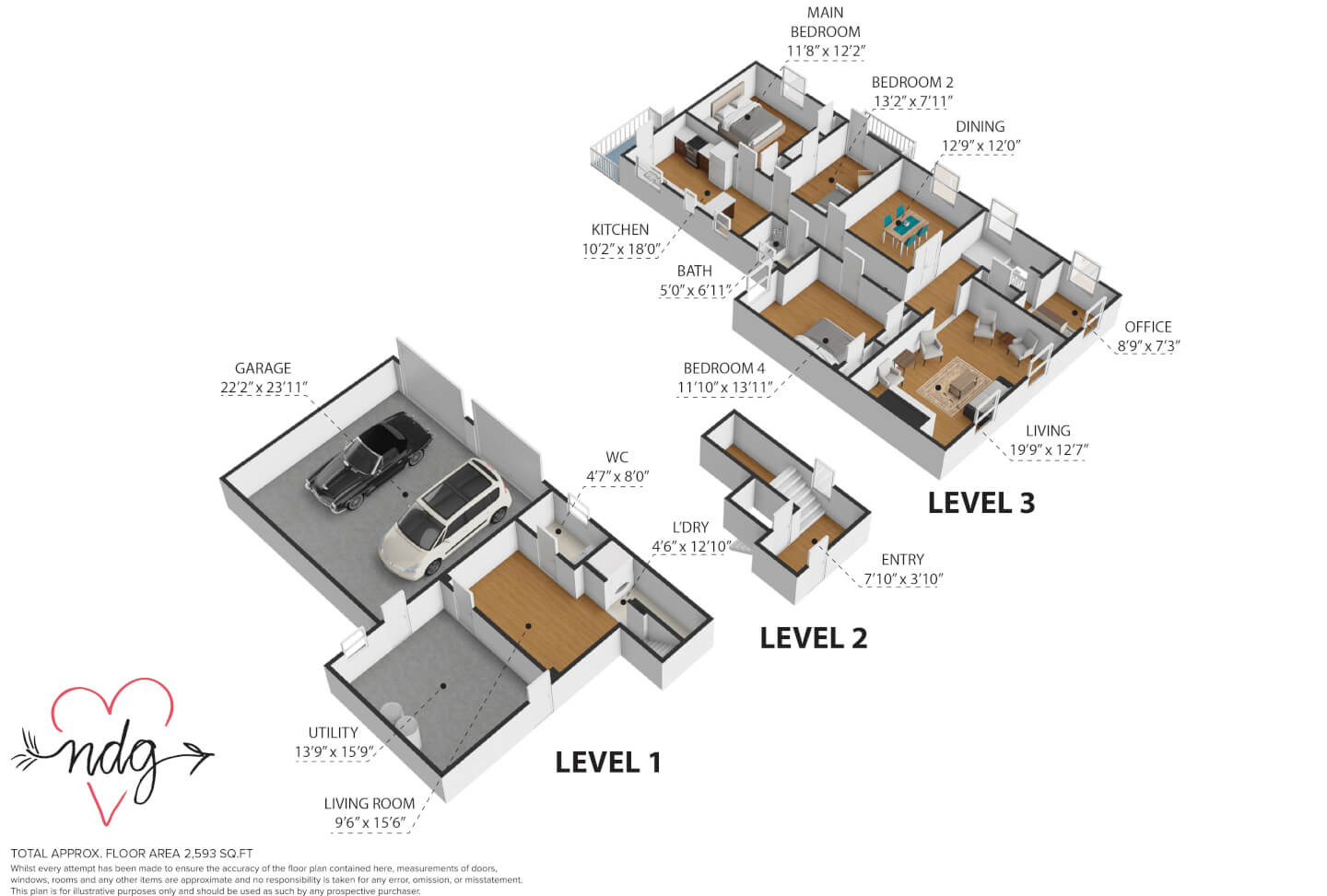 Exclusivité : Jardin avant, garage, portion de l’allée adjacente à la porte de garage, portion du sous-sol