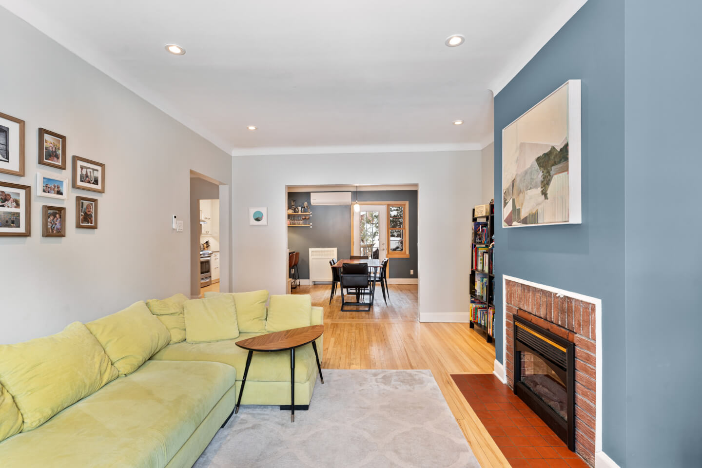 À plan ouvert Salon ouvert sur la salle à manger ainsi que la cuisine