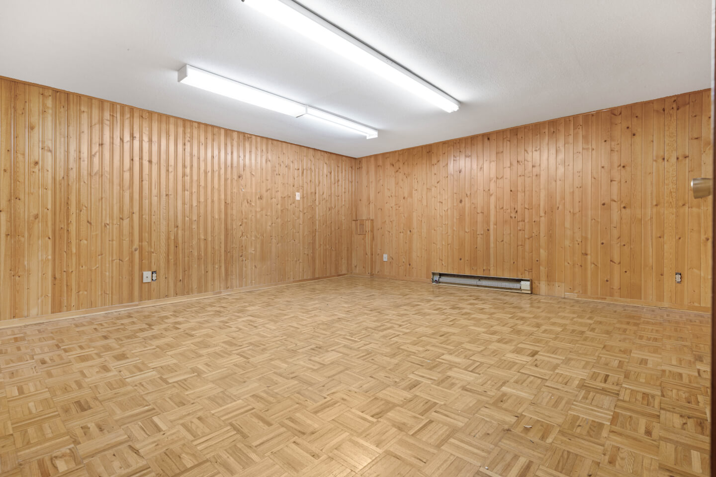 Grande salle familiale avec plancher en parquet