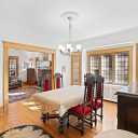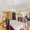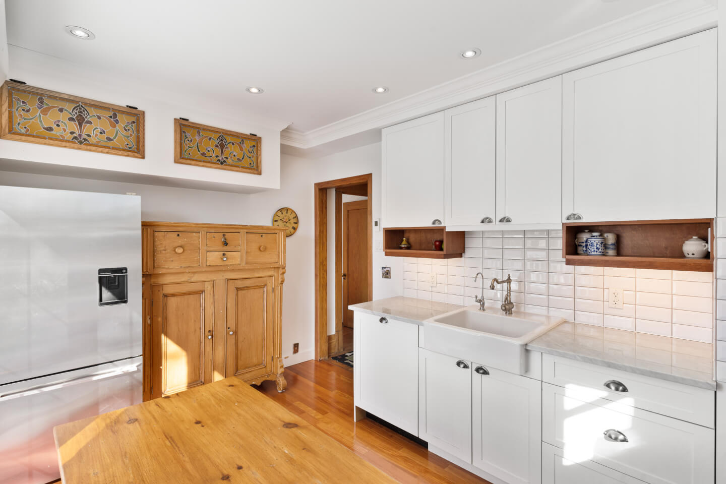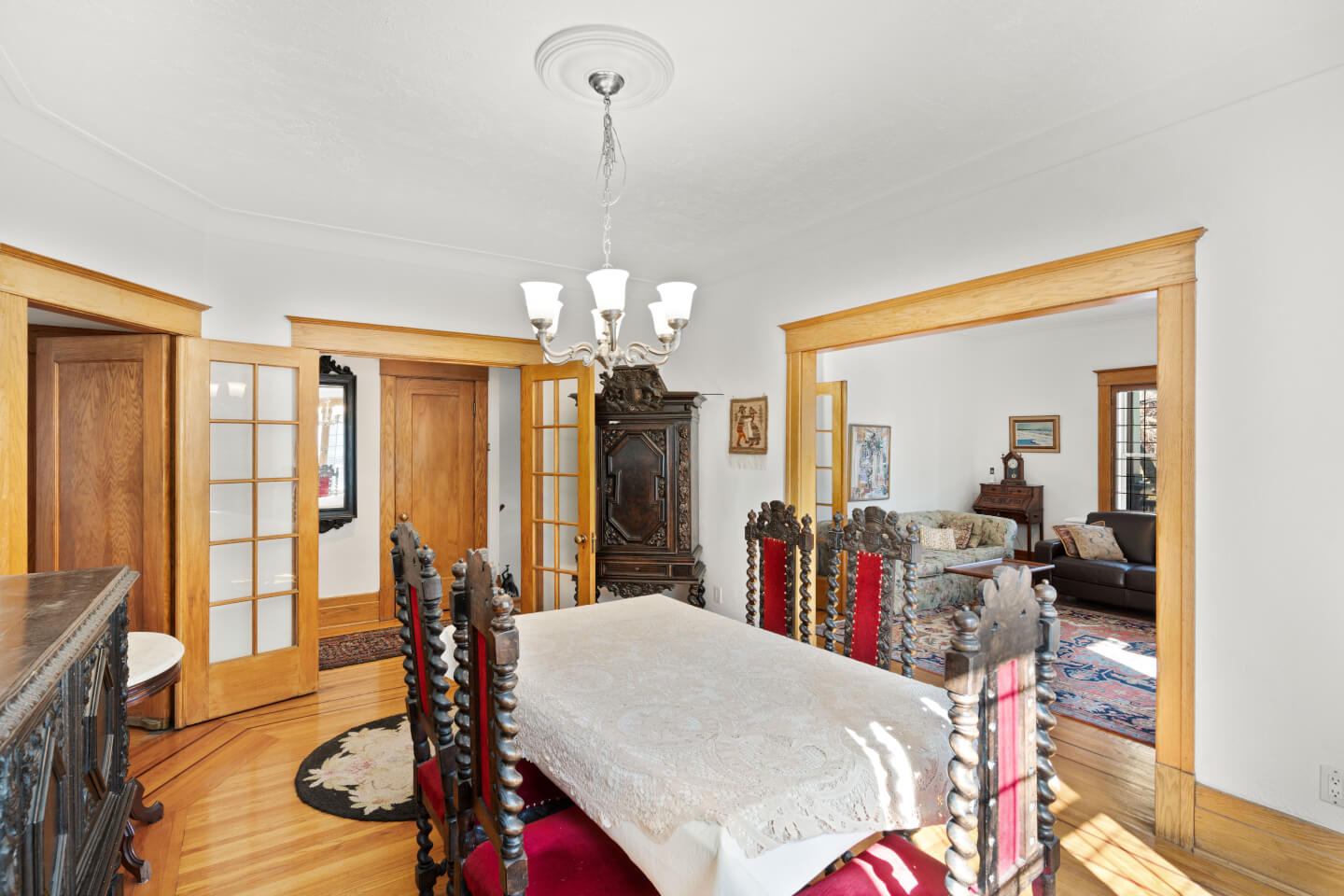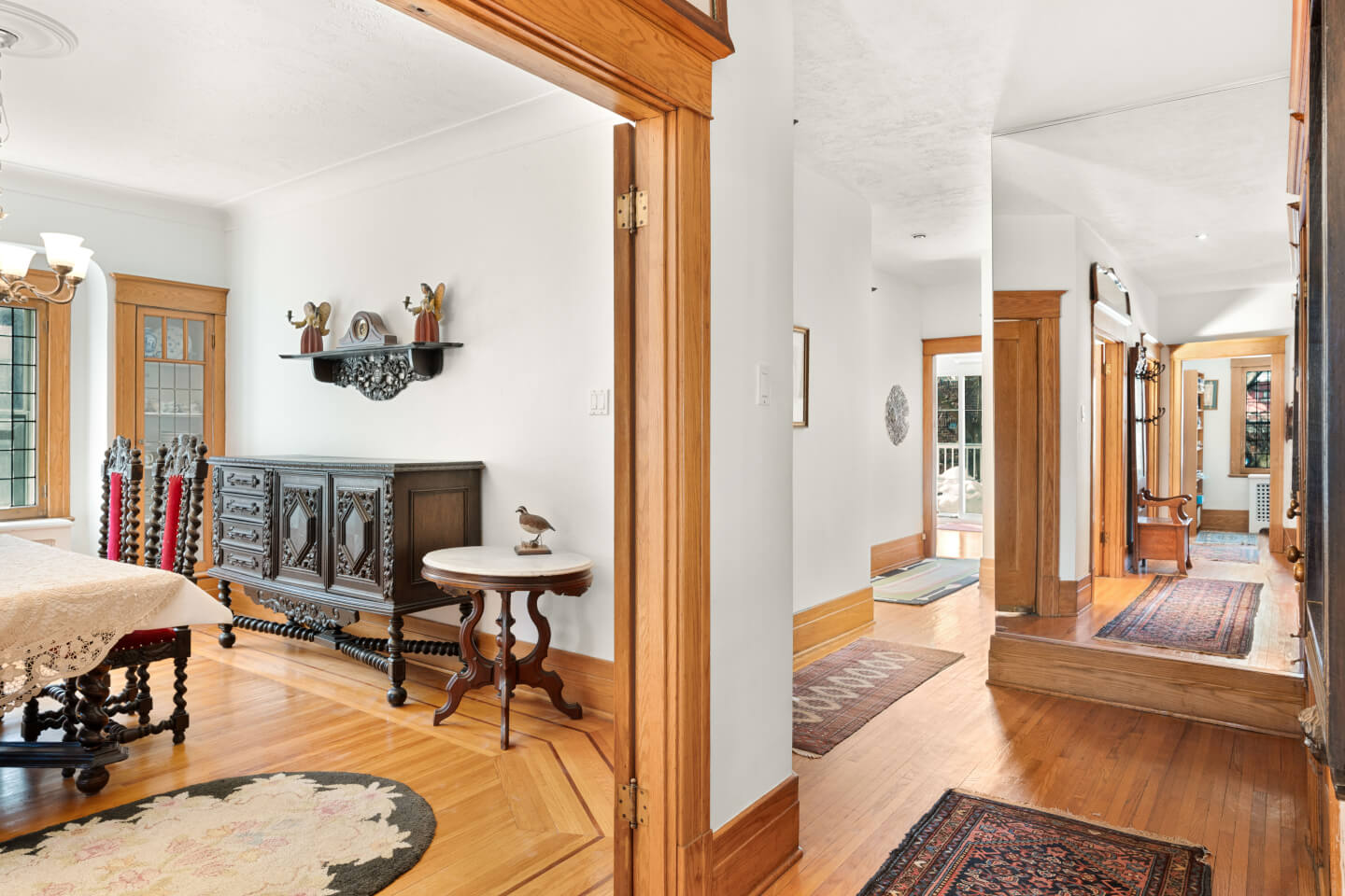 Salle à manger avec vaisseliers encastrés, magnifiques fenêtres plombées