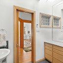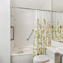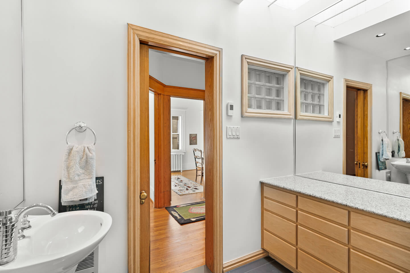 Salle de bains avec plancher radiant et puit de lumière