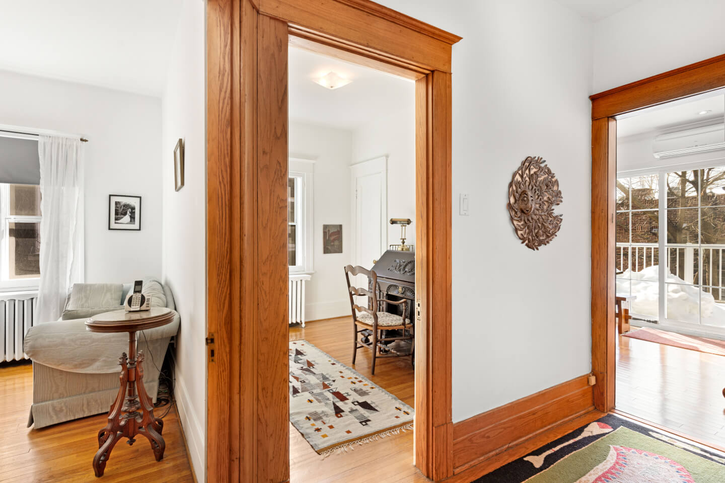 Magnifique haut au cœur du Village Monkland! Propriété soigneusement entretenue, offrant un salon avec foyer au gaz et balcon, ouvert sur une élégante salle à manger avec vaisseliers encastrés et superbes fenêtres plombées. 3 chambres à coucher et un bureau à l’avant. Superbe cuisine rénovée en 2016 avec plancher radiant et accès à la terrasse. Salle de bains spacieuse avec plancher radiant et puits de lumière. Sous-sol non fini avec espace lavoir, rangement et salle mécanique. Profitez également de 2 espaces de stationnement (dont 1 au garage). À quelques pas des commerces, parcs, cafés et du métro.